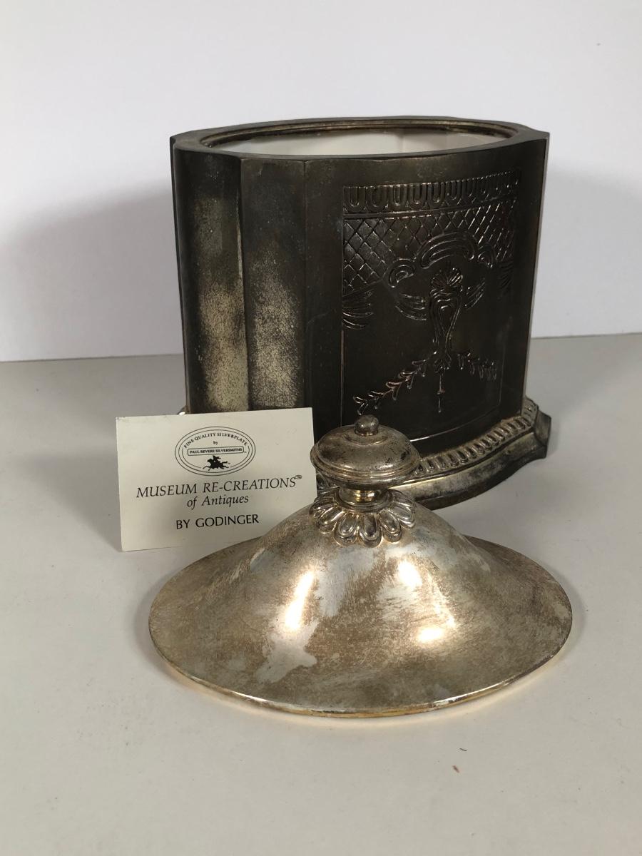 LOT 47B: Godinger Silver Art Co Museum Recreations of Antiques Paul Revere Reproduction Silver Plated Canister w/ Lid