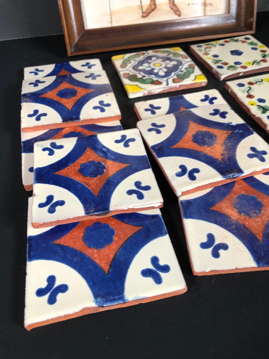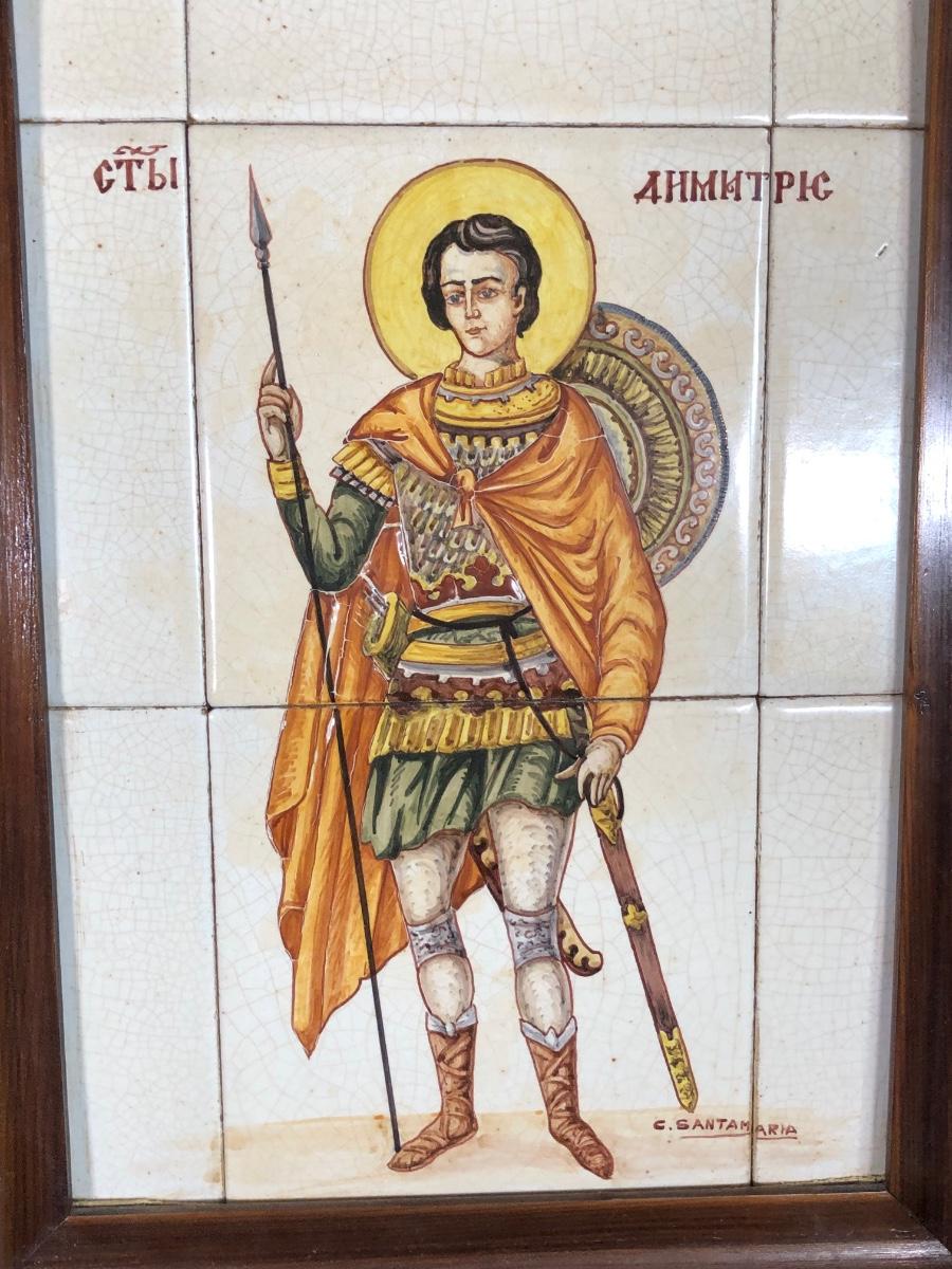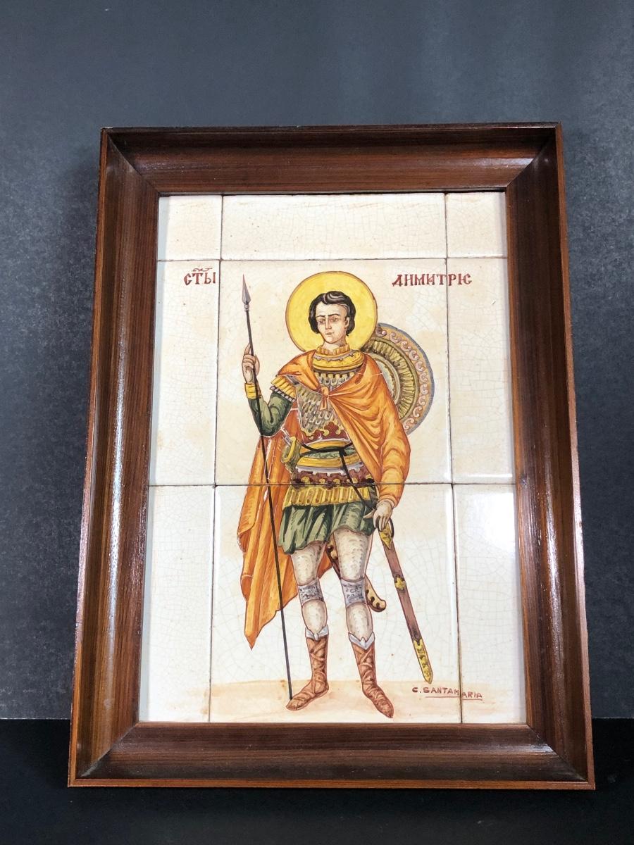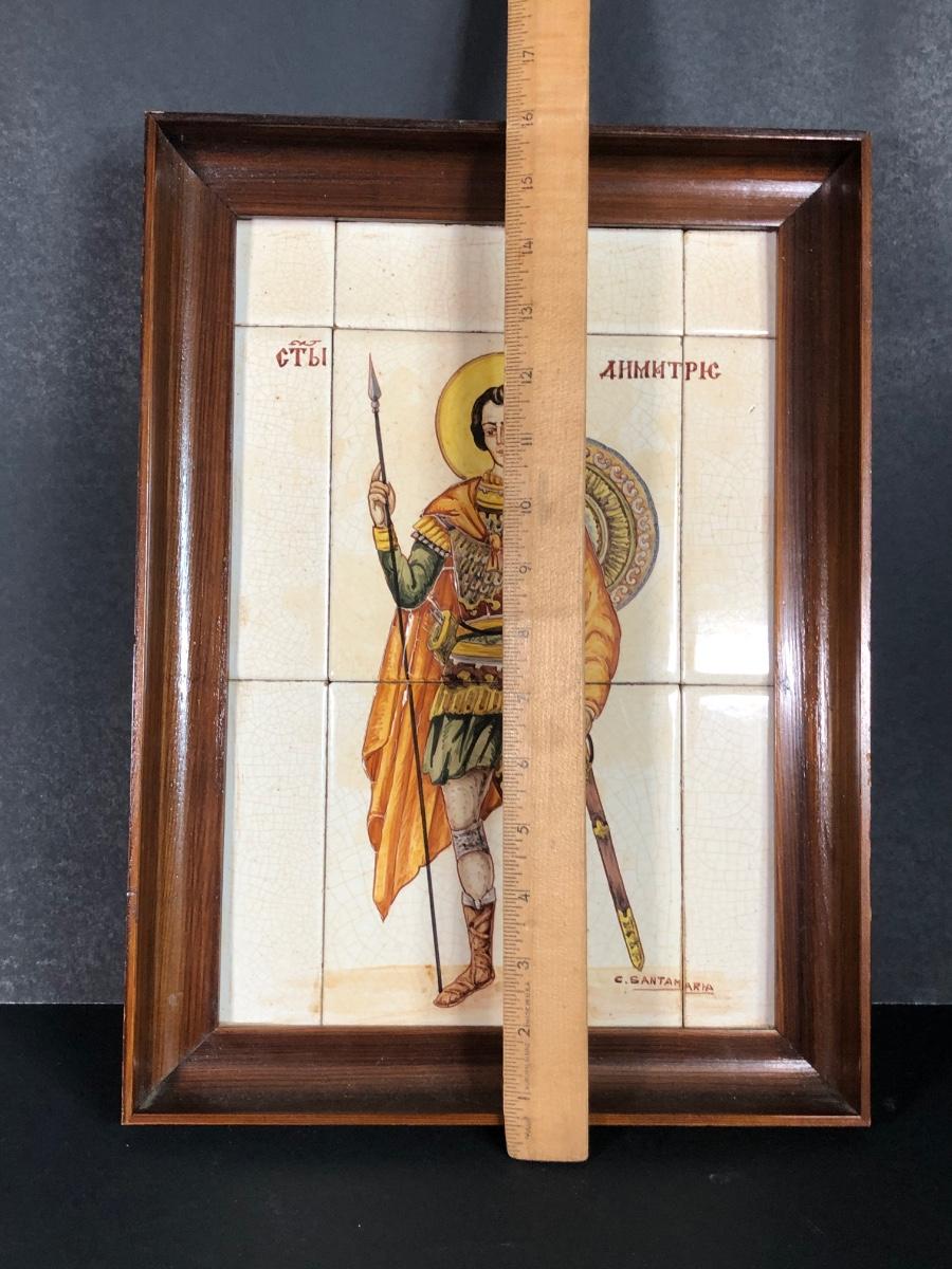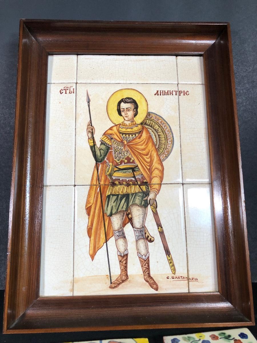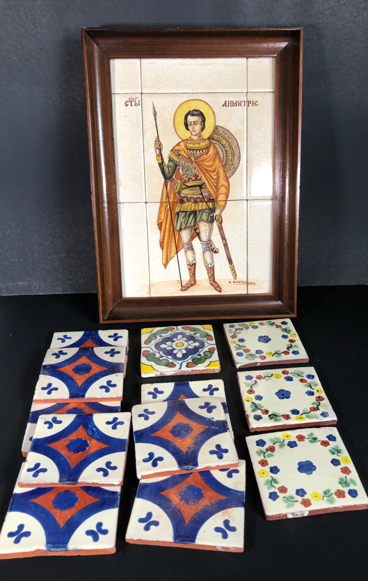 LOT 50G: Framed Greek Tile Art w/ Painted Terra Cotta Tiles