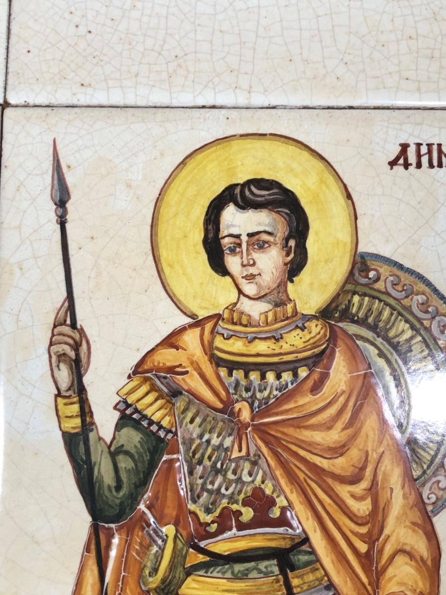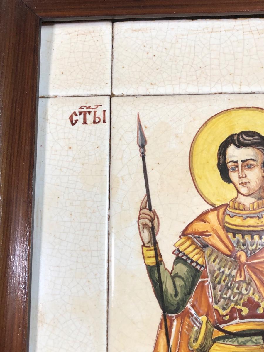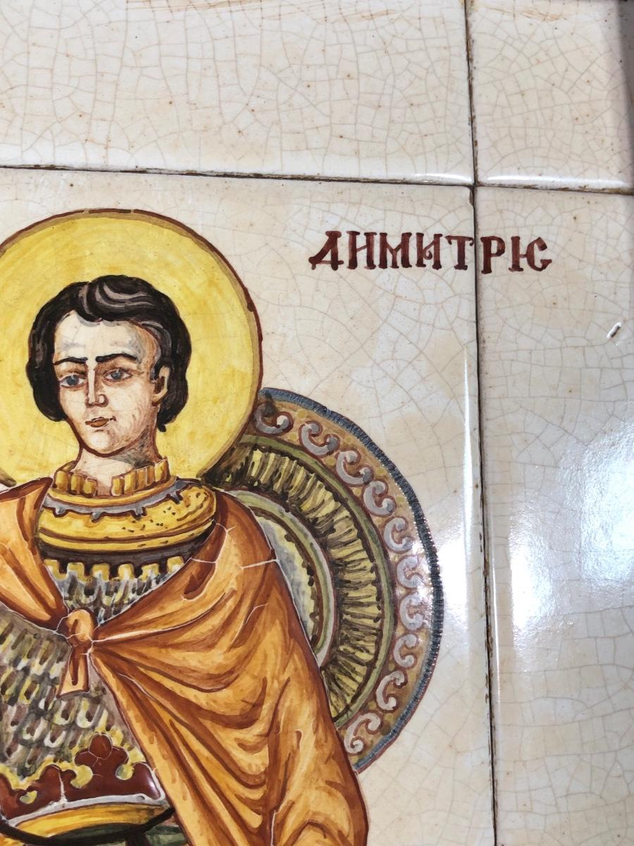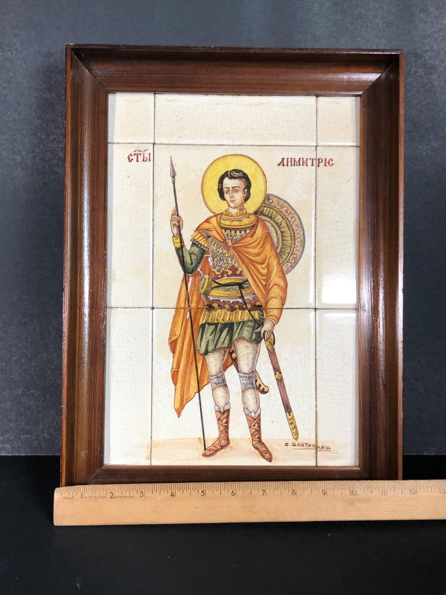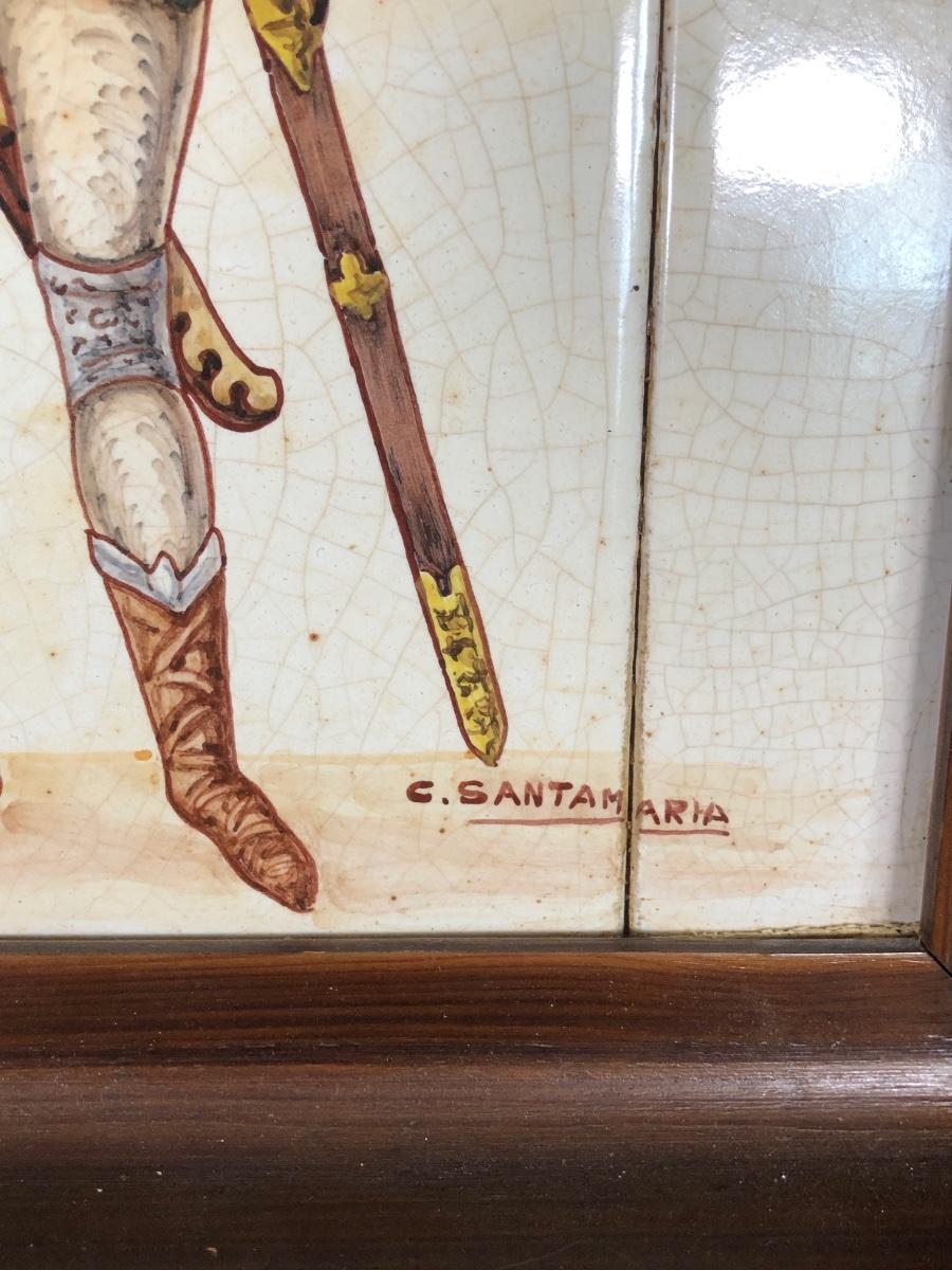 LOT 50G: Framed Greek Tile Art w/ Painted Terra Cotta Tiles