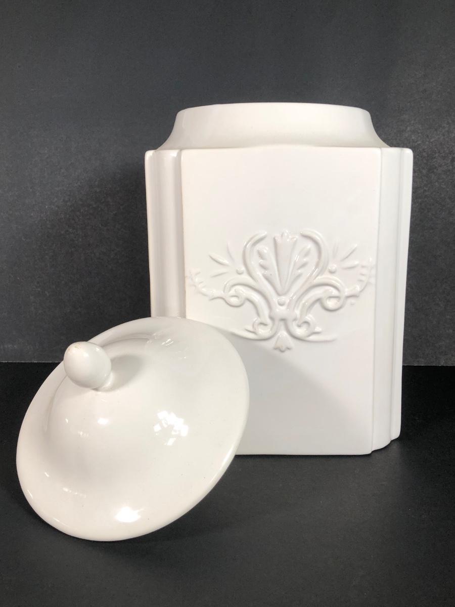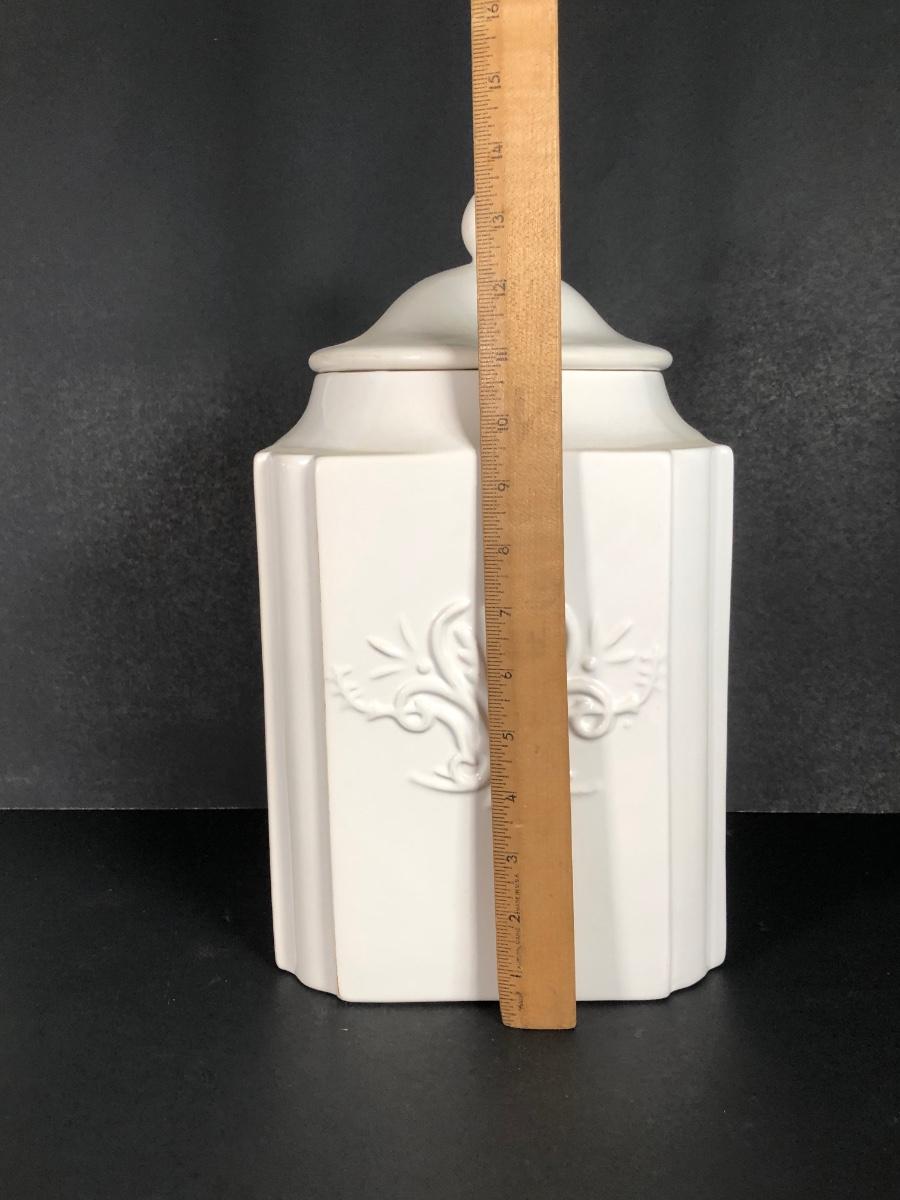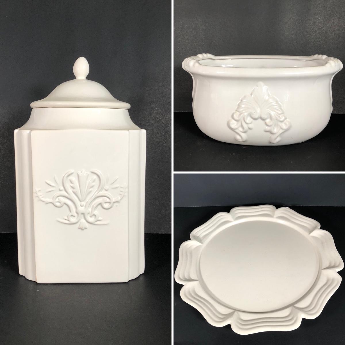 LOT 51X: White Ceramics - Deartis Canister Made in Portugal, Bon Chef Flower Platter 861 & More
