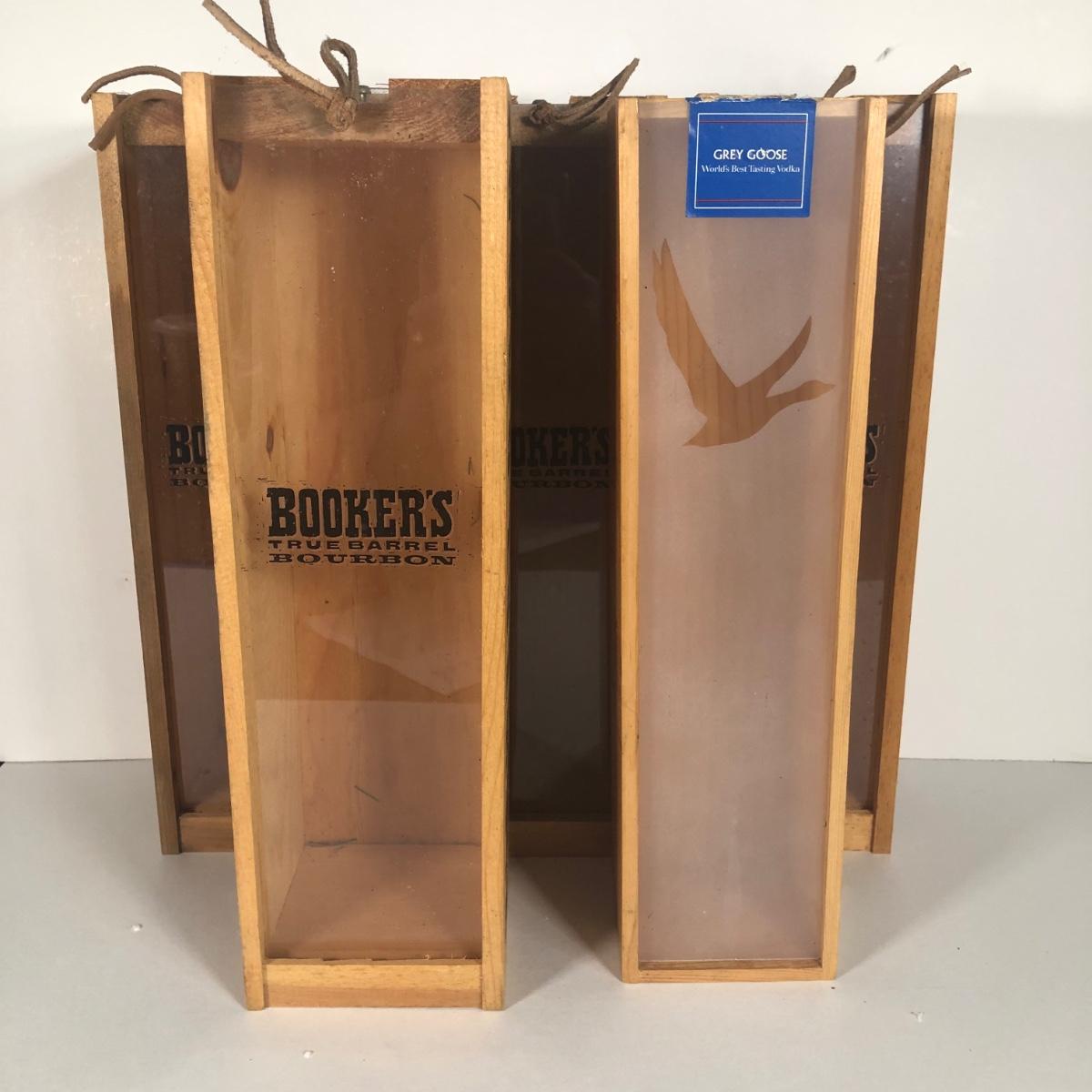LOT 58G: Four Bookers Wooden Slide Boxes w/ Grey Goose Slide Box