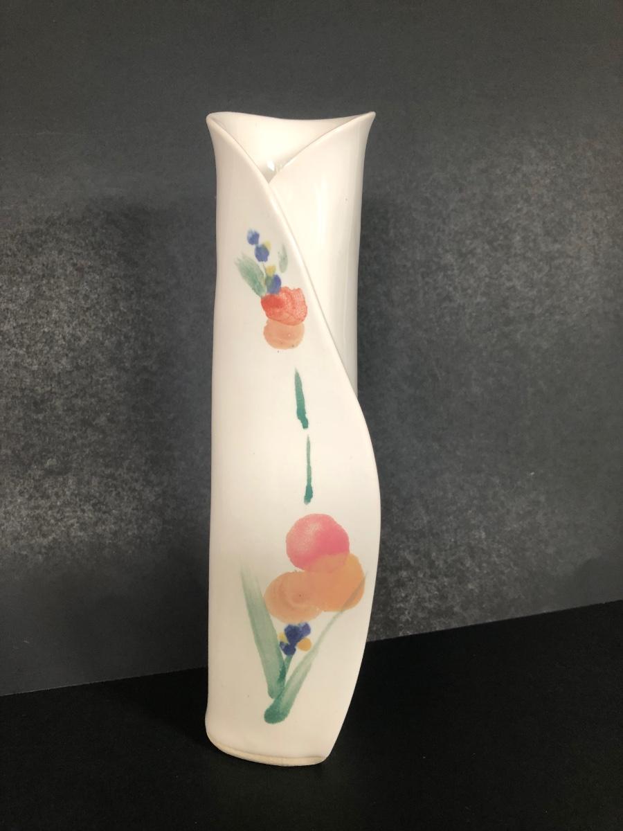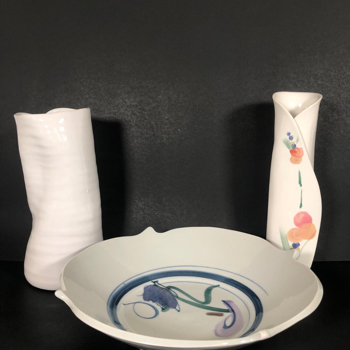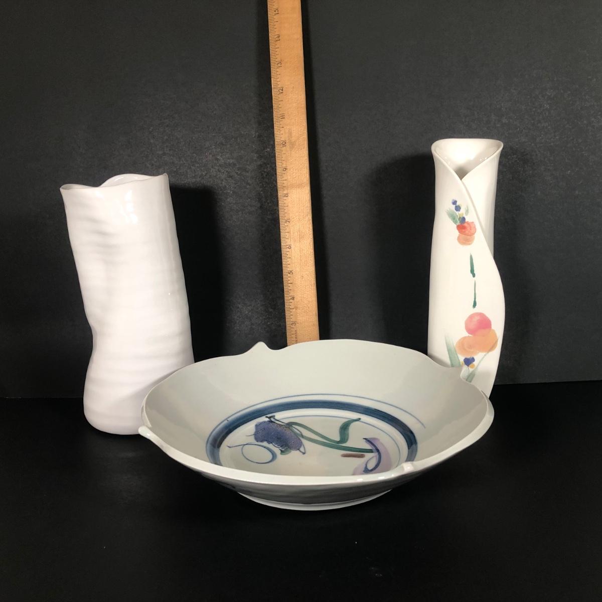 LOT 71K: Signed Painted Floral Vase, Crumple Vase & Signed Painted Bowl