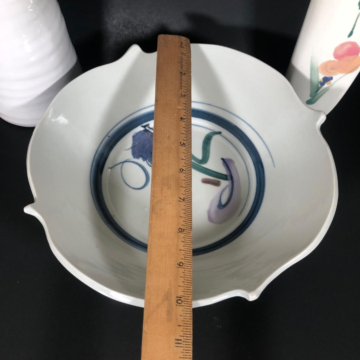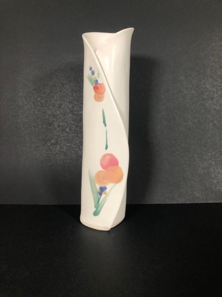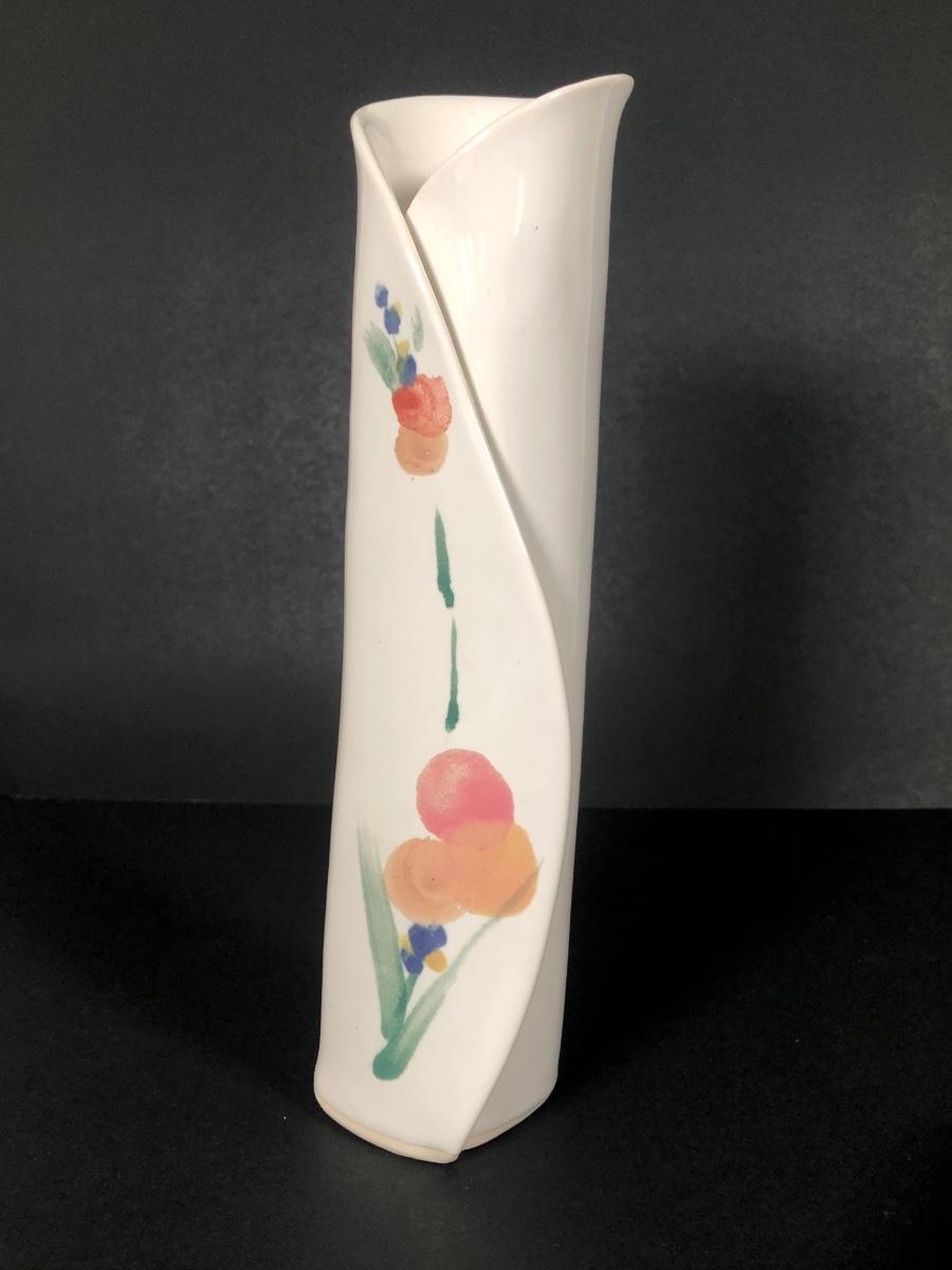 LOT 71K: Signed Painted Floral Vase, Crumple Vase & Signed Painted Bowl