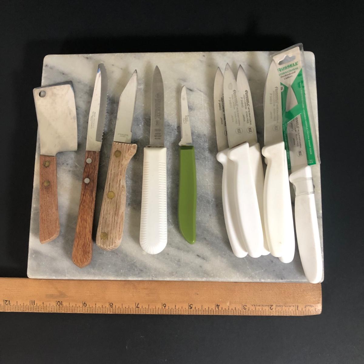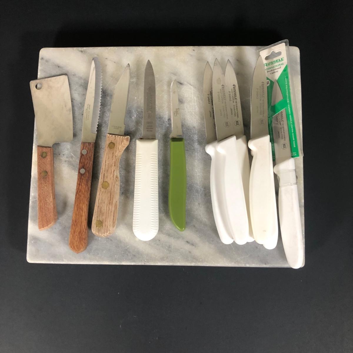LOT 72K: Marble Cutting Board & Small Knives