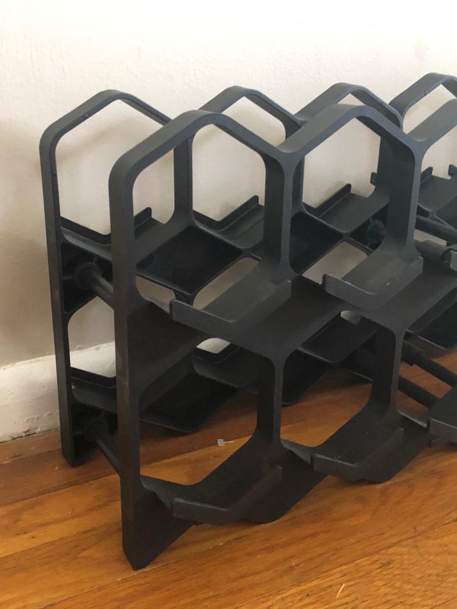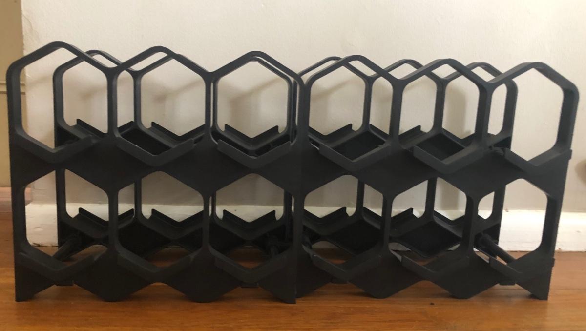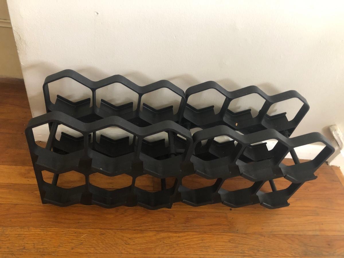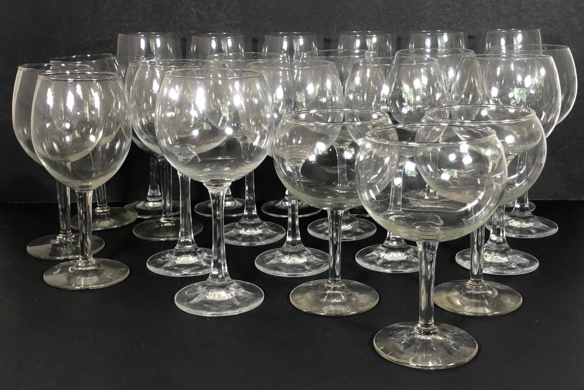 LOT 77K: Honeycomb Wine Rack w/ Wine Corks & Large Collection of Wine Glasses