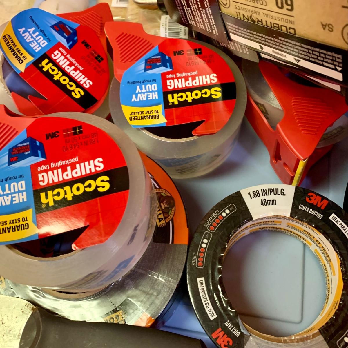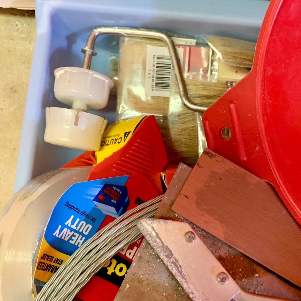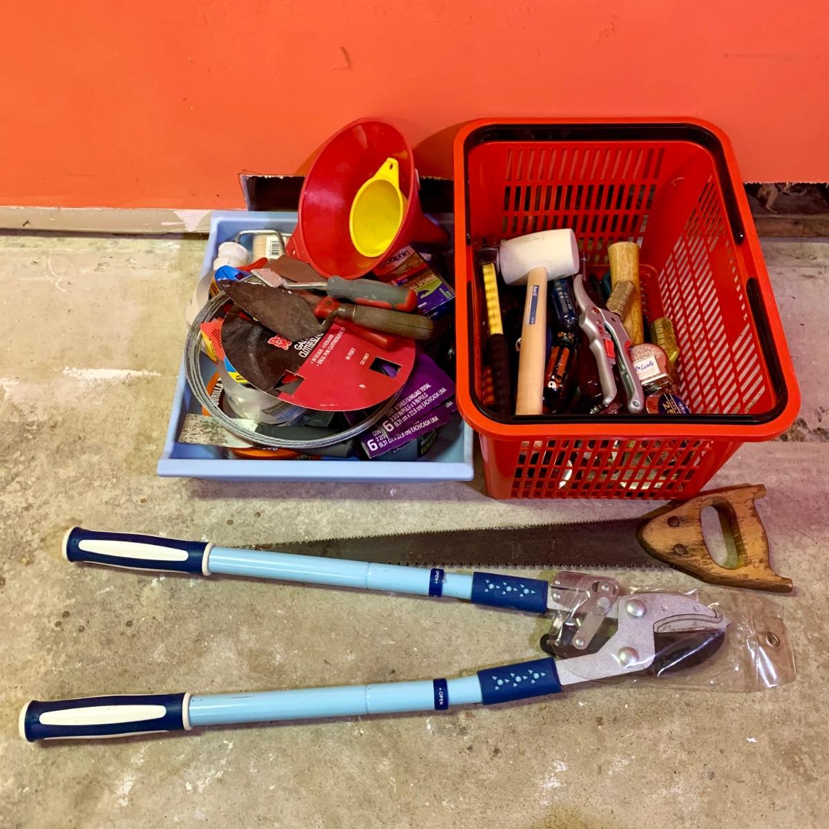 LOT 108 G: Misc. Tool Collection: Snips, Hammers, Screwdrivers, Scotch Packing Tape, & More