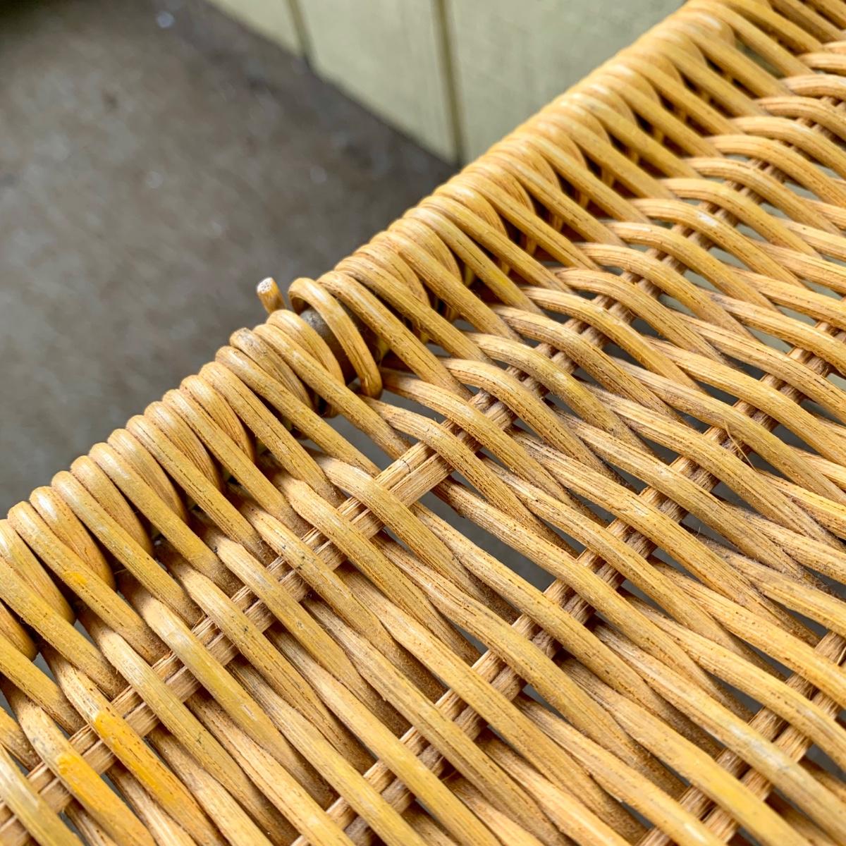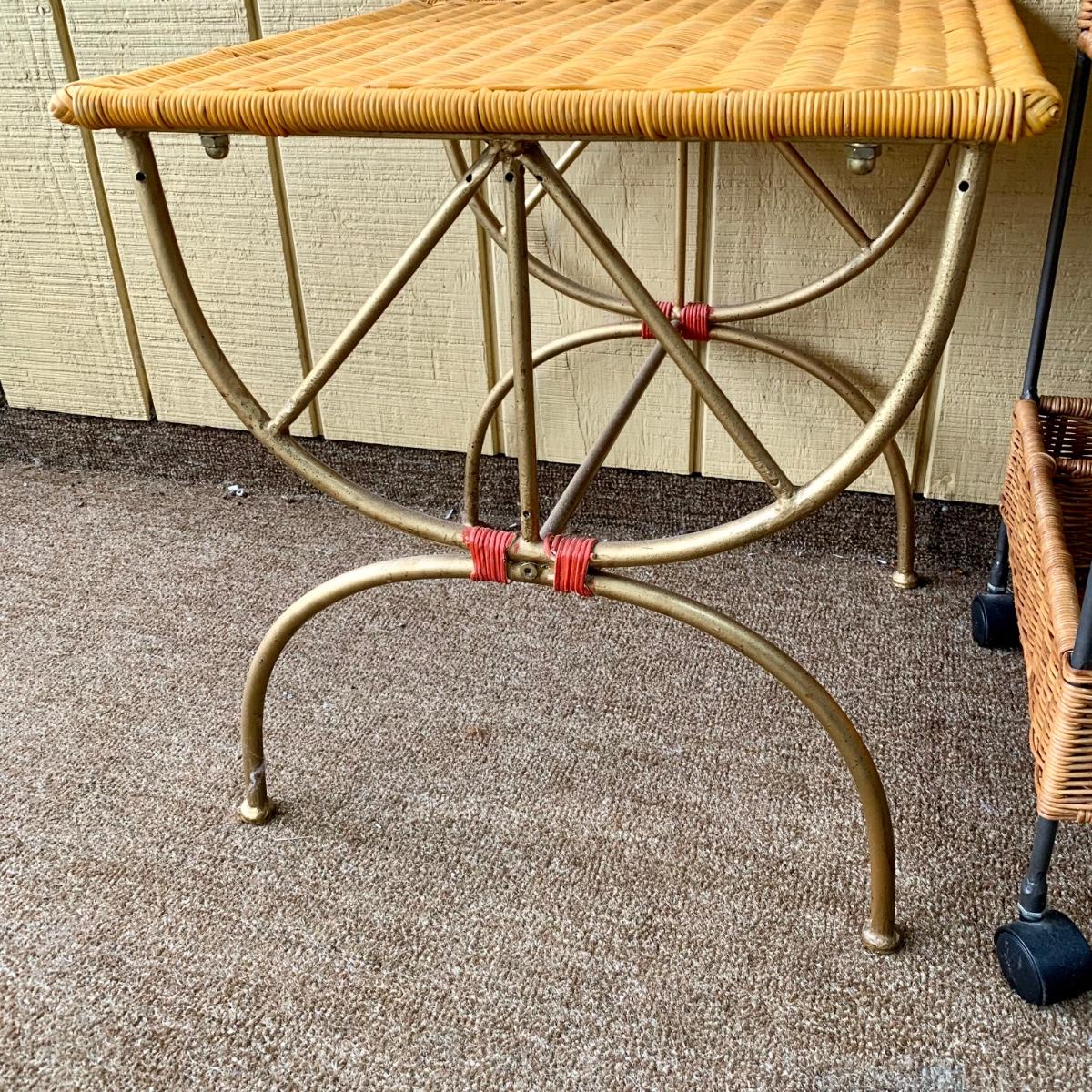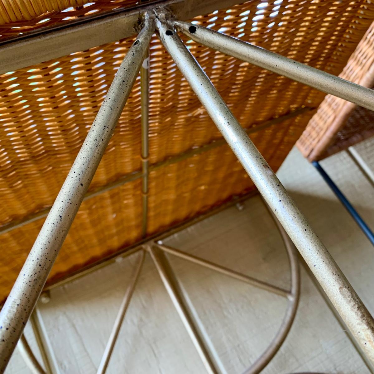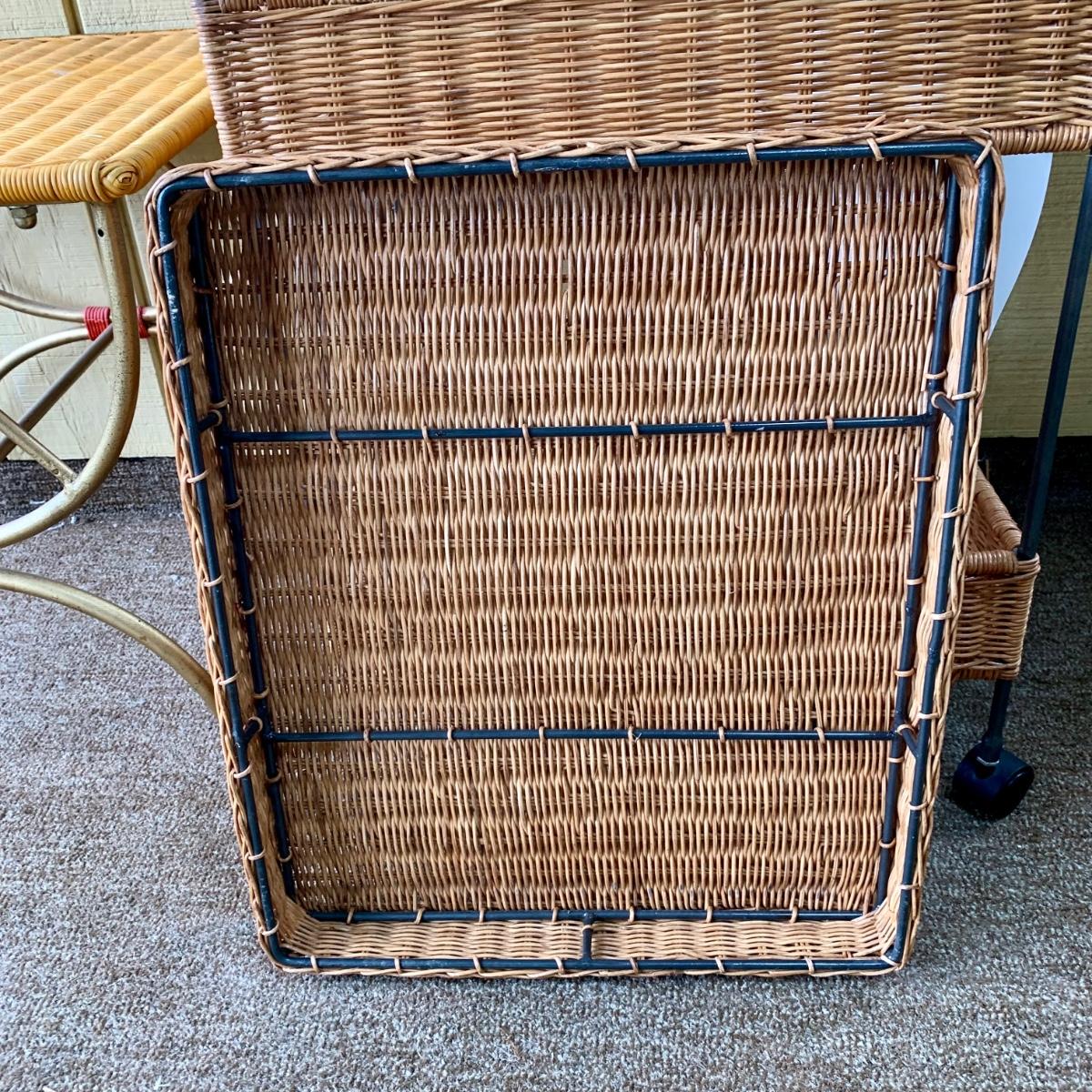 LOT 109 P: Rolling Wicker Filing Cabinet/Desk Organiser W/ Lid & Wicker/Metal Side Table