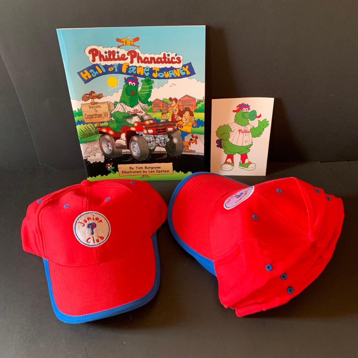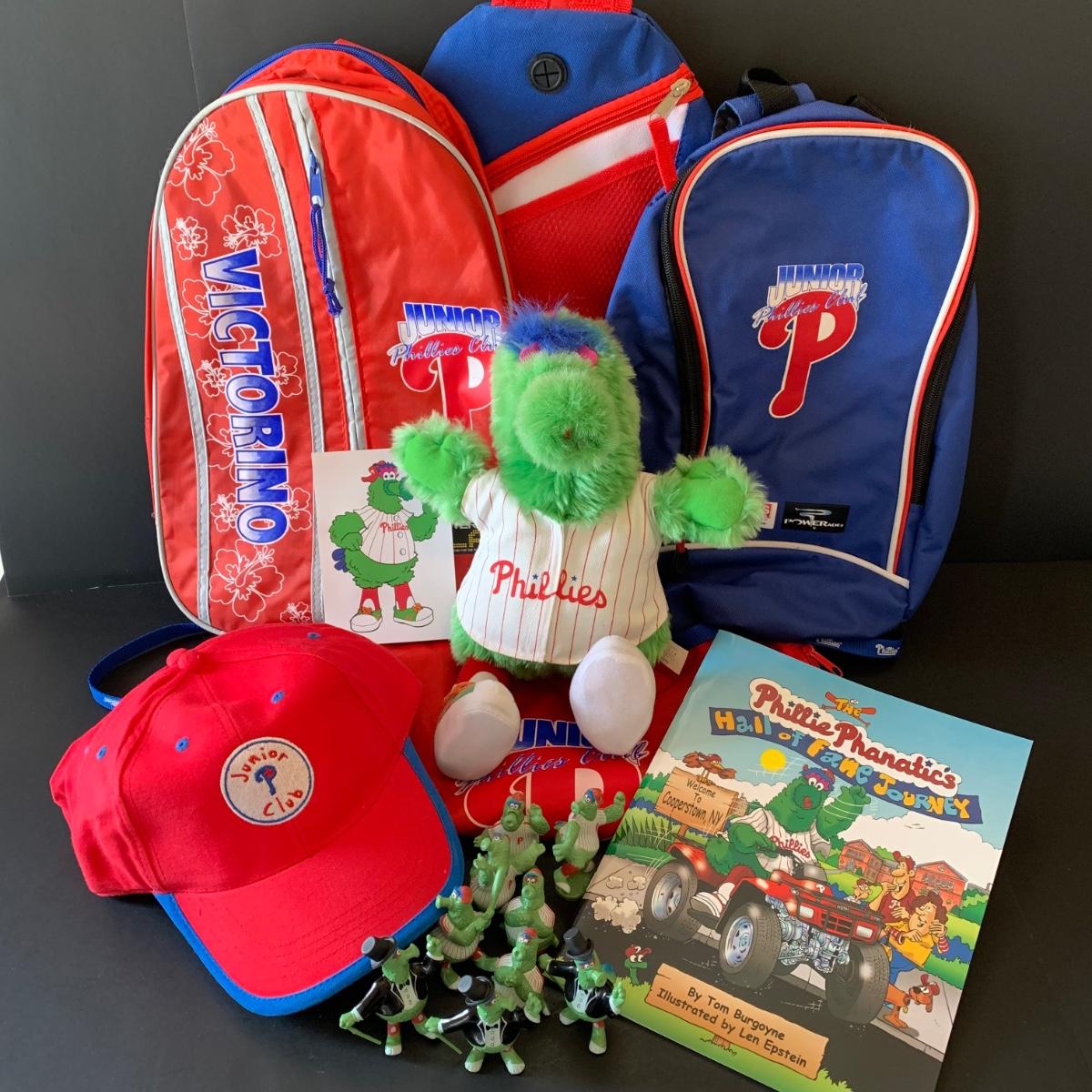 LOT 120 L: Junior Phillies Club & Phanatic Collection: Bags, Hats, Stuffed Animal, Figures, Sticker & Book