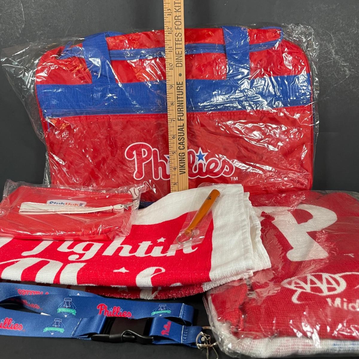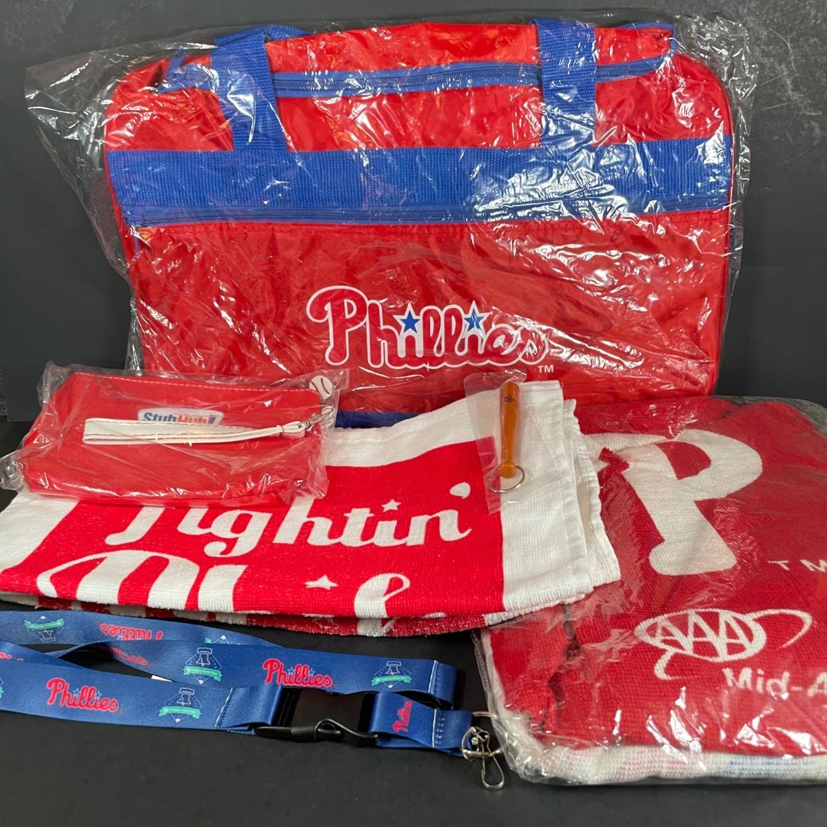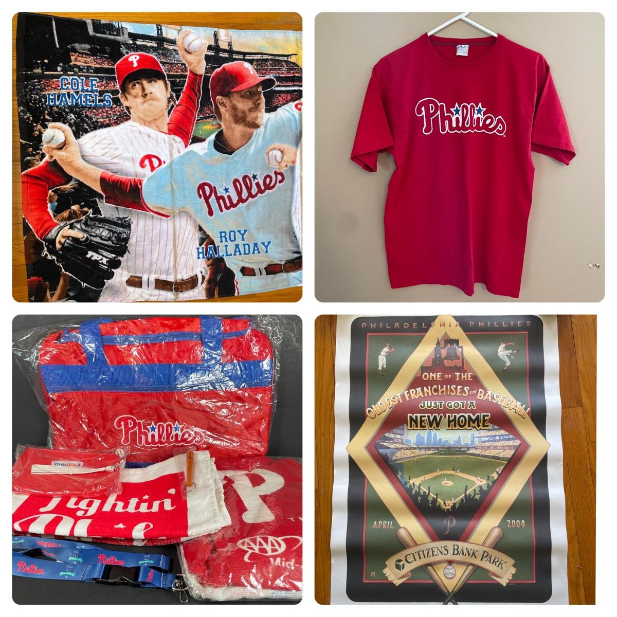 LOT 131L: Collection Of Philadelphia Phillies Memorabilia - Shirt, Poster, Towel, Lanyard & More