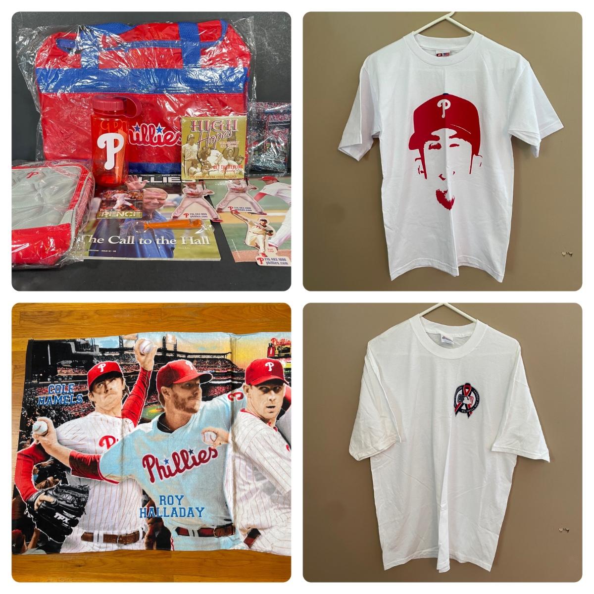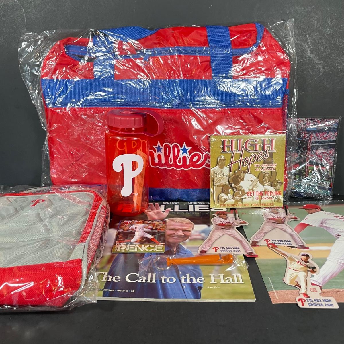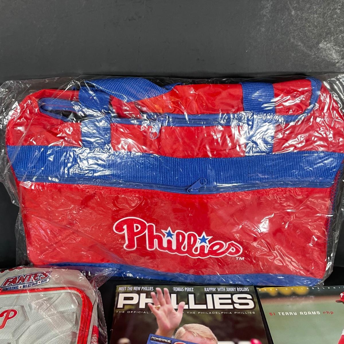 LOT 132L: Philadelphia Phillies Memorabilia Collection - Bags, Bottle, Shirts & More
