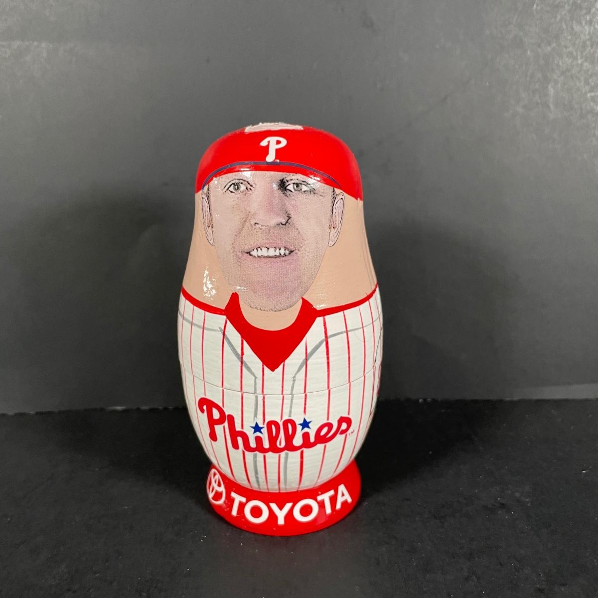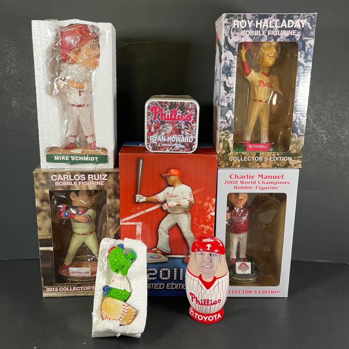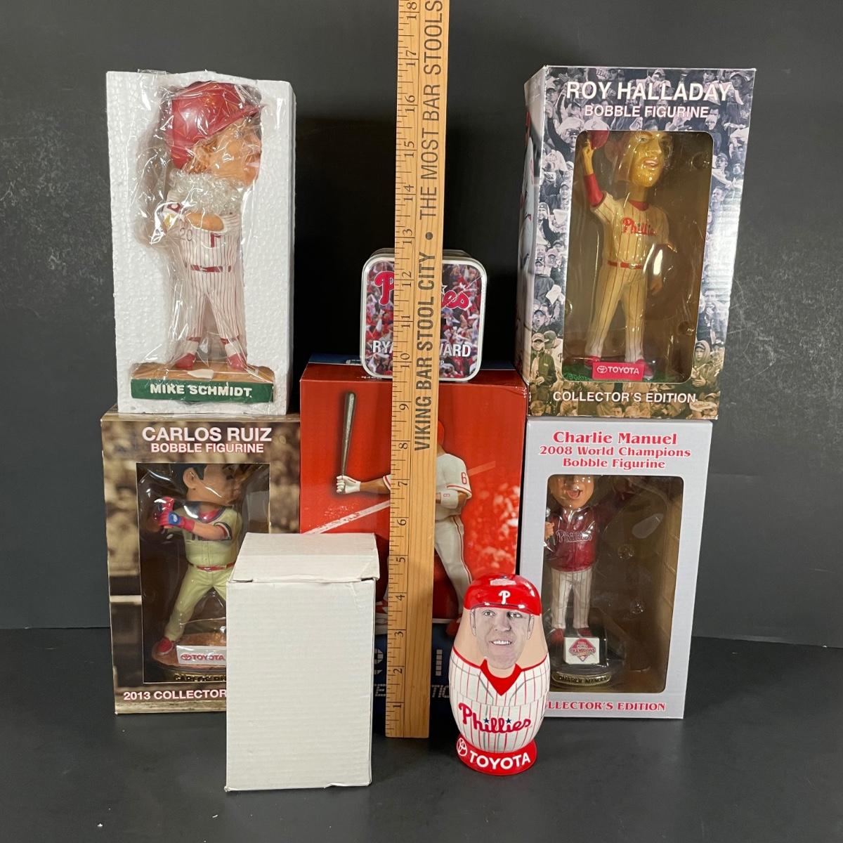 LOT 138L: Philadelphia Phillies Bobble Head Collection w/ Russian Nesting Doll - Carlos Ruiz, Roy Halladay, Ryan Howard & More