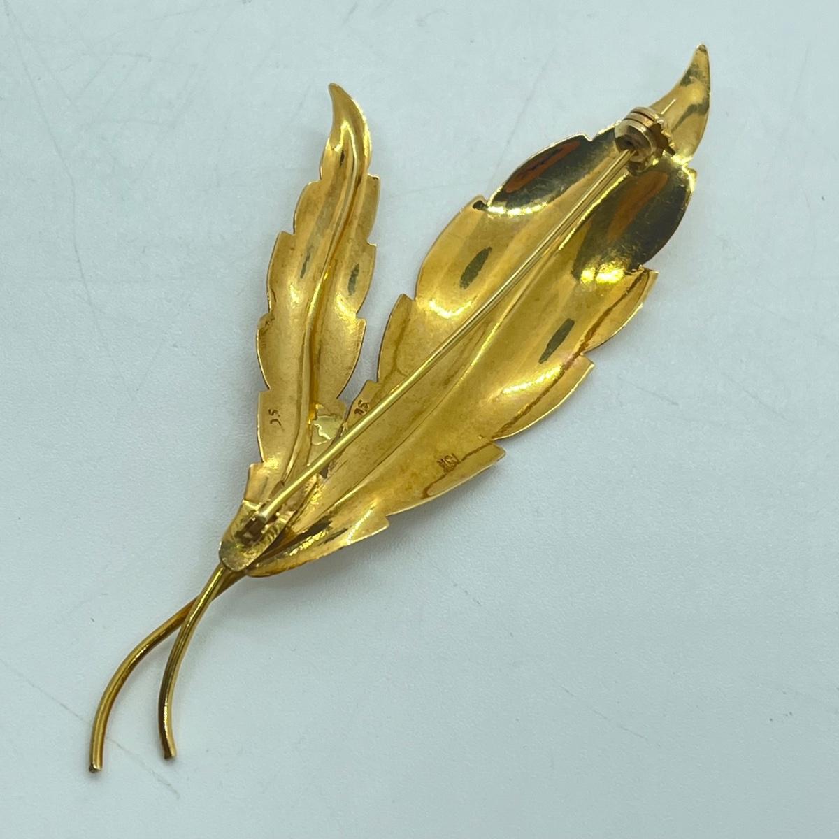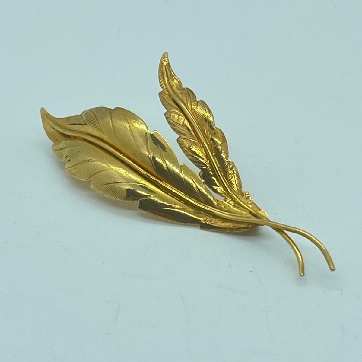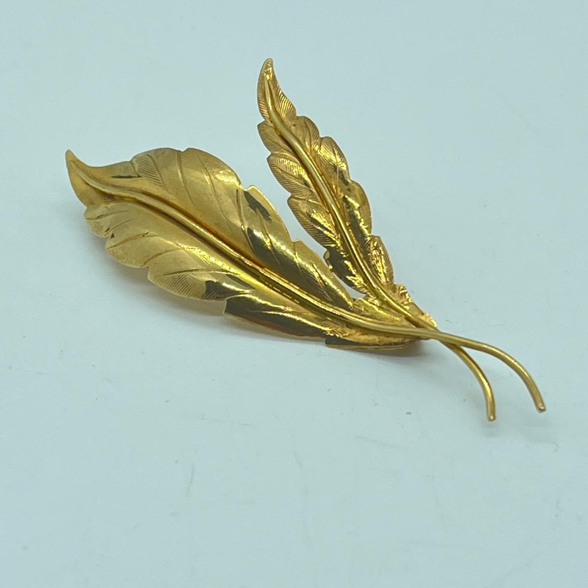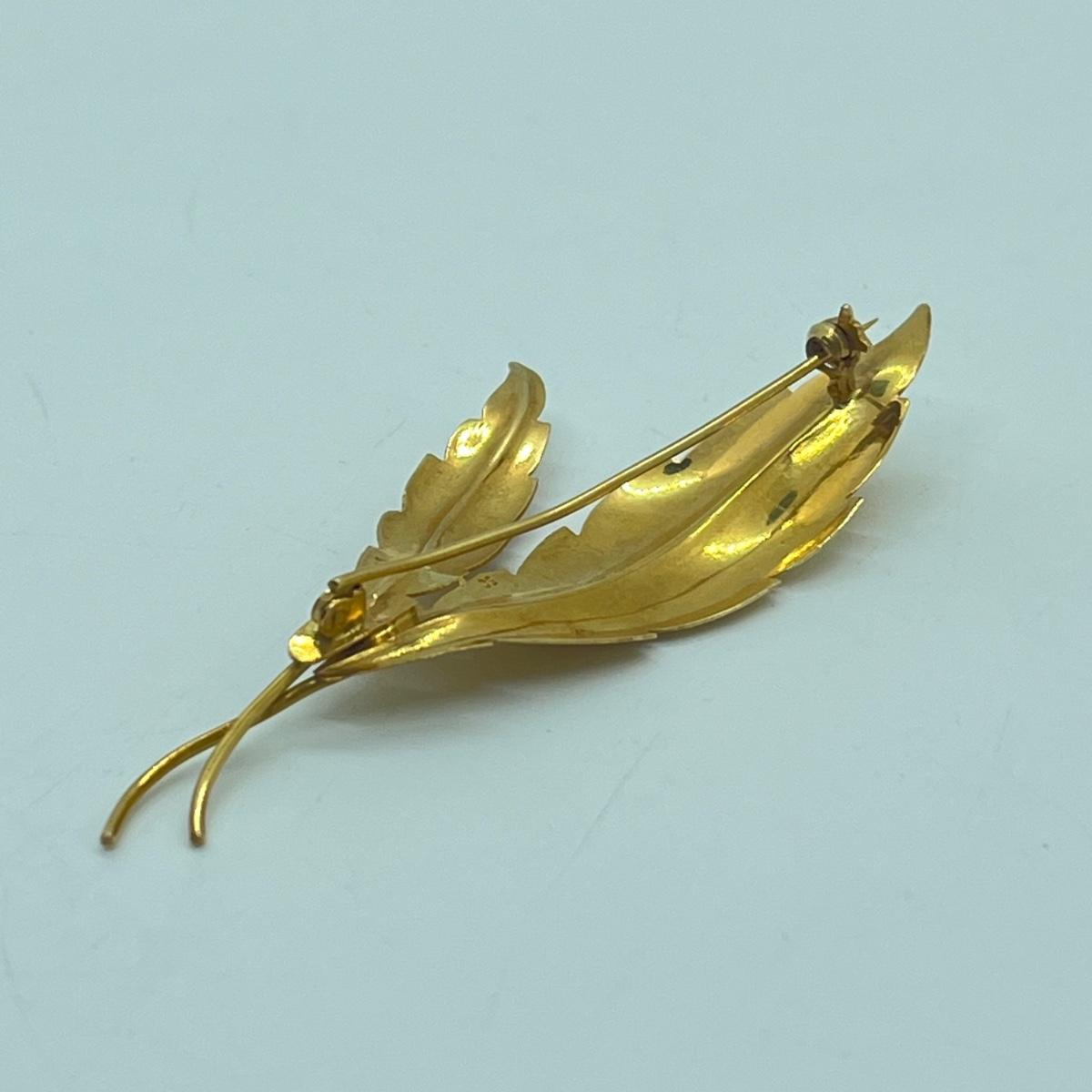 LOT 148L: Vintage 18K Gold Leaf Pin / Brooch - 7.3 grams