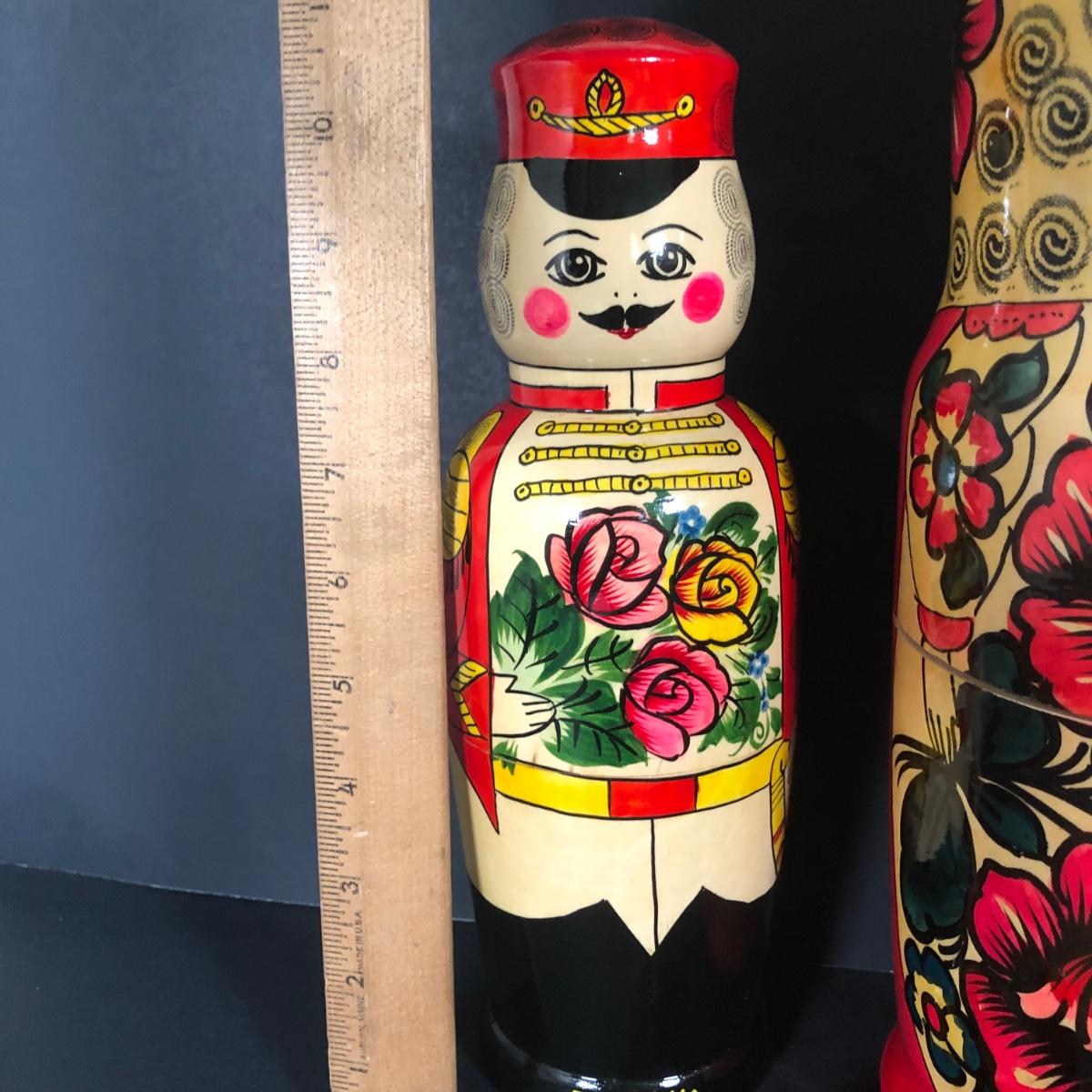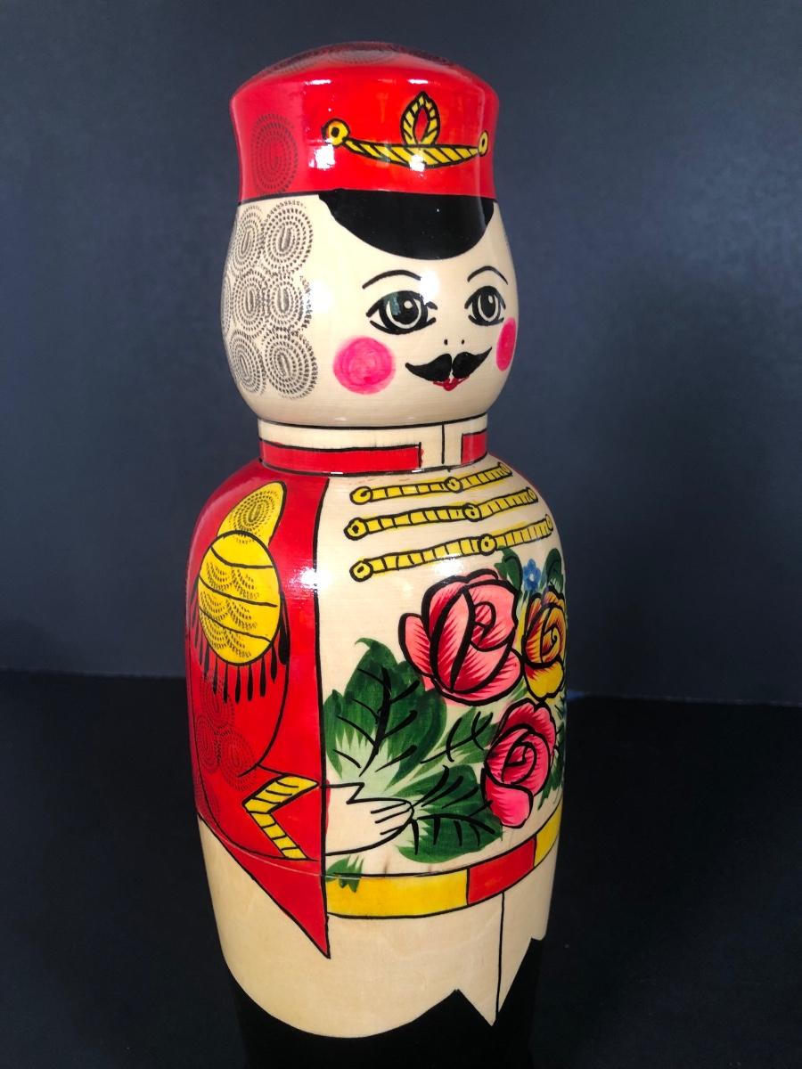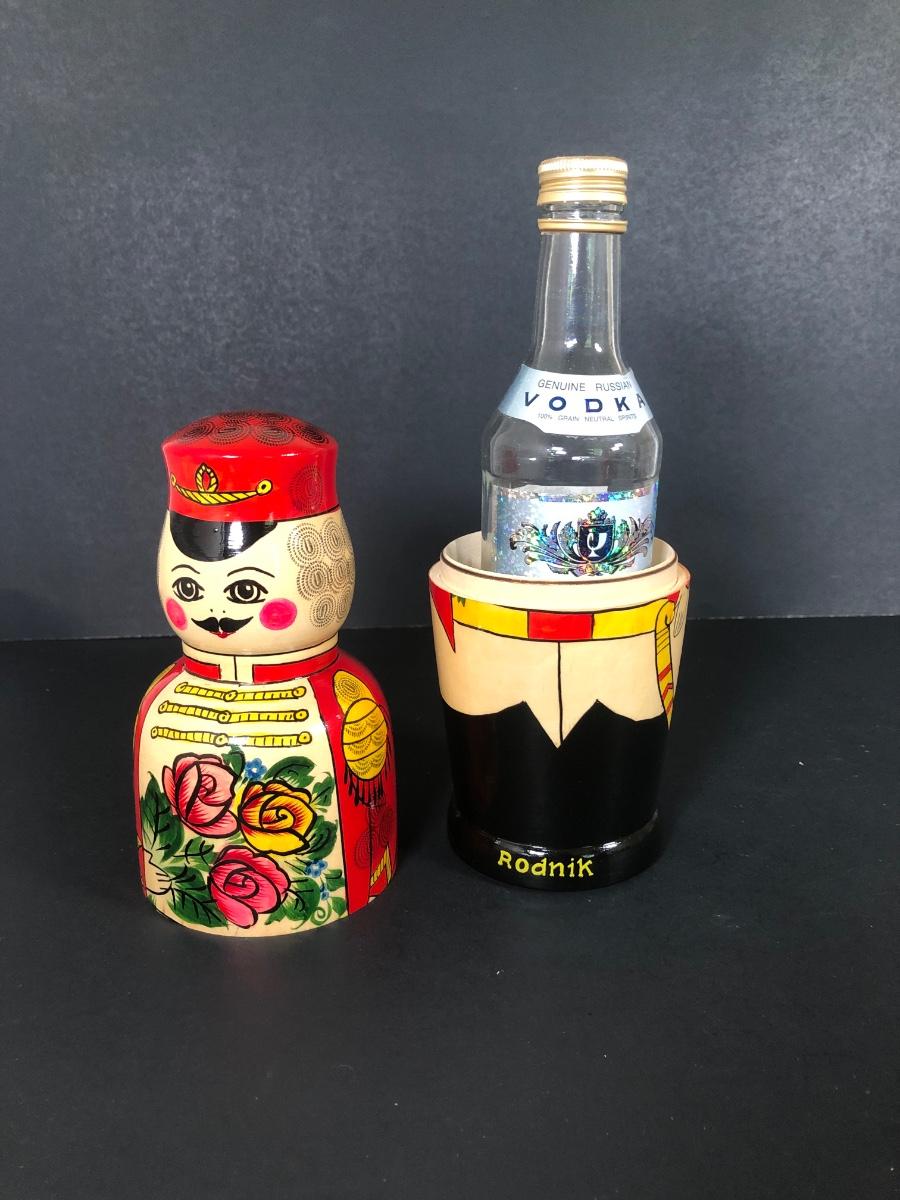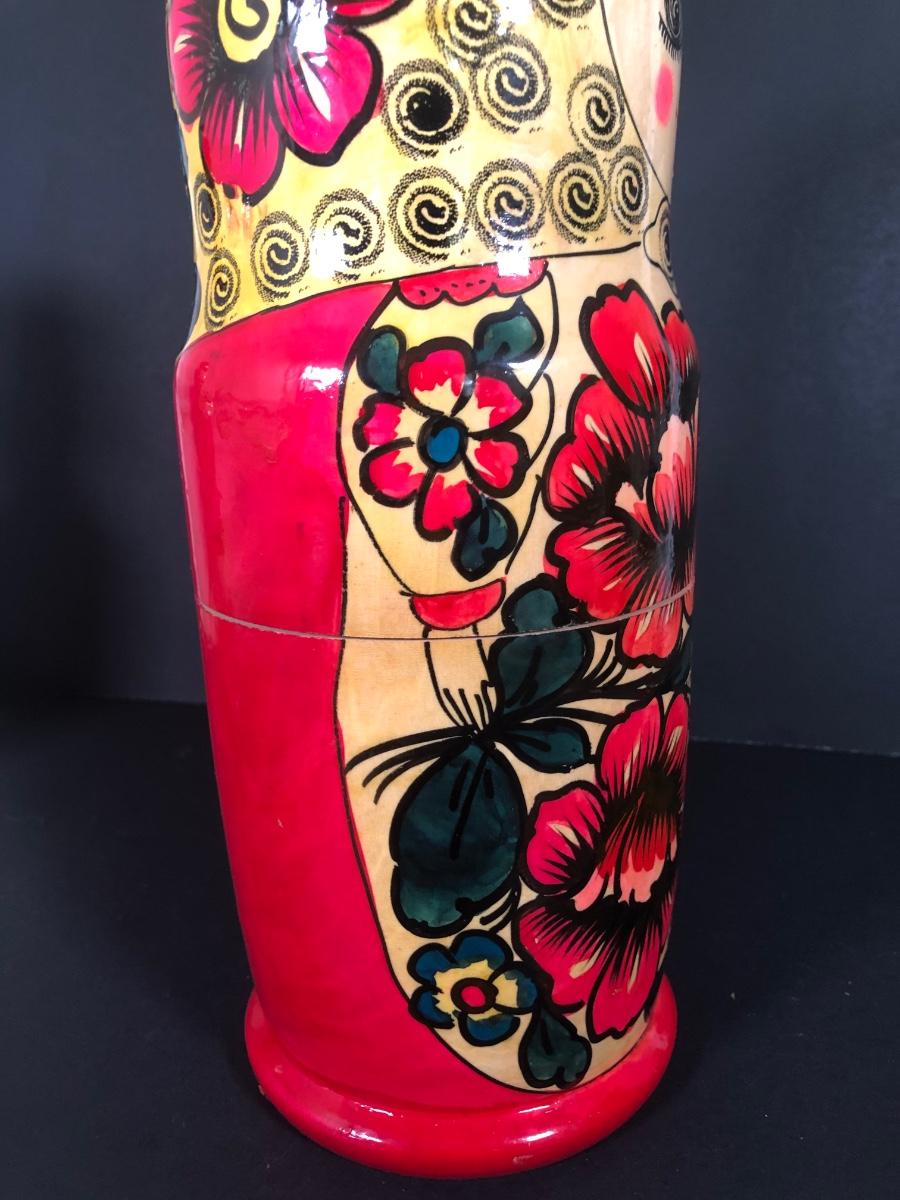 LOT 163: Large Russian Nesting Doll & Wooden Rodnik Vodka Container