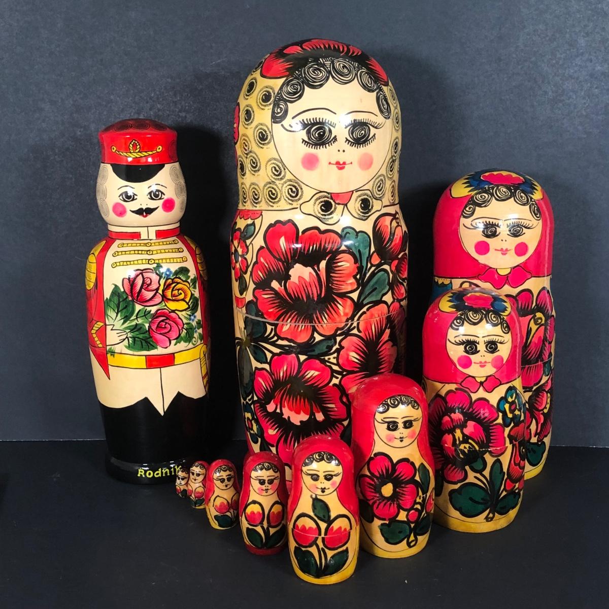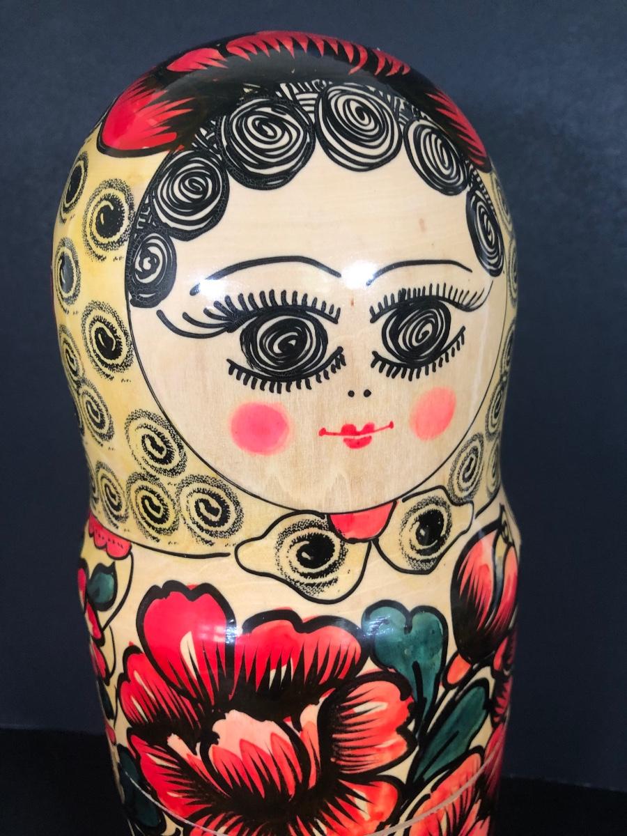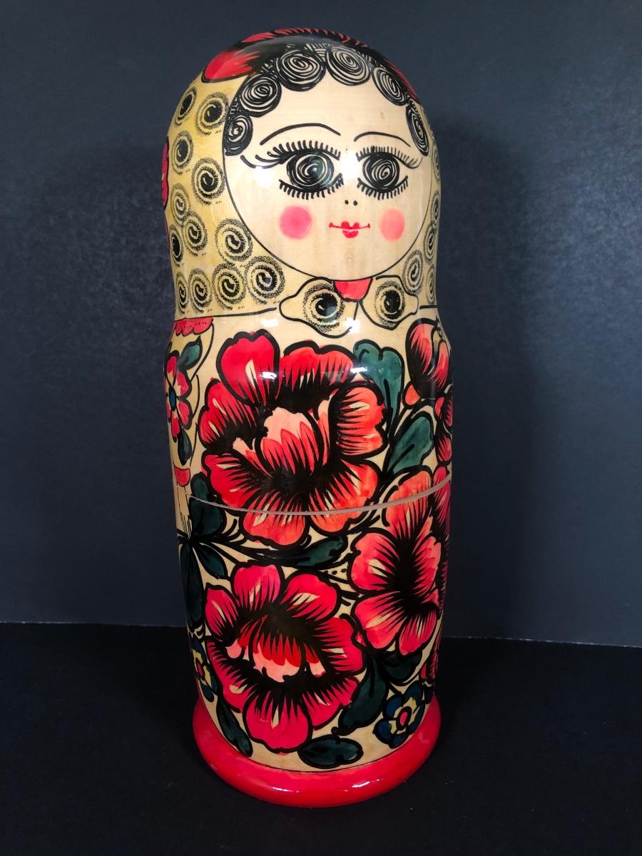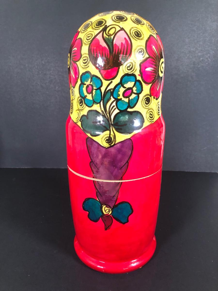 LOT 163: Large Russian Nesting Doll & Wooden Rodnik Vodka Container