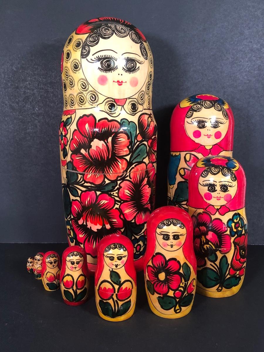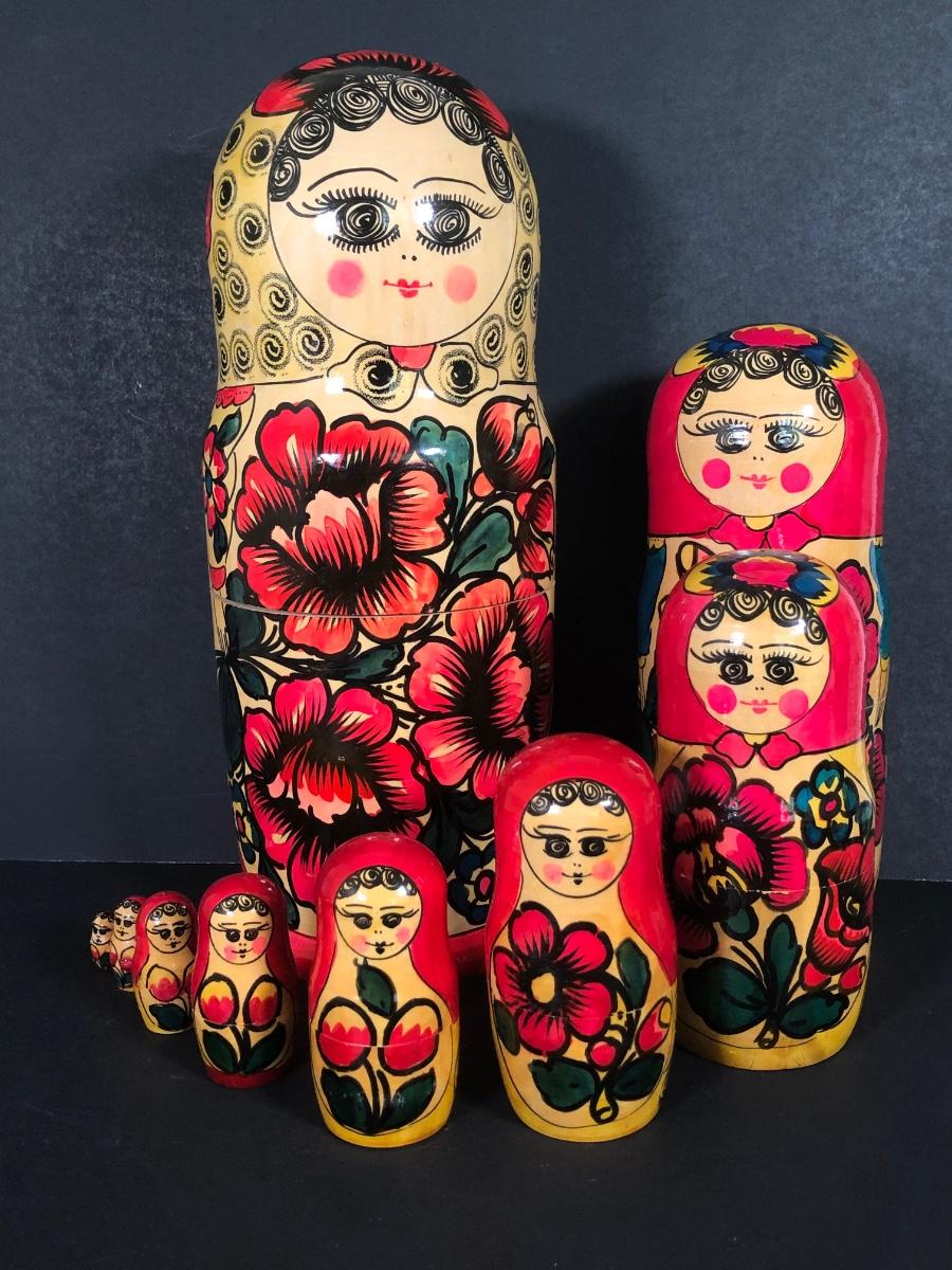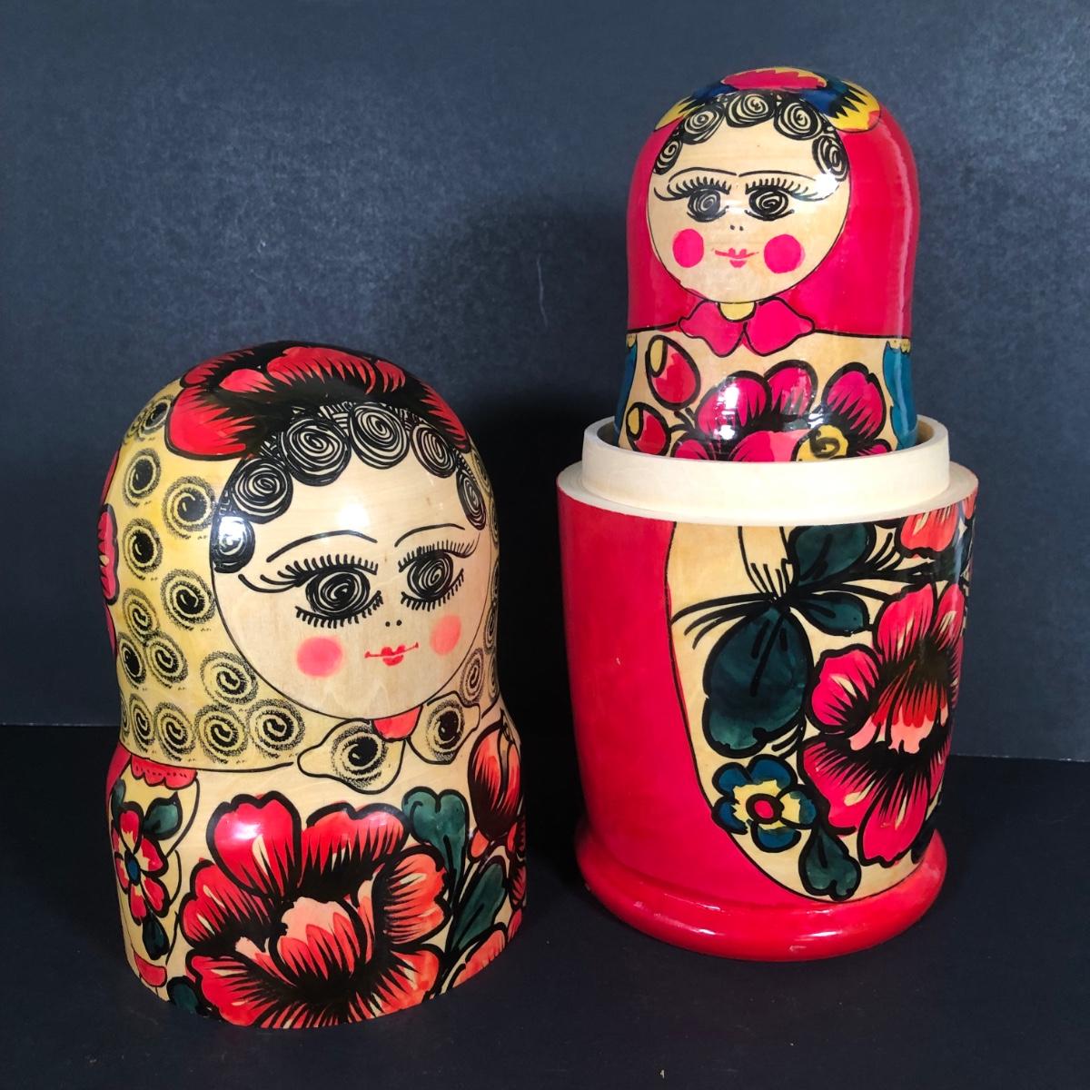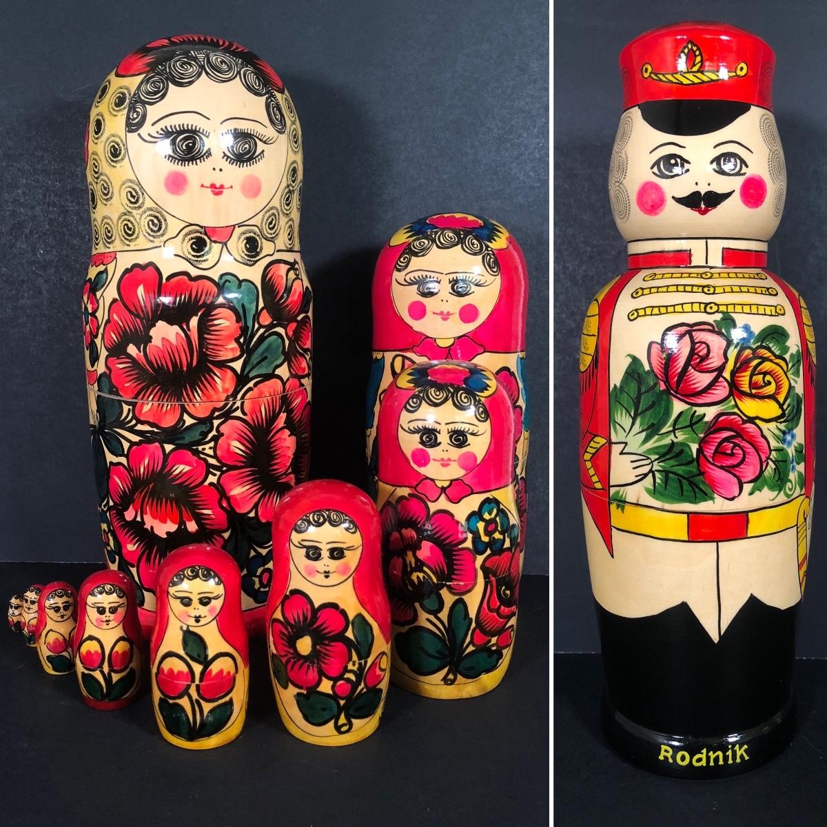 LOT 163: Large Russian Nesting Doll & Wooden Rodnik Vodka Container