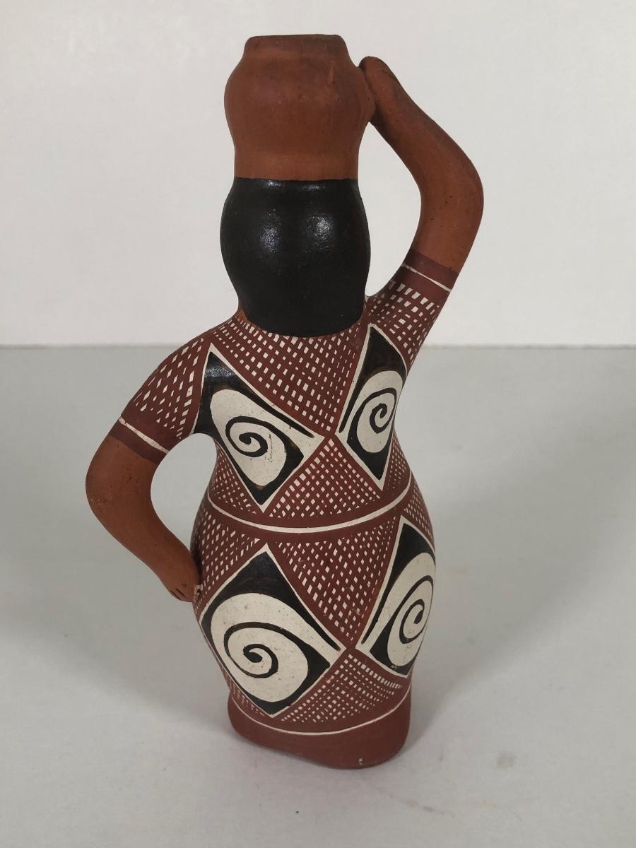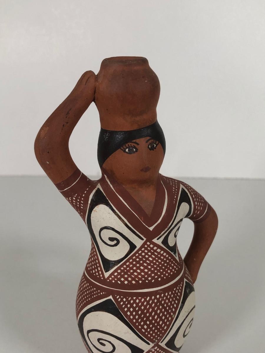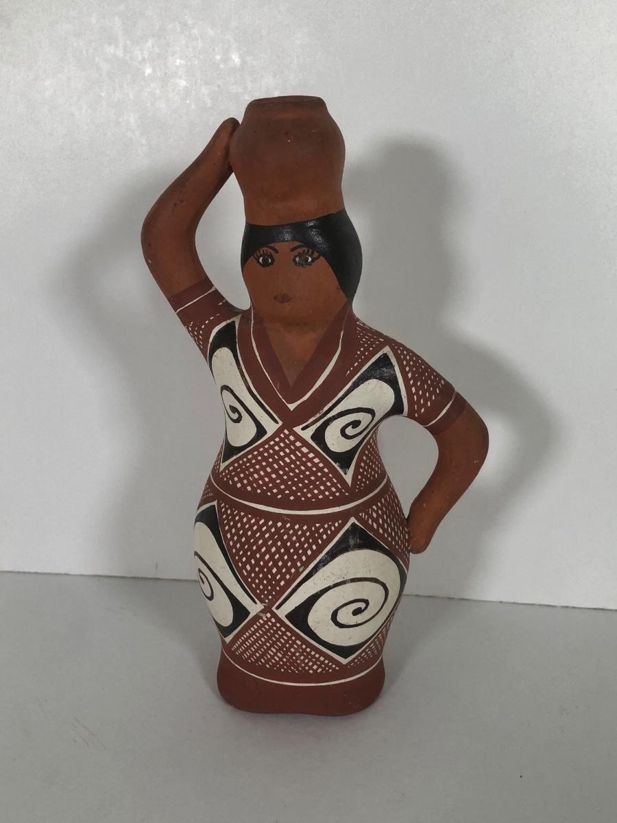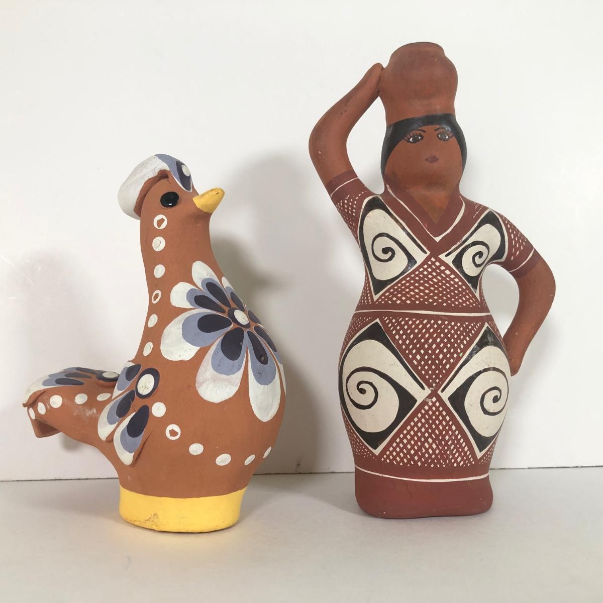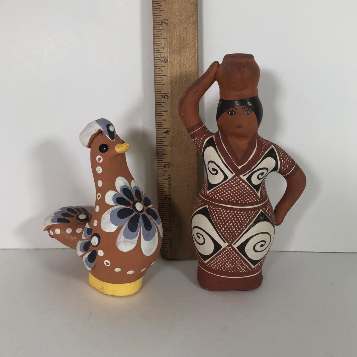 LOT 164K: Vintage Native American Woman w/ Pot Terra Cotta Figure & Terra Cotta Painted Bird