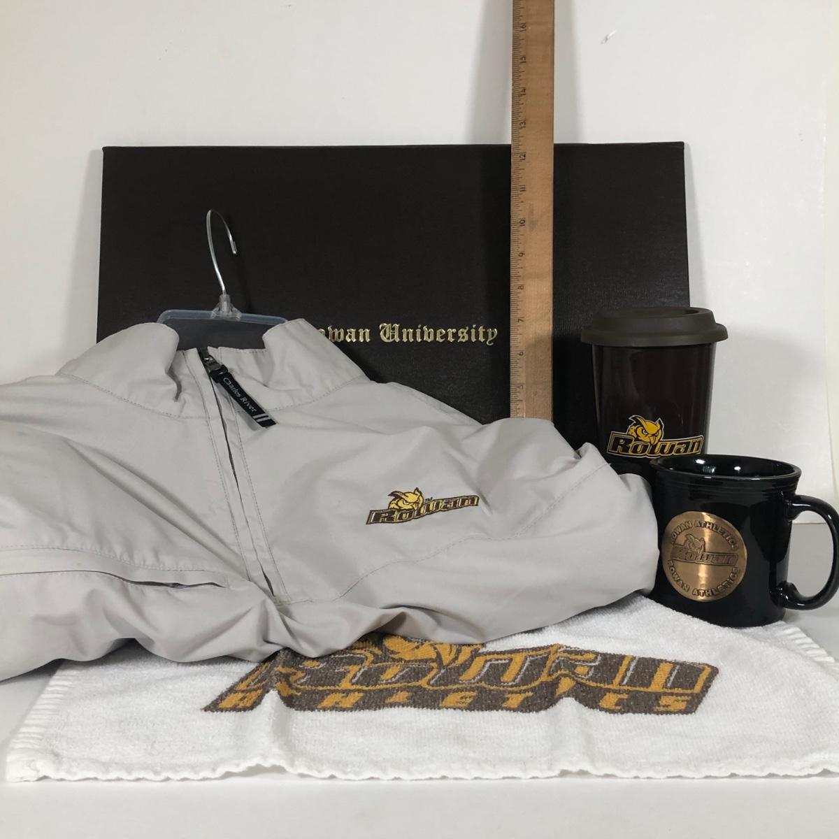 LOT 166L: Rowan University Collection - Diploma Folder, Charles River Jacket (Medium), Mugs & Tea Towel