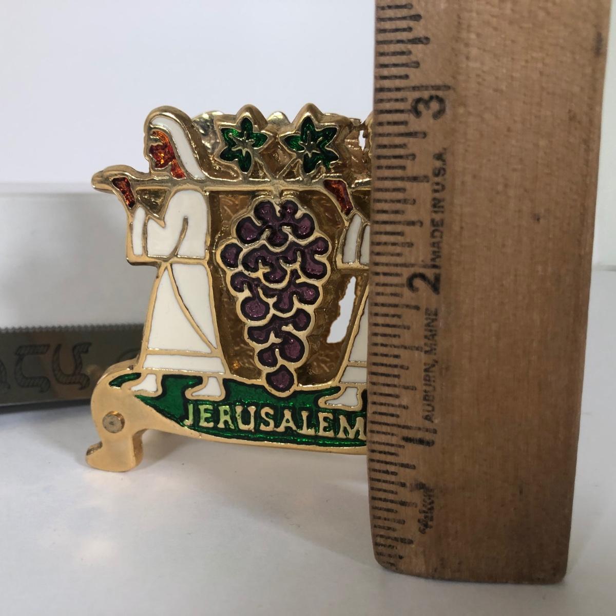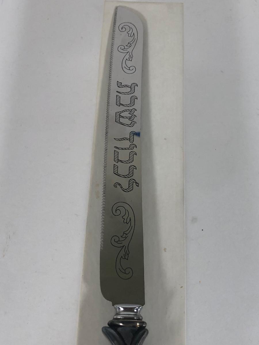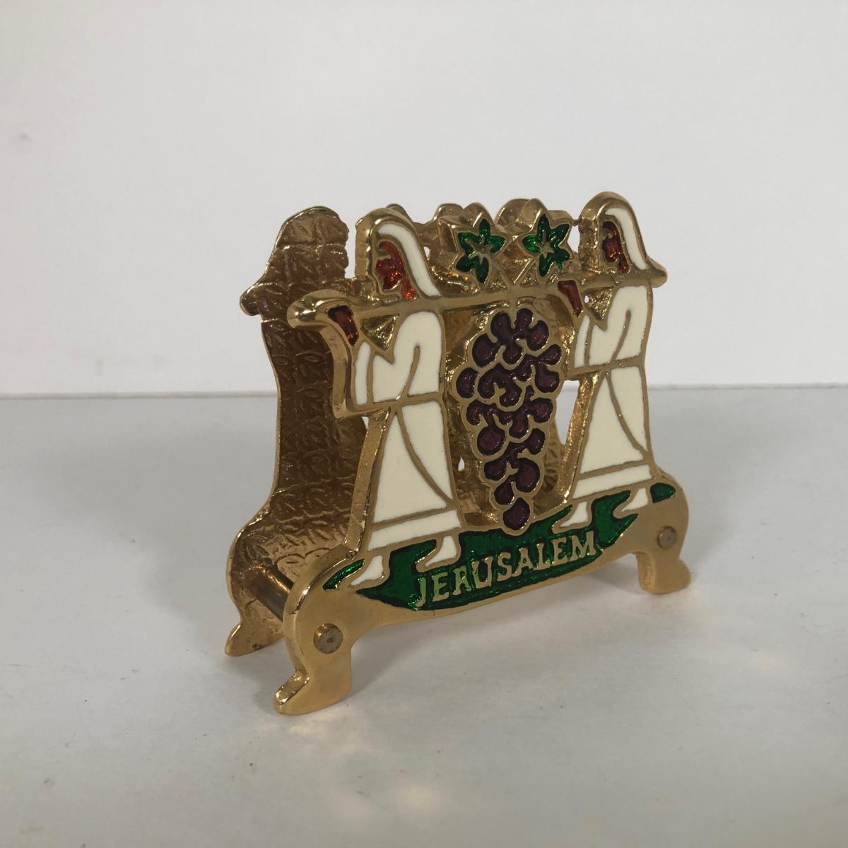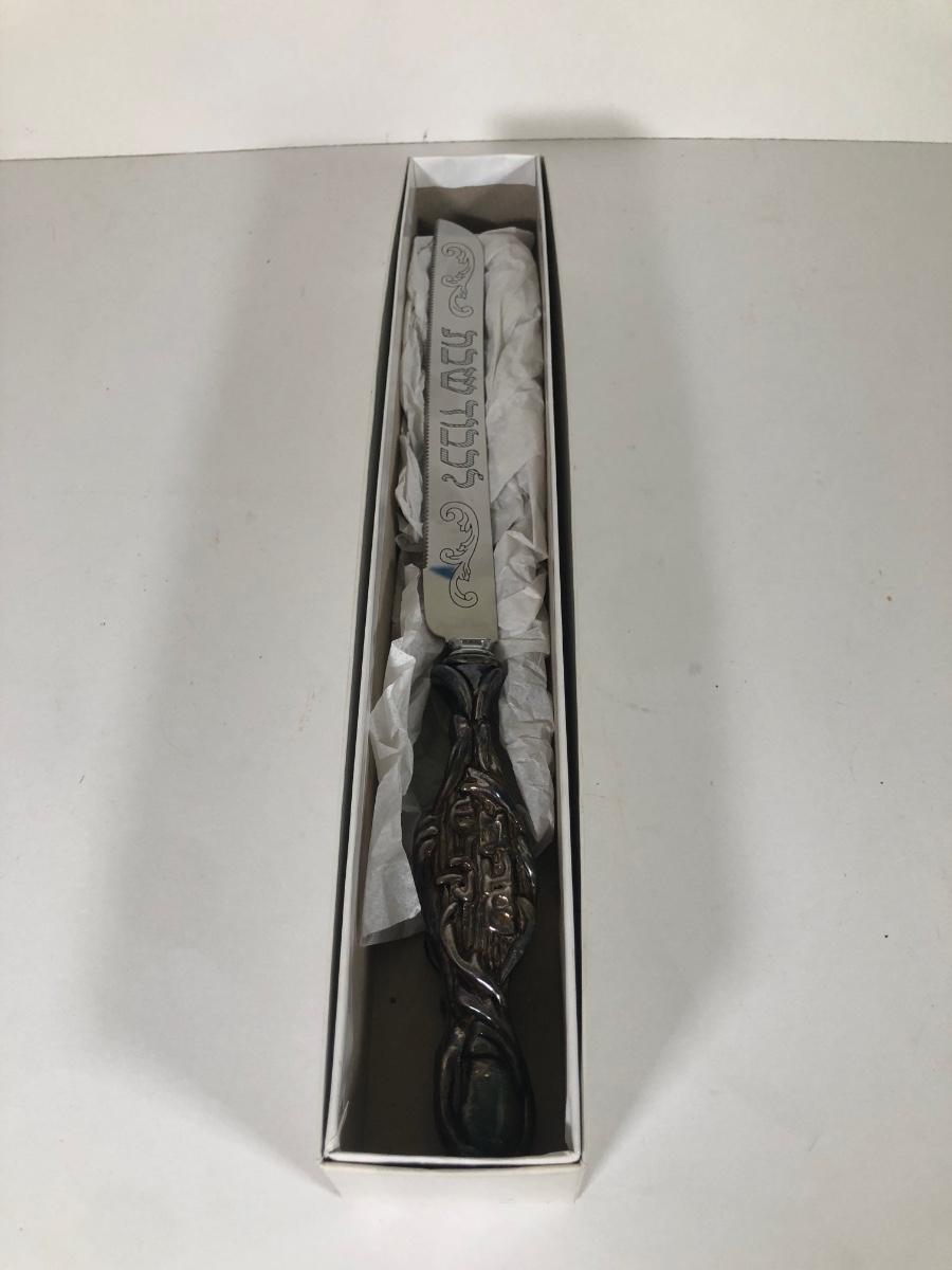 LOT 176L: Vintage Challah Knive 925 Sterling Silver Handle & Brass Jerusalem Napkin Holder
