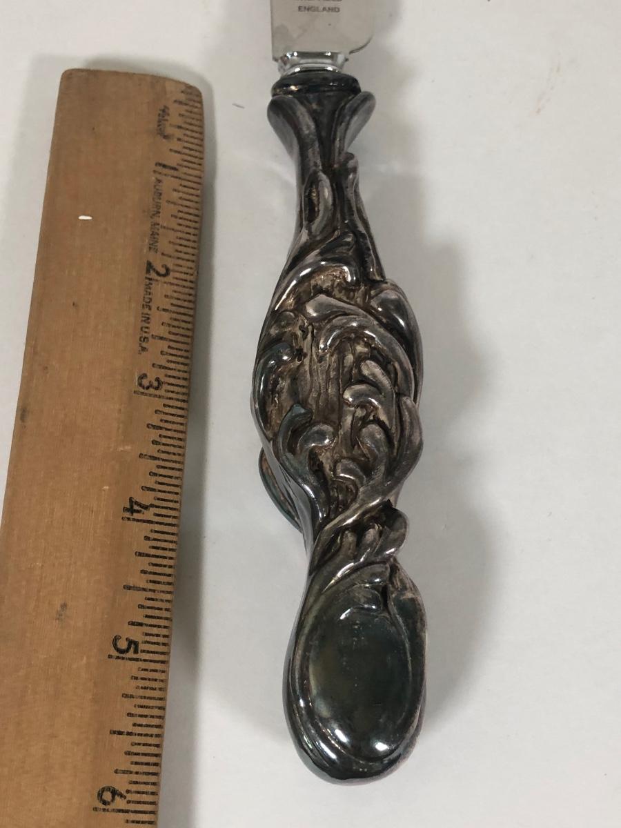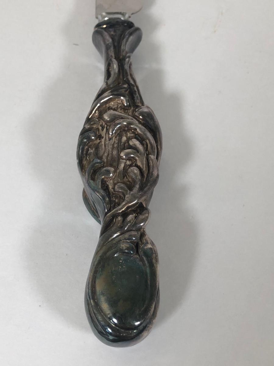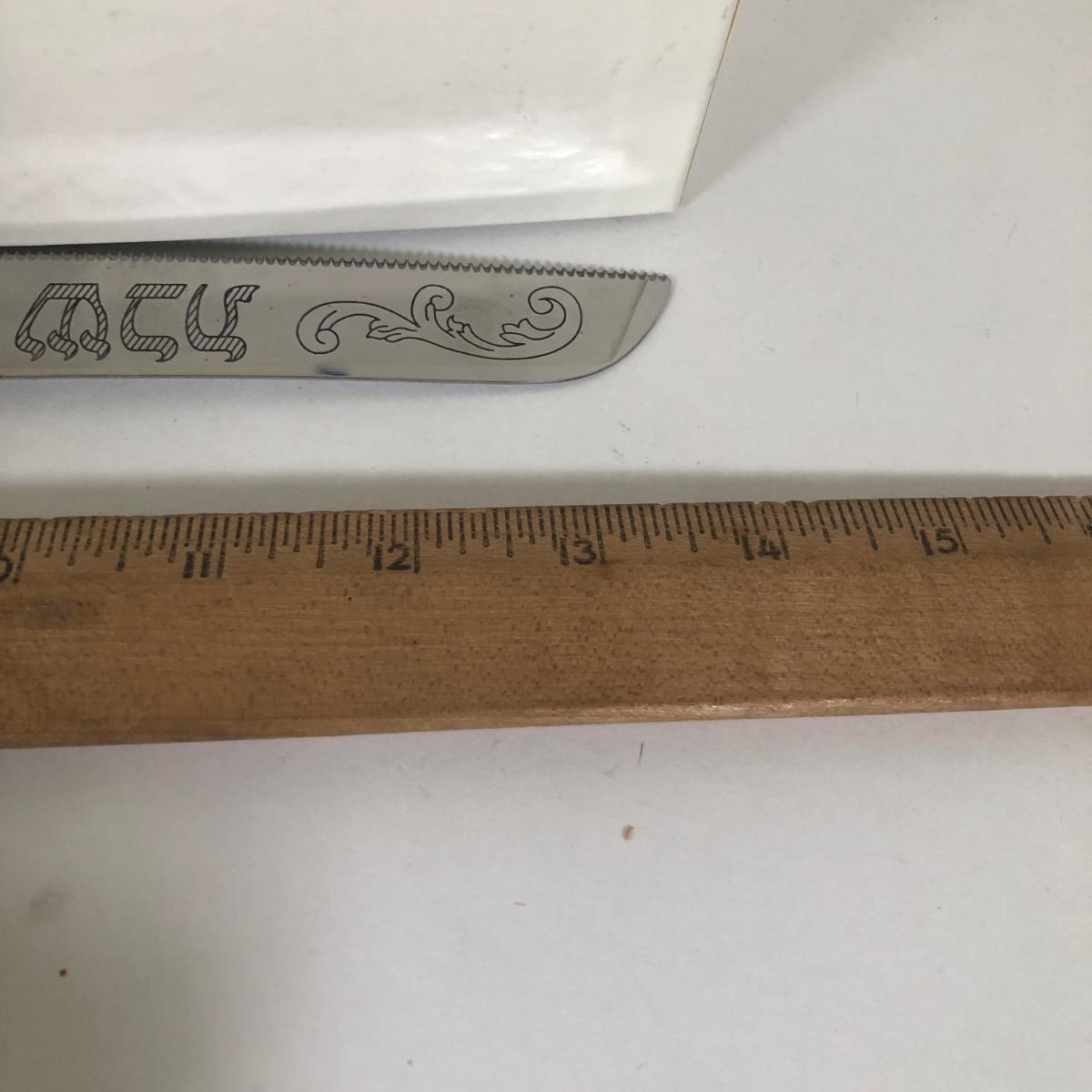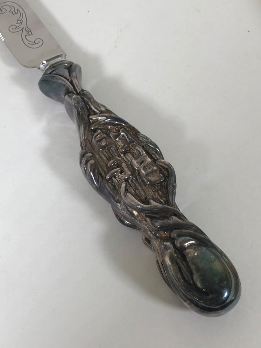 LOT 176L: Vintage Challah Knive 925 Sterling Silver Handle & Brass Jerusalem Napkin Holder