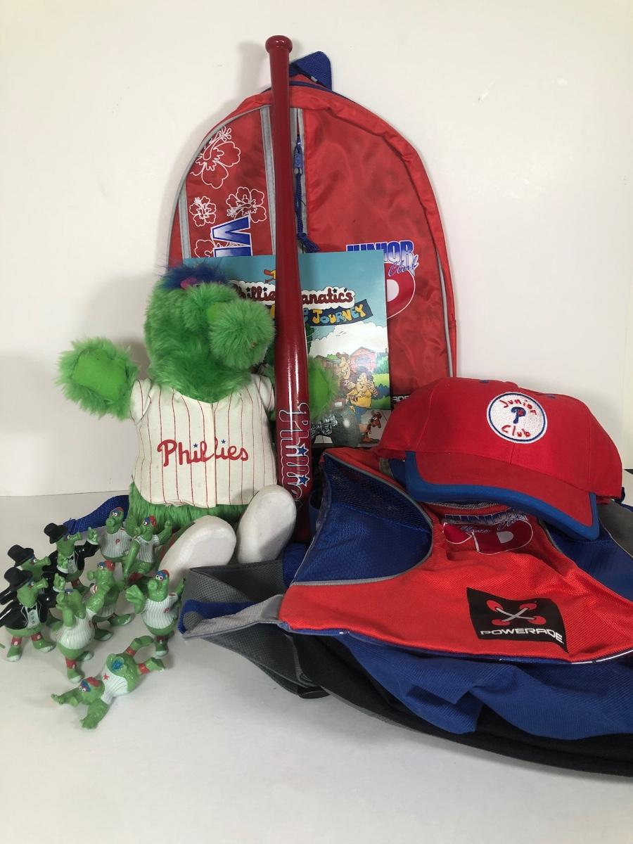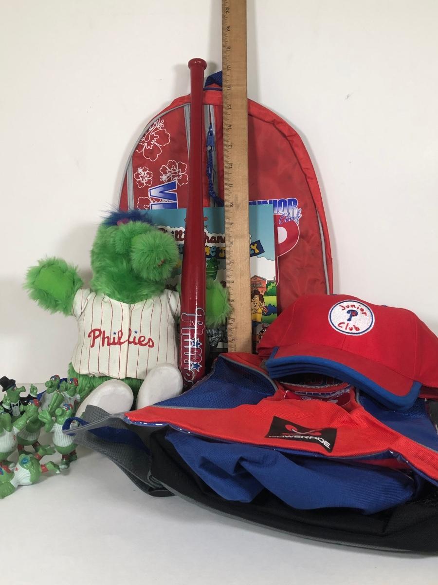 LOT 178L: Phillies' Kids' Collection - Stuffed Fanatic, Junior Club Hats & Bags, Small Bat & More