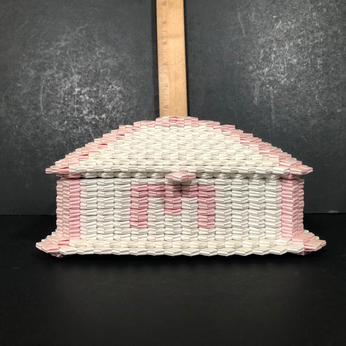 LOT 183K: Vintage Hand Made Folk / Tramp Art Woven Jewelry Box