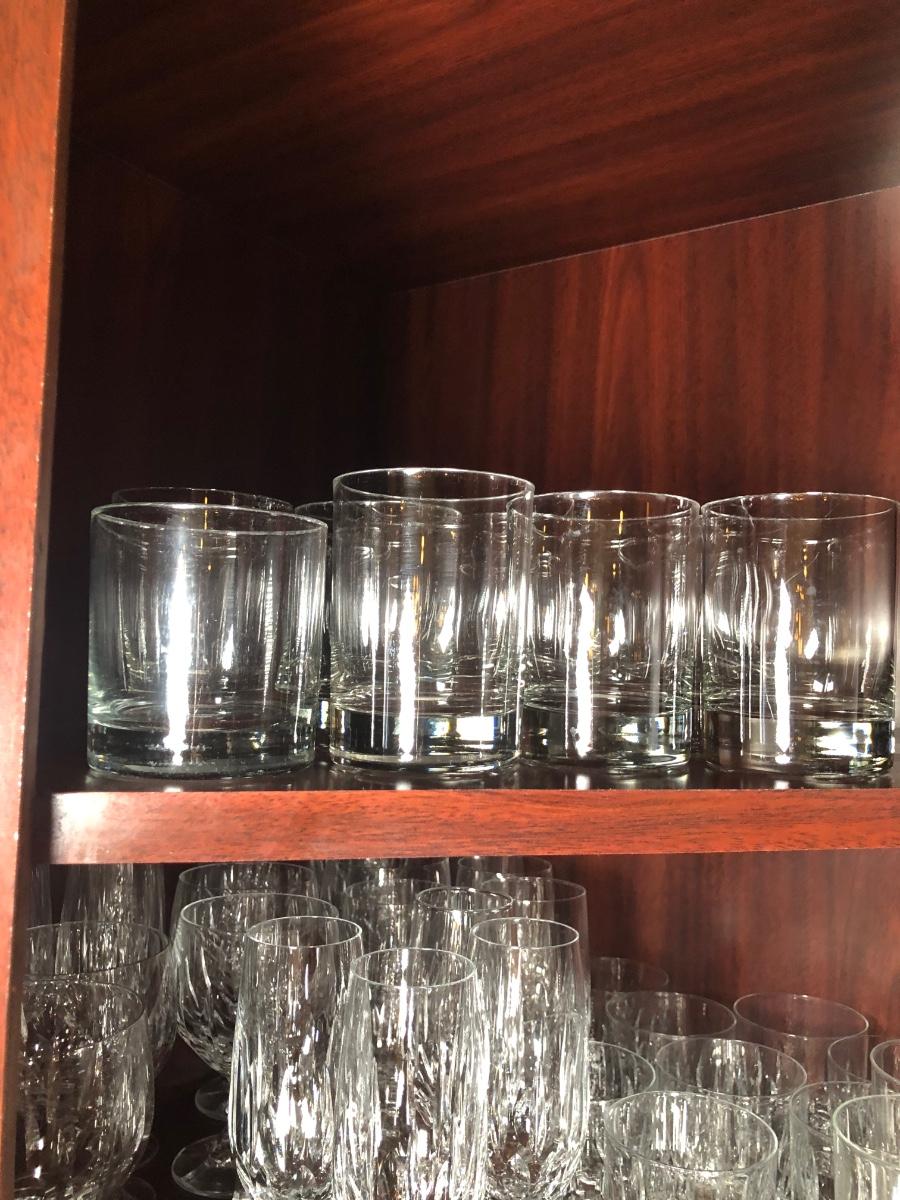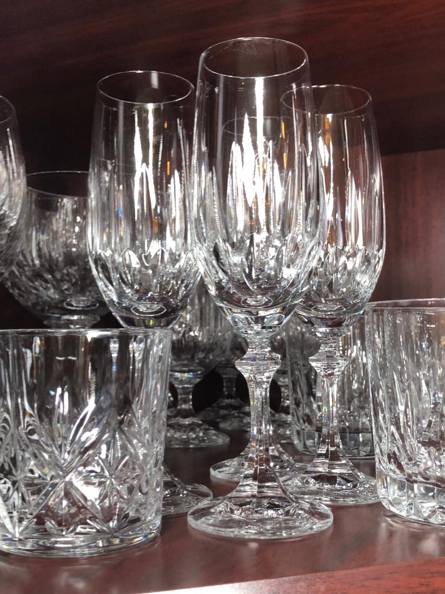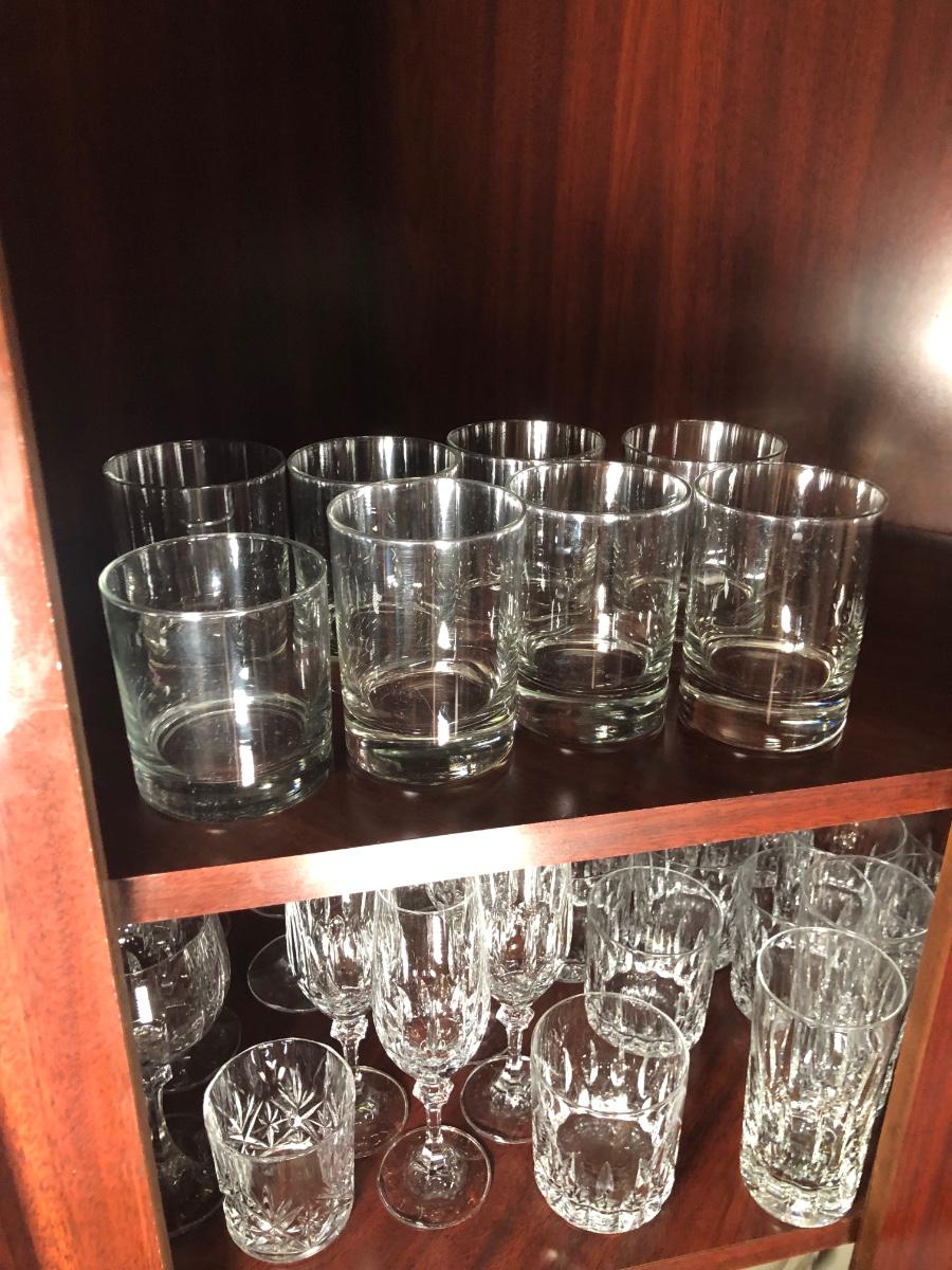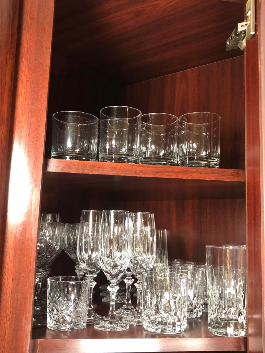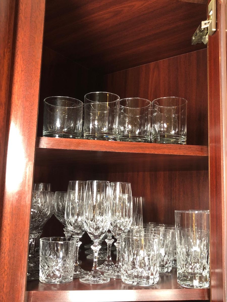 LOT 190K: Cabinet of Stemmed Crystal Glasses, Lowball Glasses & More