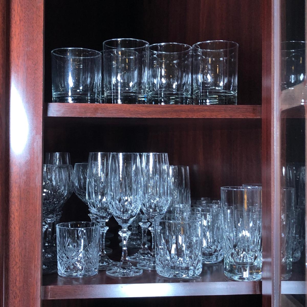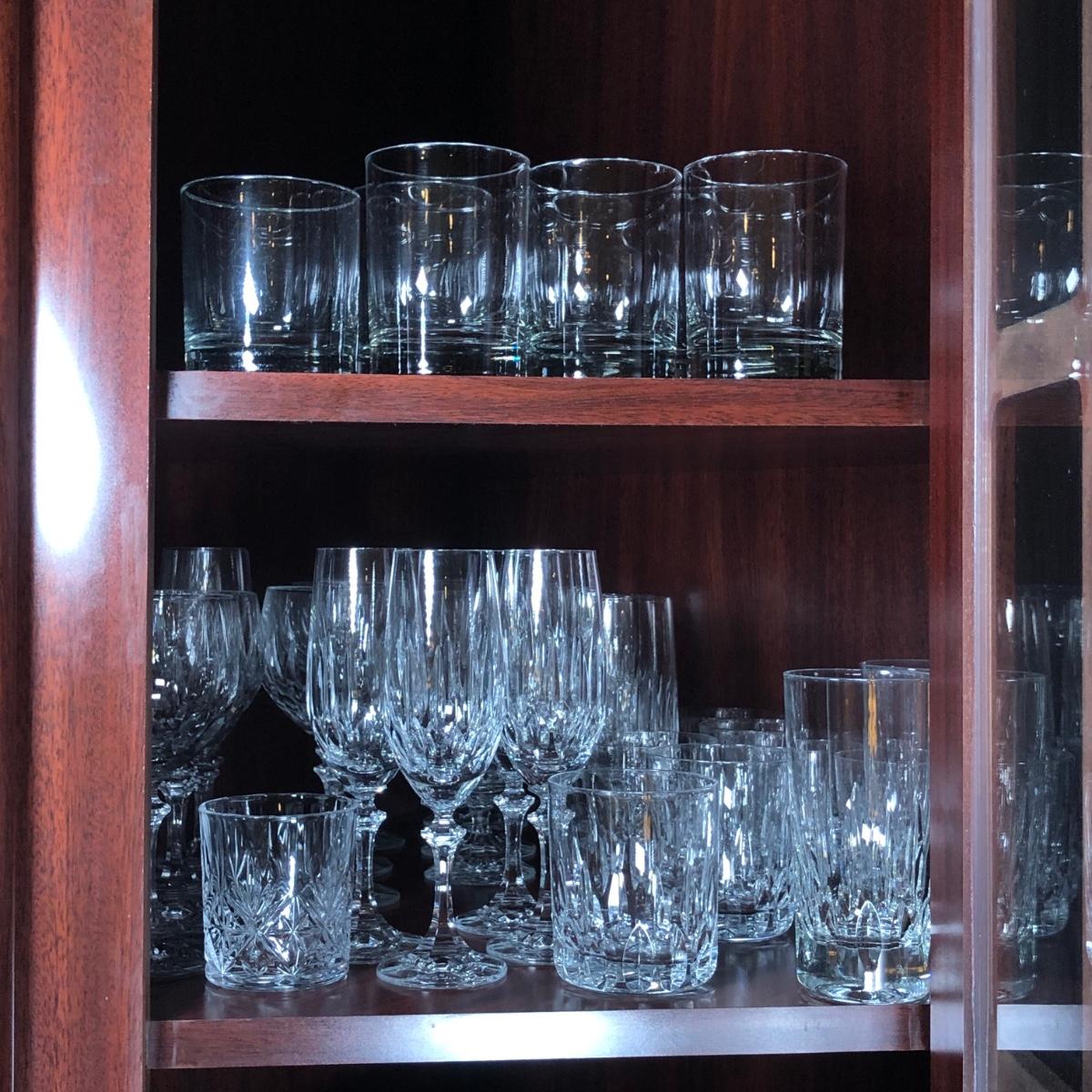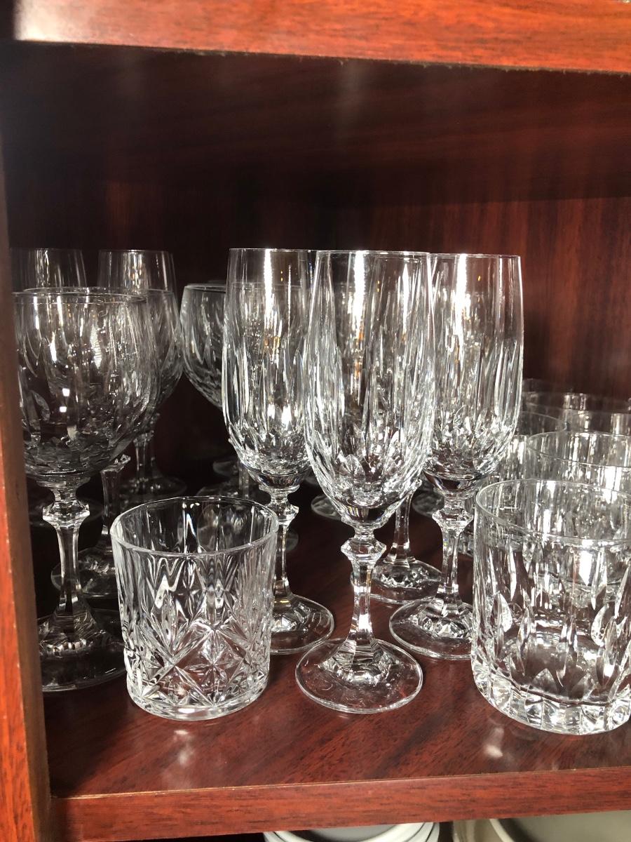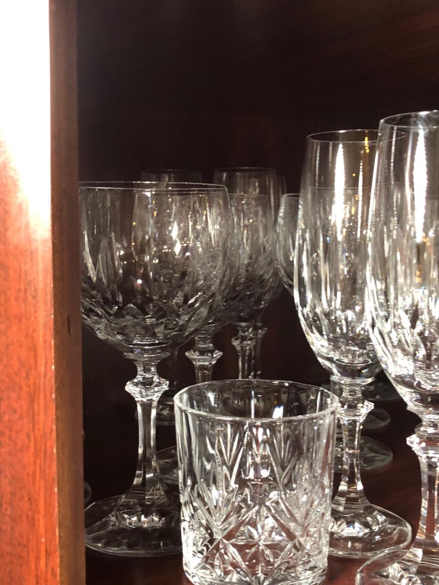 LOT 190K: Cabinet of Stemmed Crystal Glasses, Lowball Glasses & More