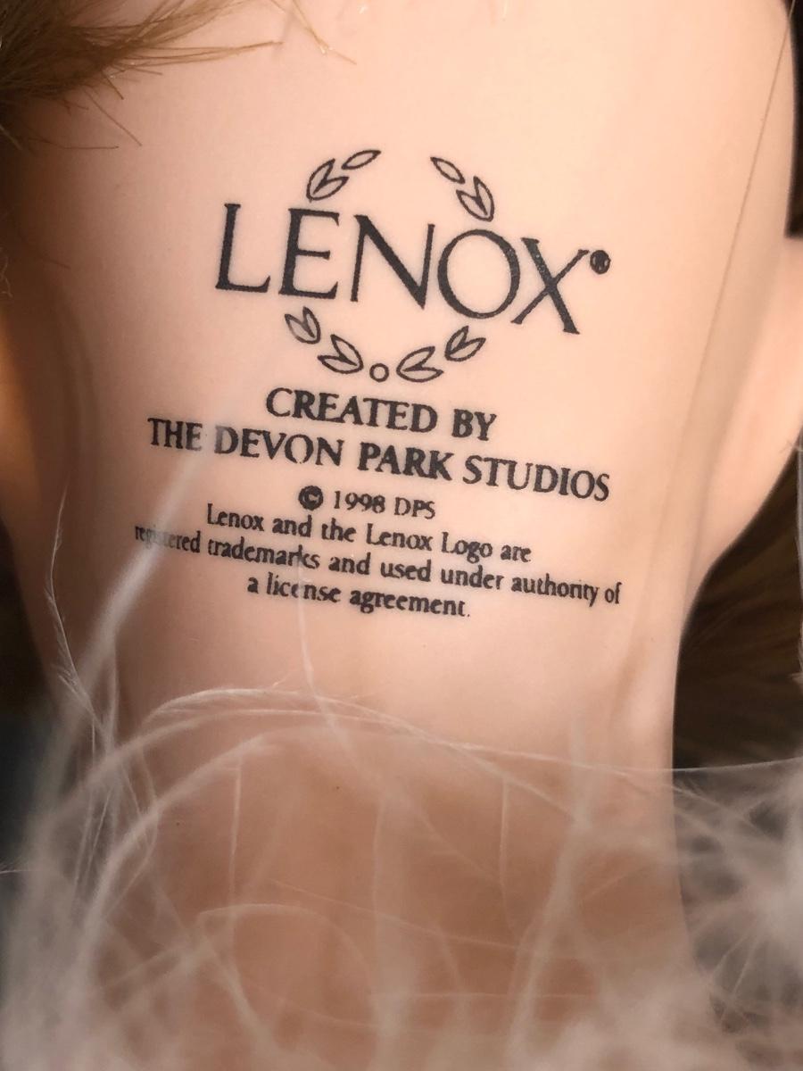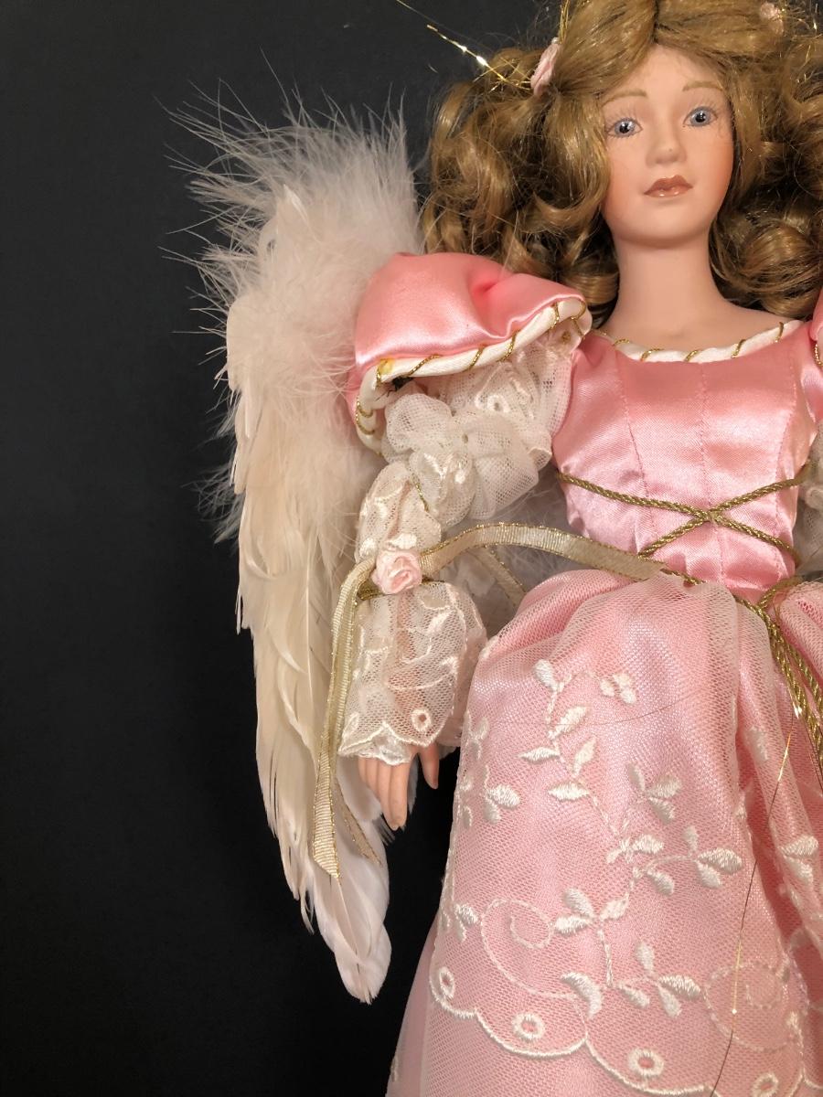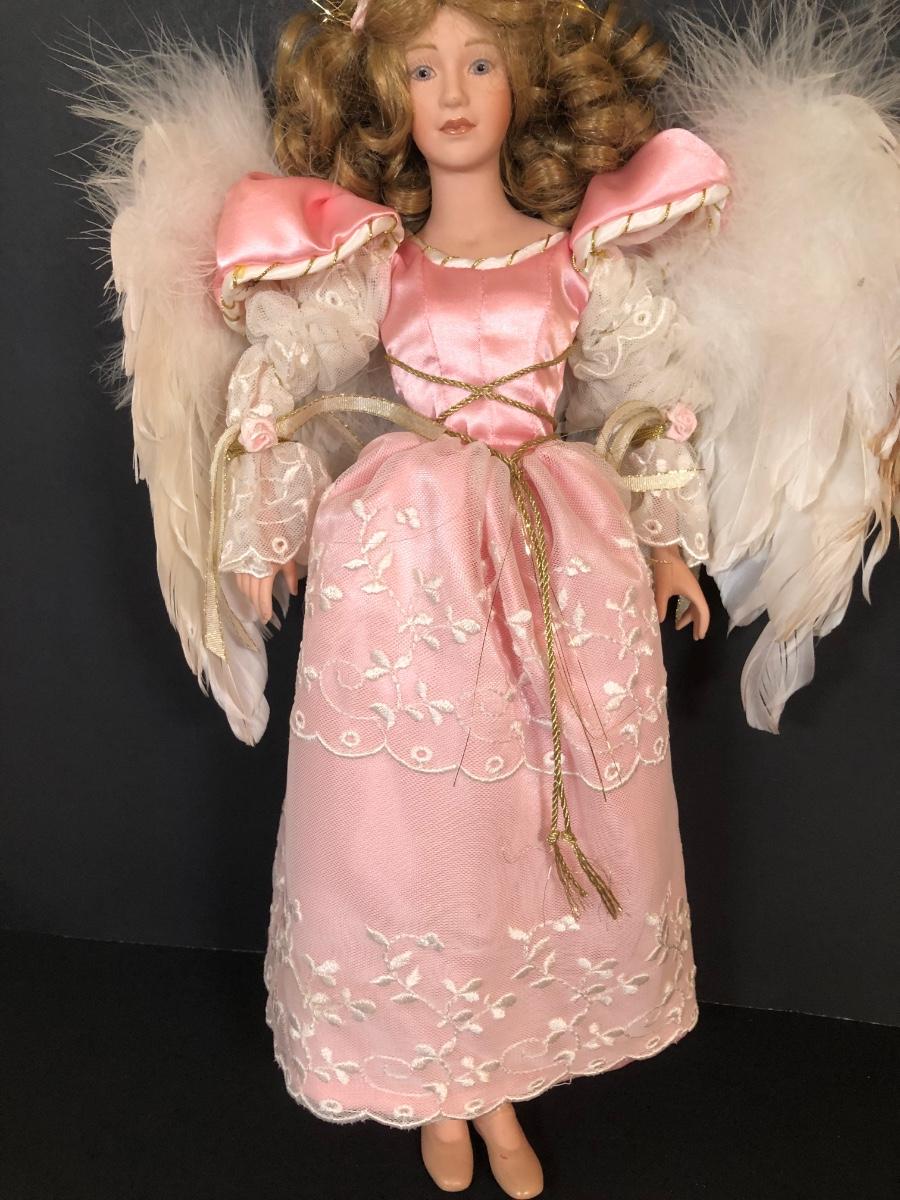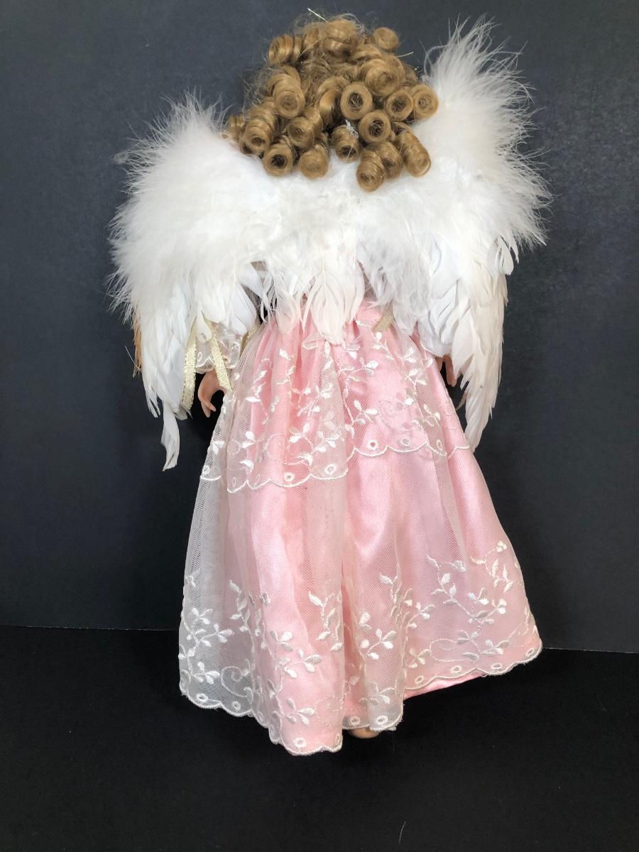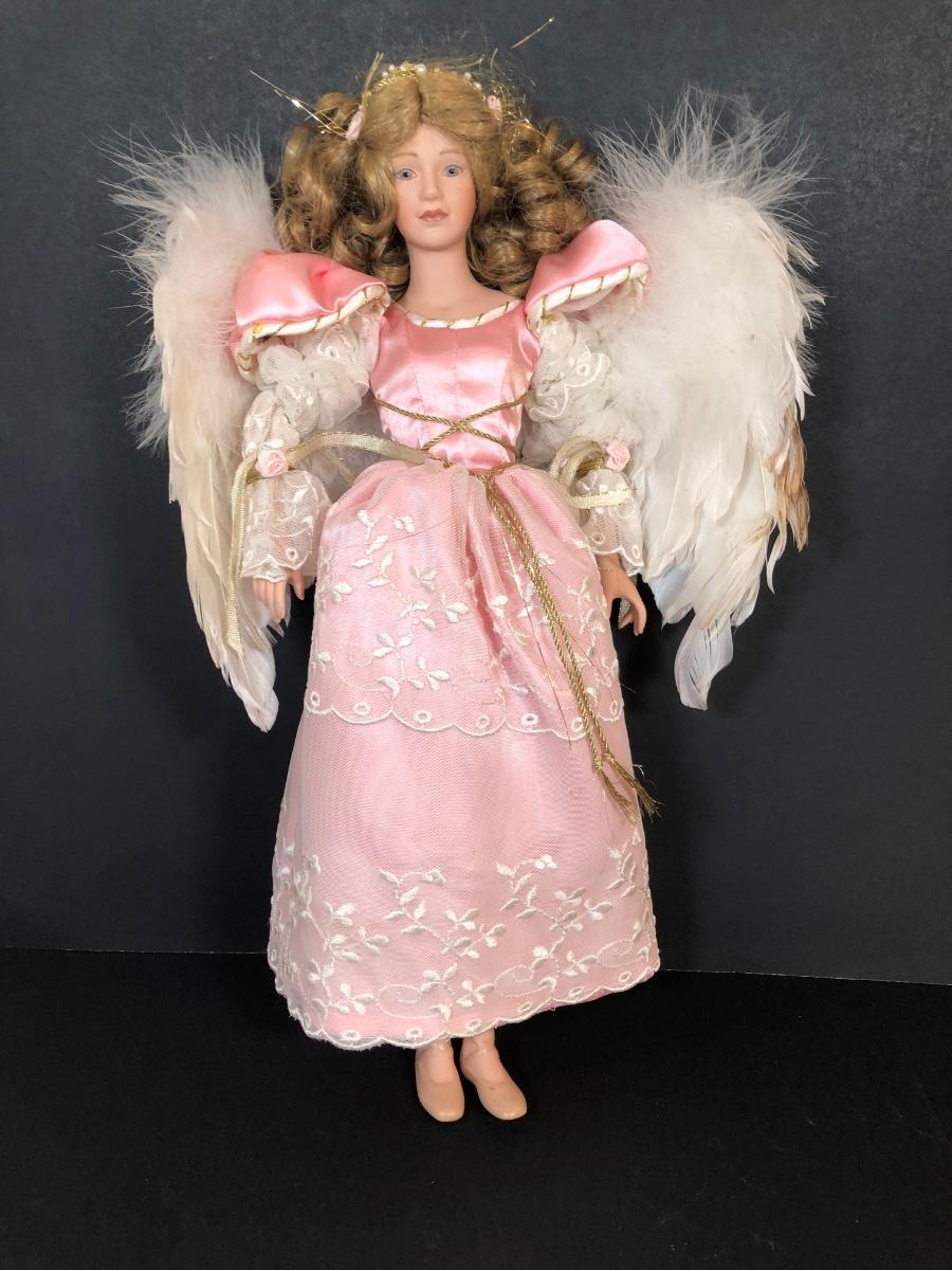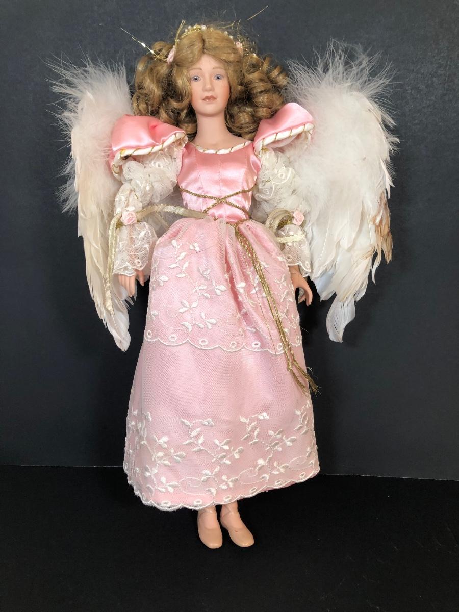 LOT 196L: 1998 Devon Park Studios Lenox Angel Doll in Pink Dress w/ Milk Glass Ribbed Bowl