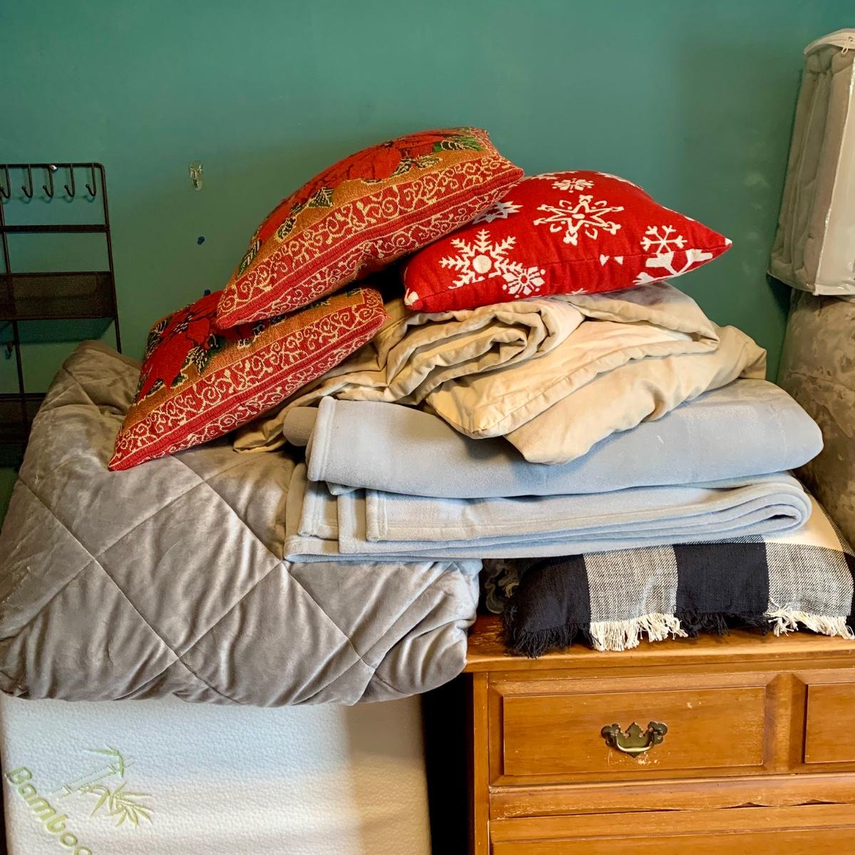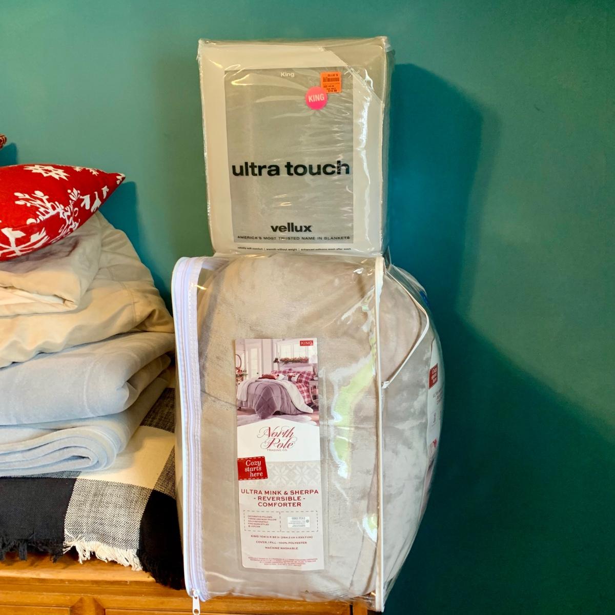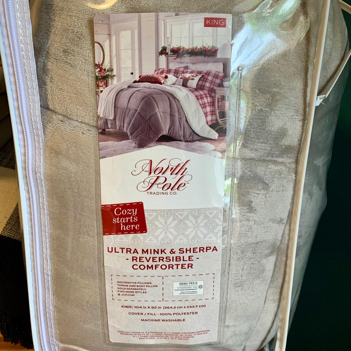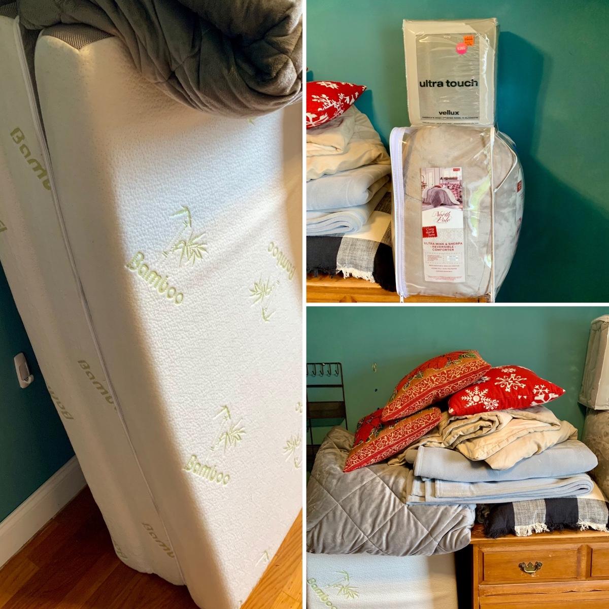 LOT 205 U: Bedding Colleciton: Inofia Tri-Fold Full Size Mattress W/ Bamboo Cover, North Pole Trading Co. Ultra Mink & Sherpa in package Reversible Comforter, & More