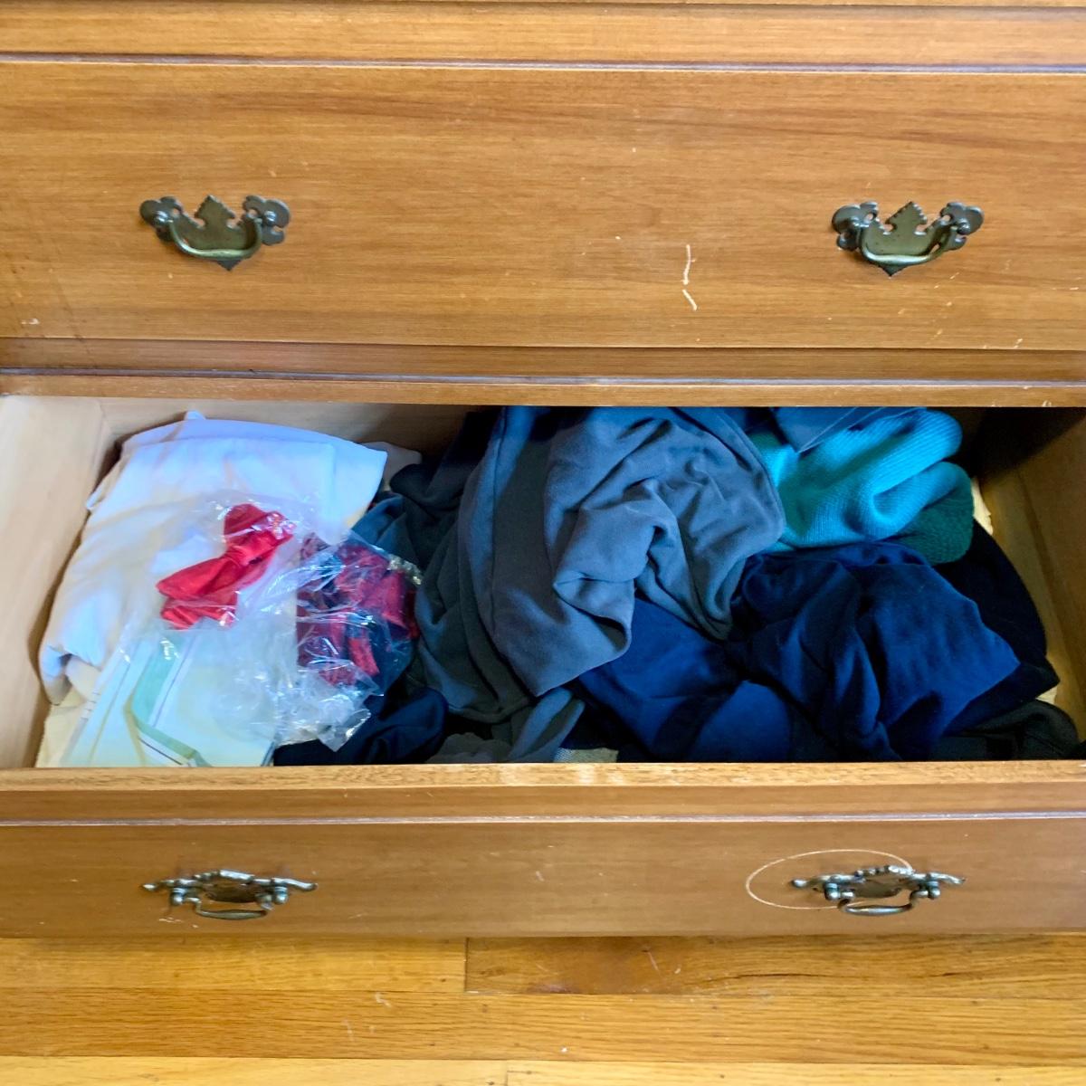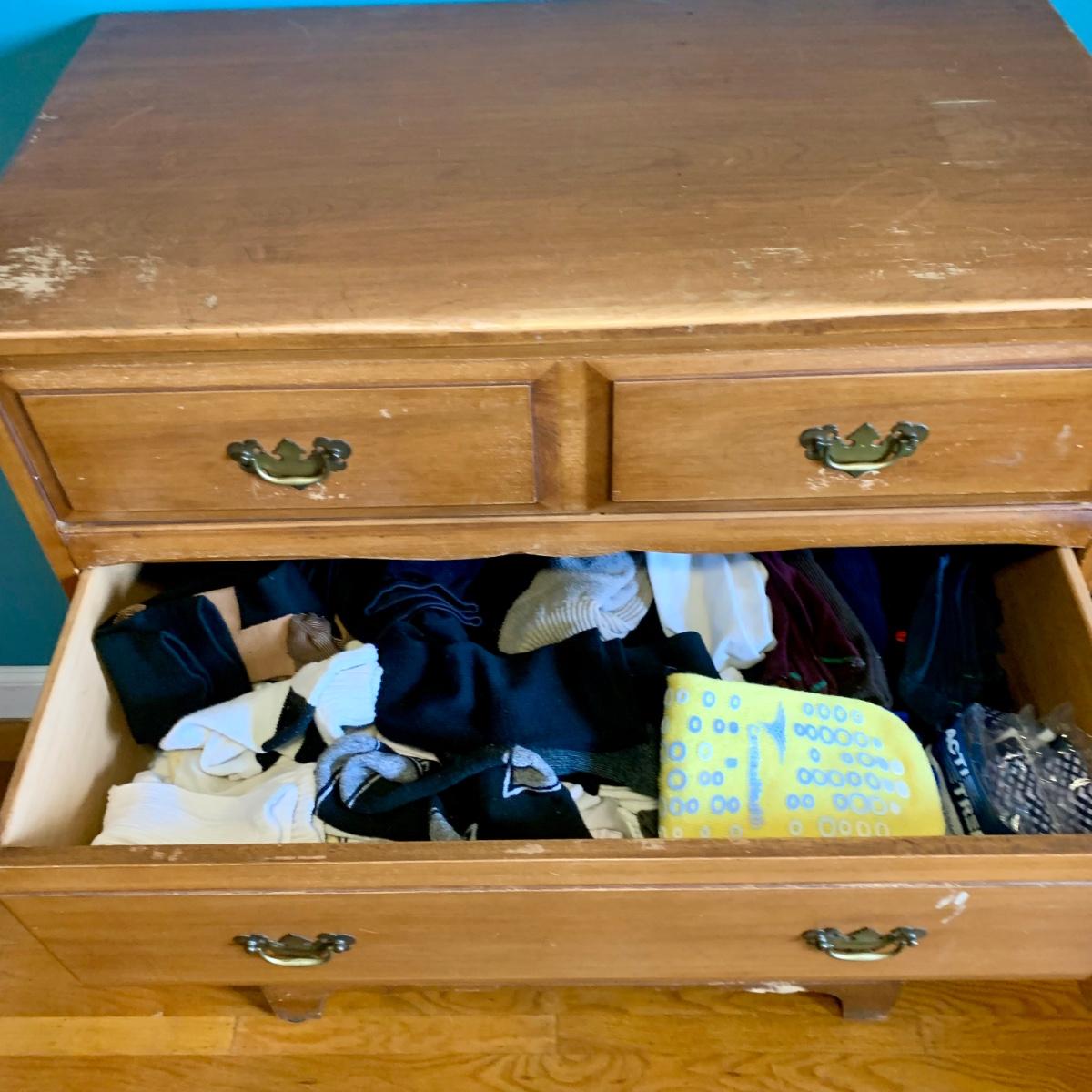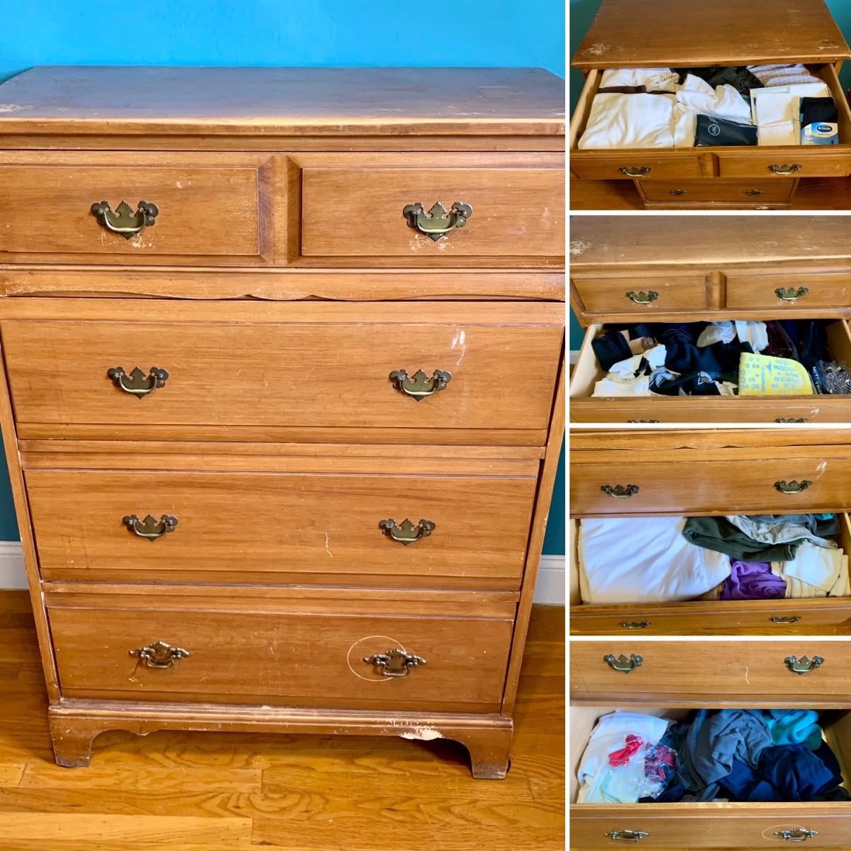 LOT 206 U: Vintage 4 Drawer Dresser W/ Clothing