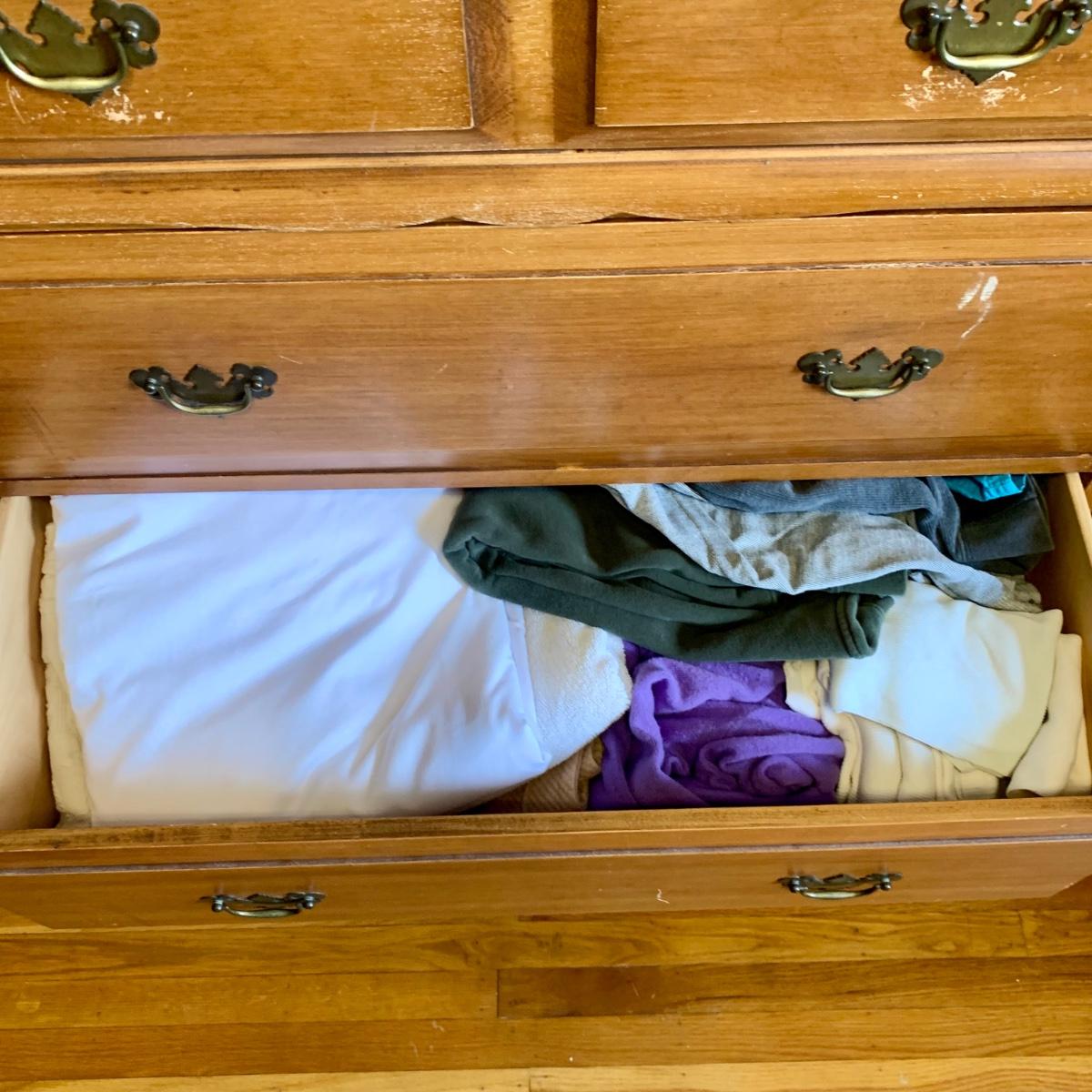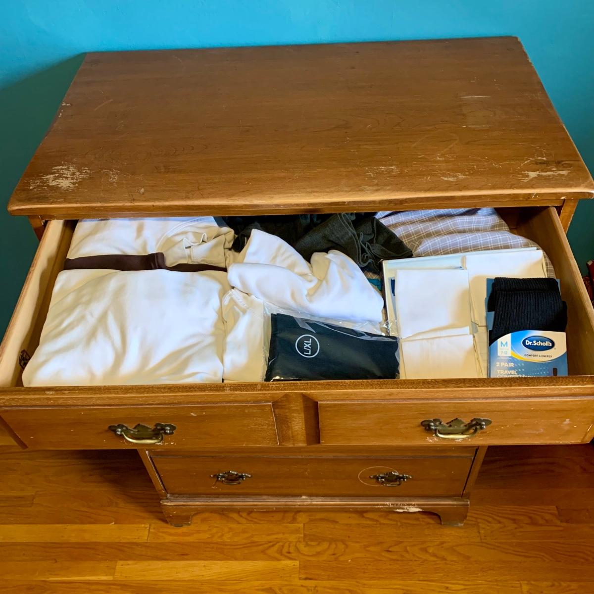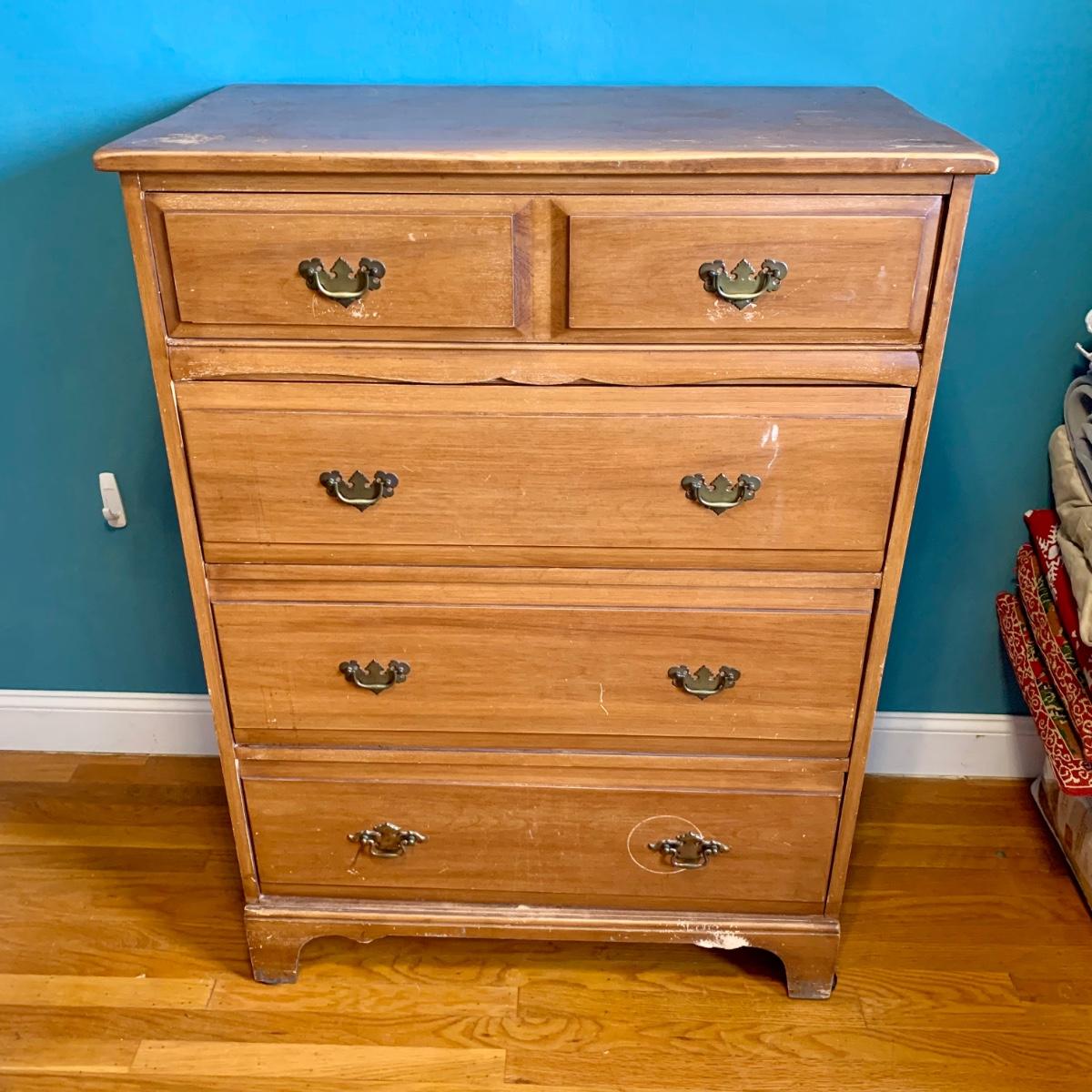 LOT 206 U: Vintage 4 Drawer Dresser W/ Clothing
