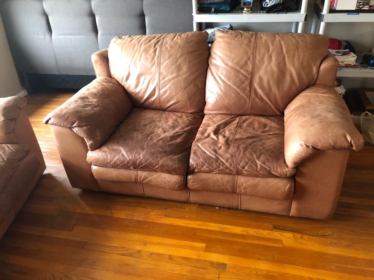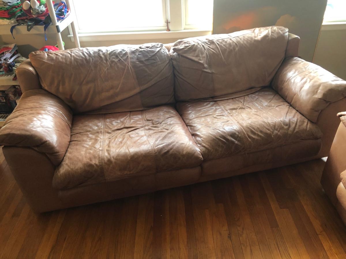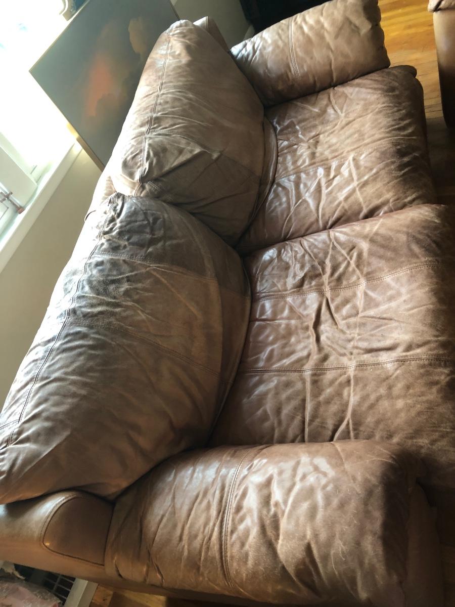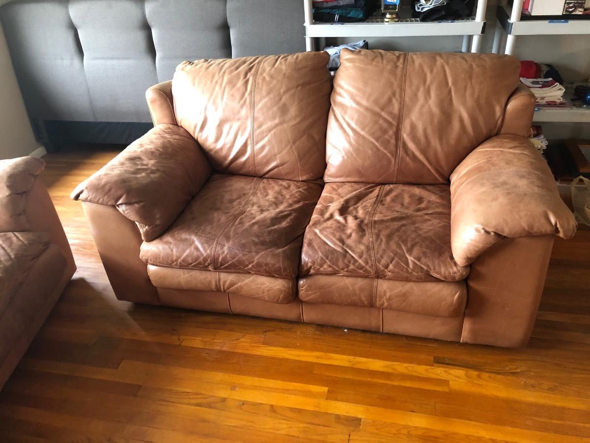 LOT 214L: Two Brown Faux Leather Couches
