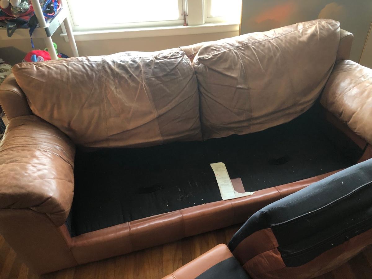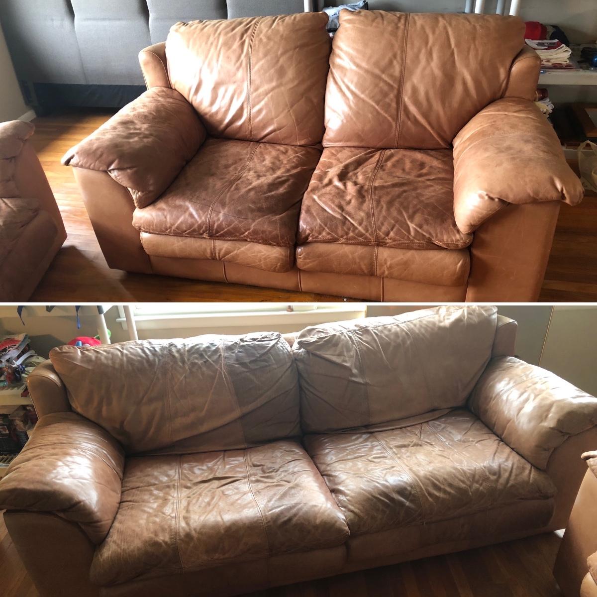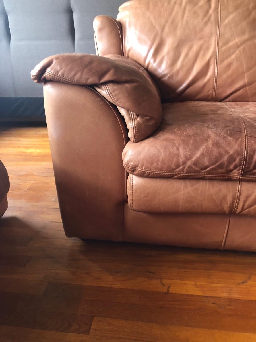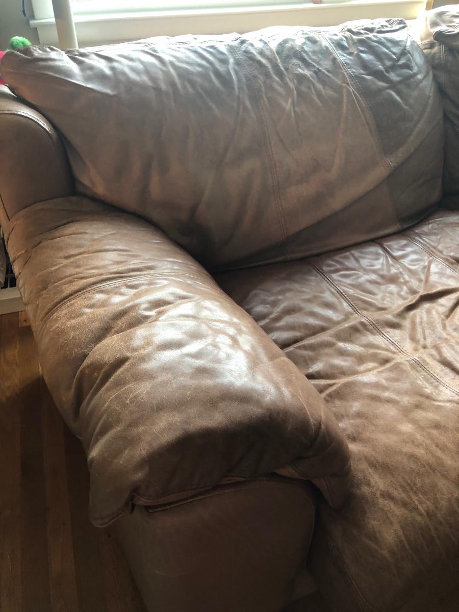 LOT 214L: Two Brown Faux Leather Couches