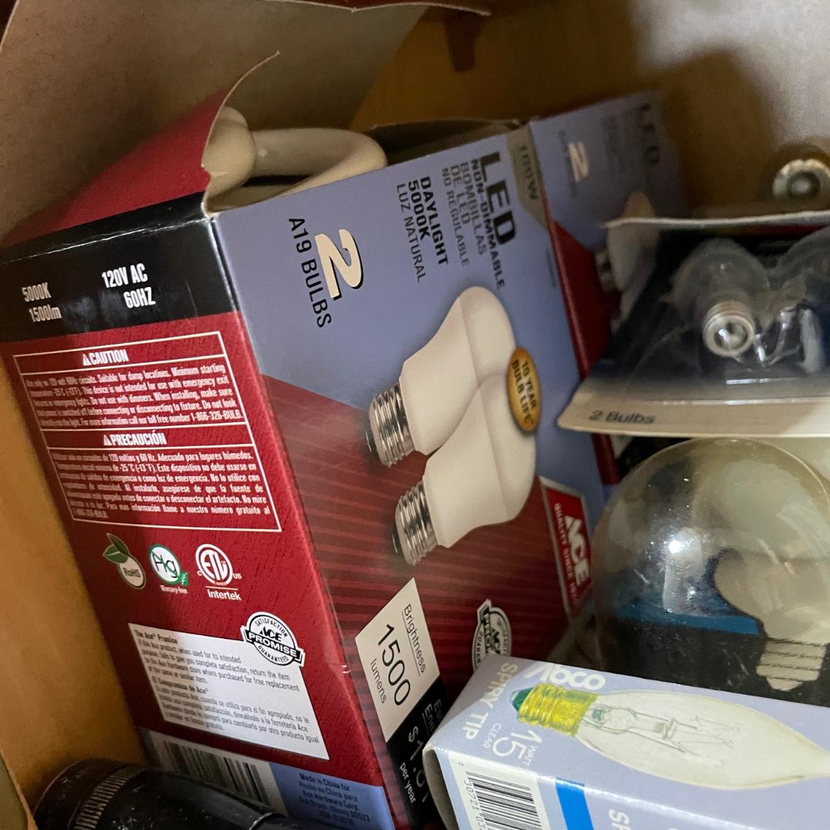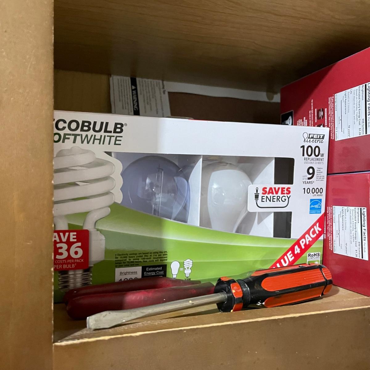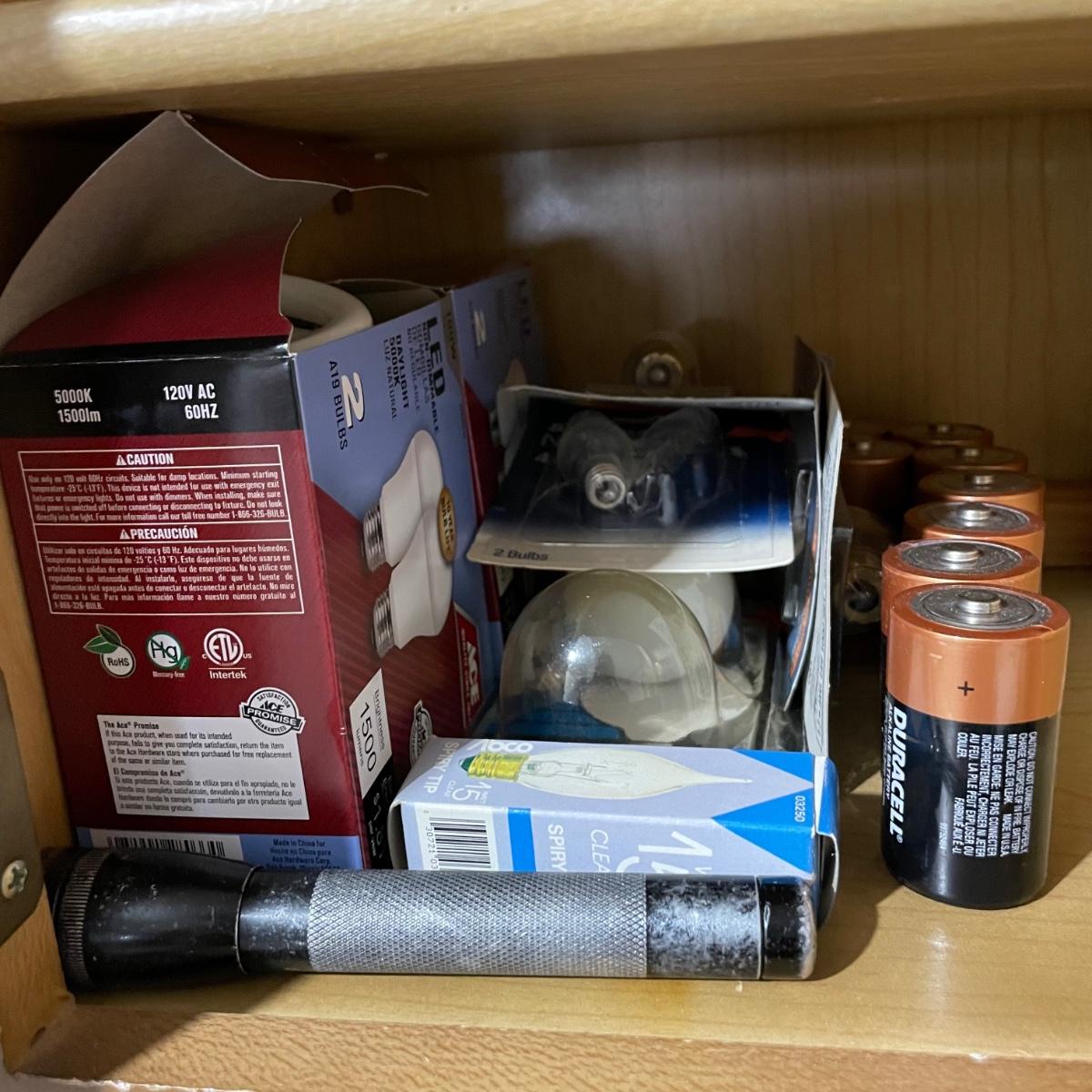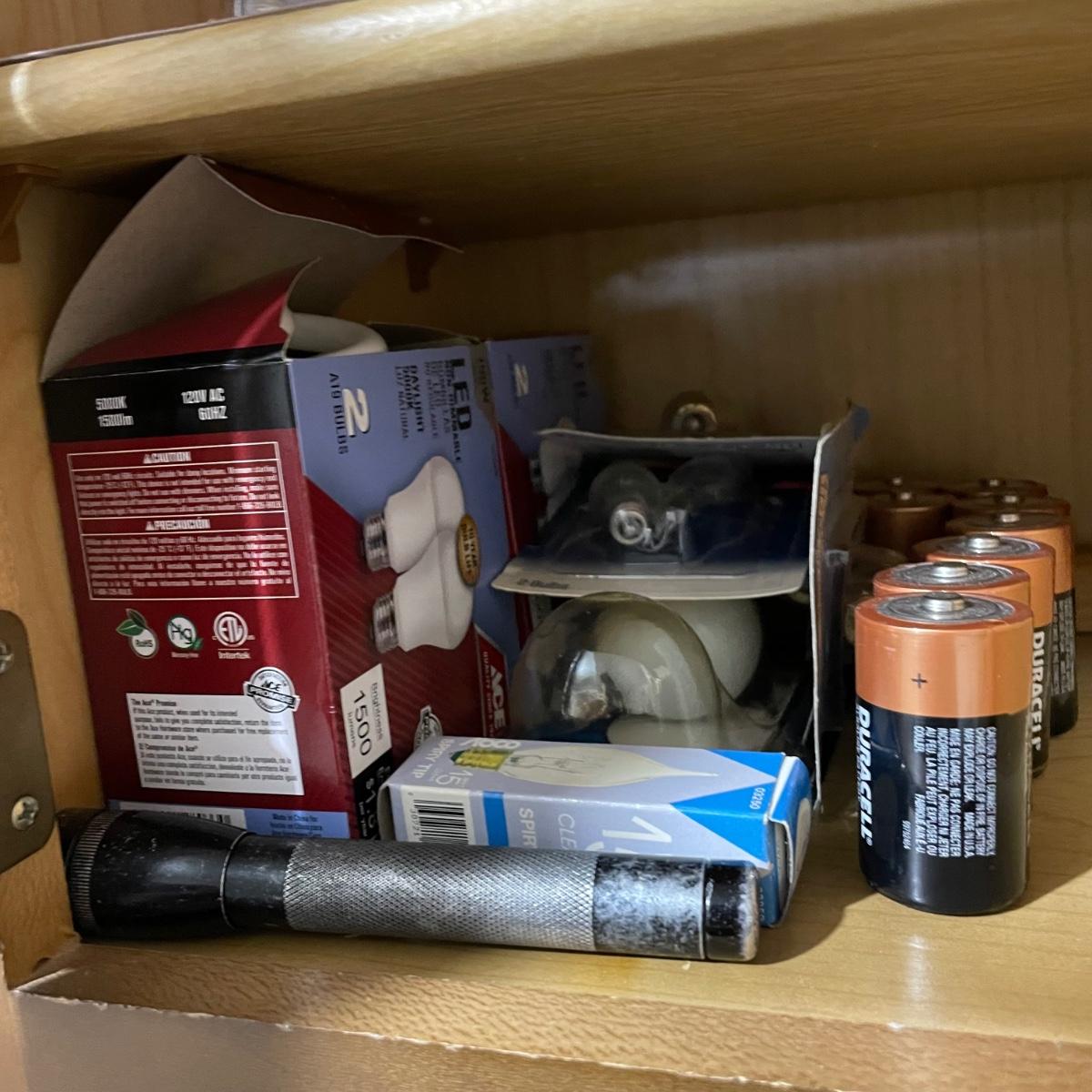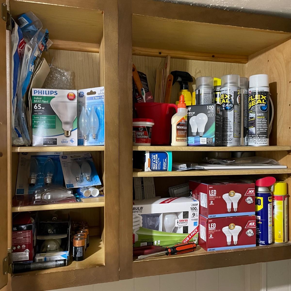 LOT 227G: All Contents Of Cabinet! Lightbulbs, Sprays, Glues & More