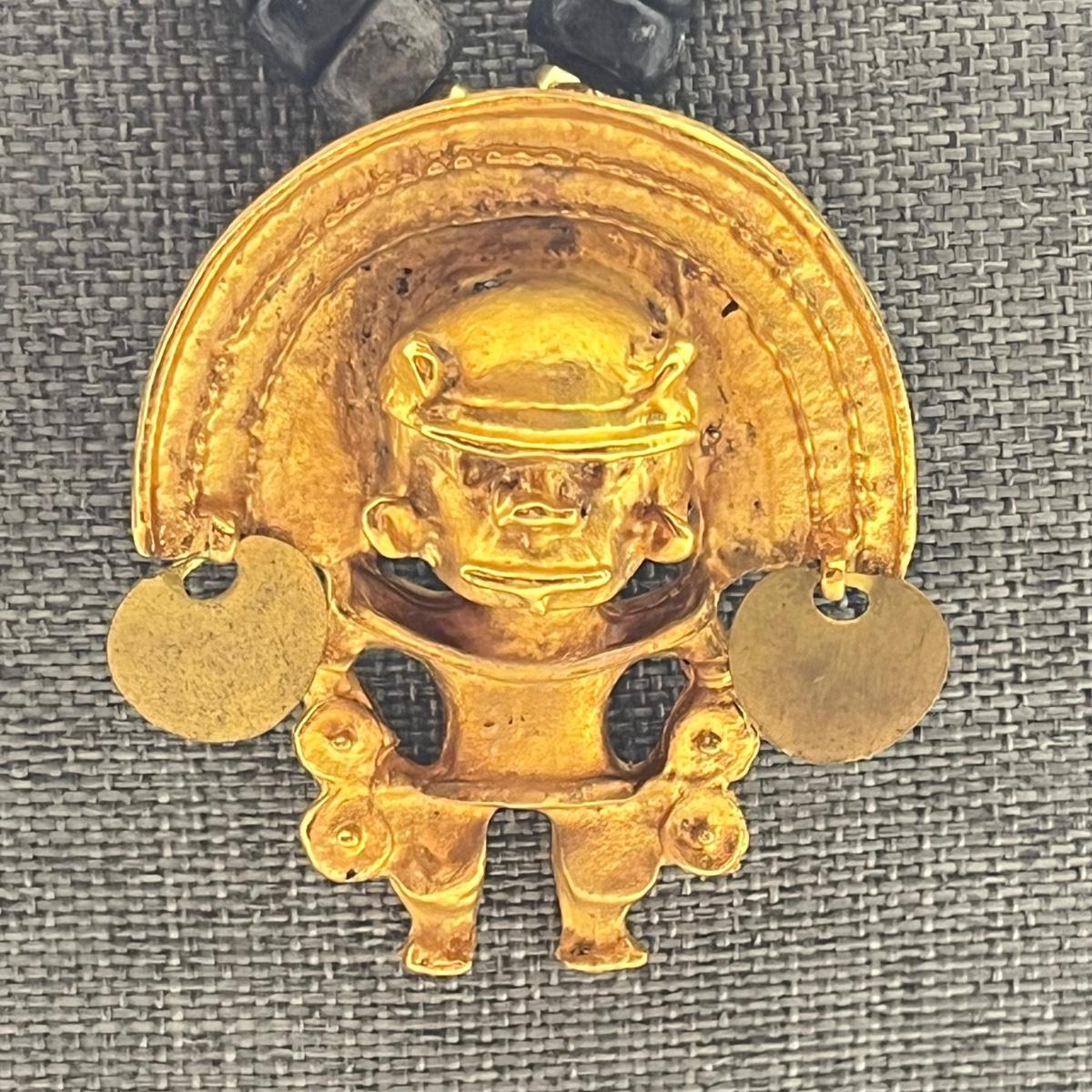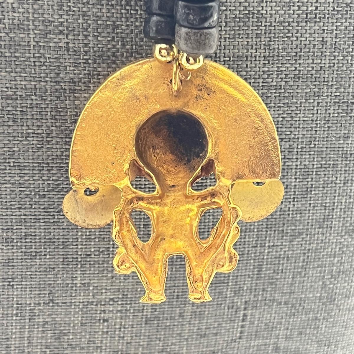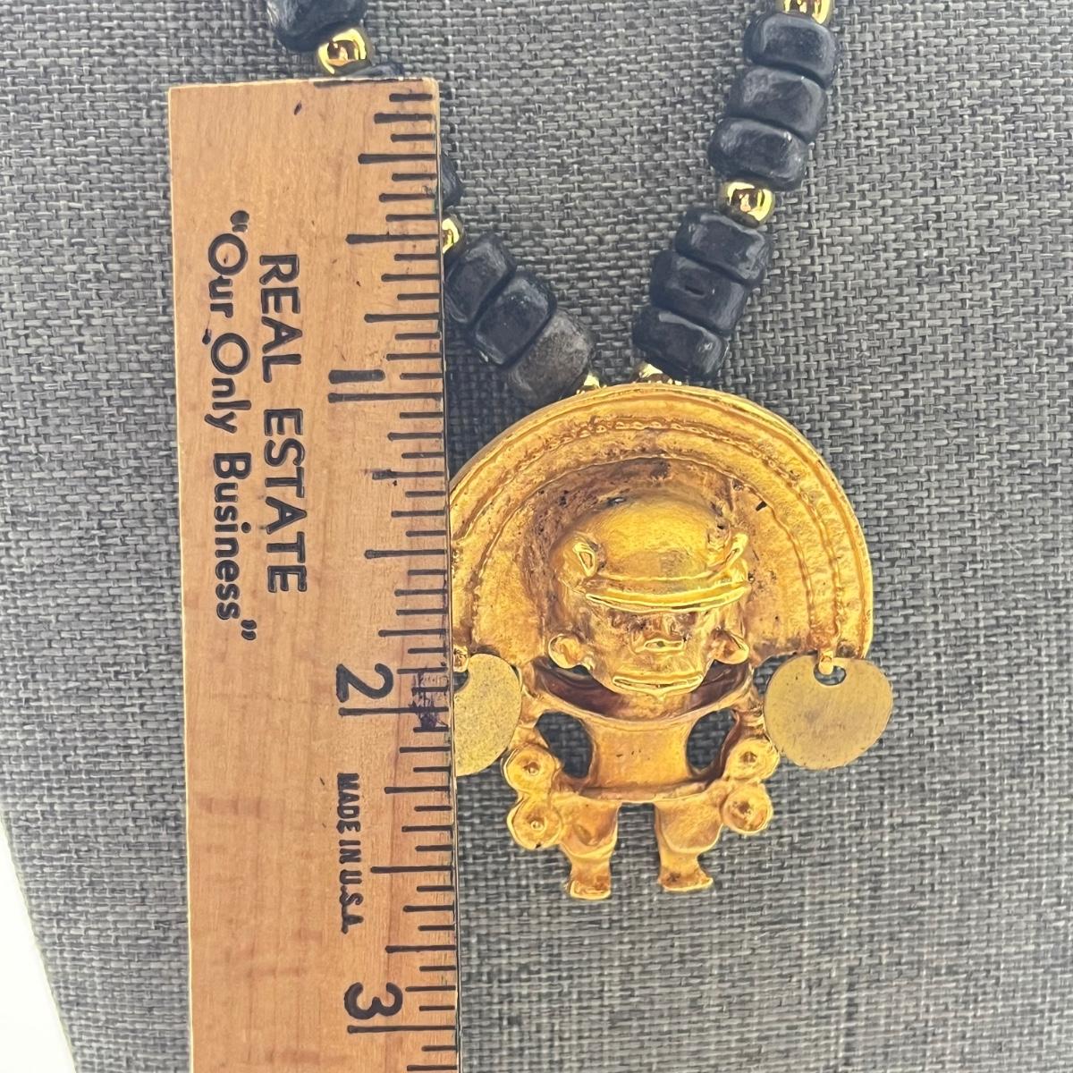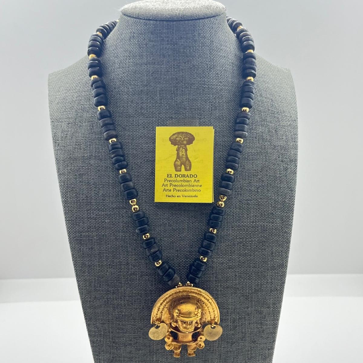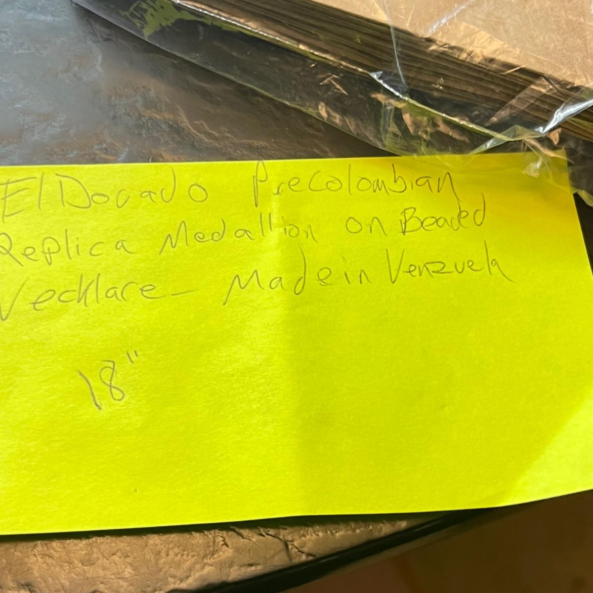 LOT 237: El Dorado Pre-Columbian Replica Medallion on Beaded Necklace - 18”