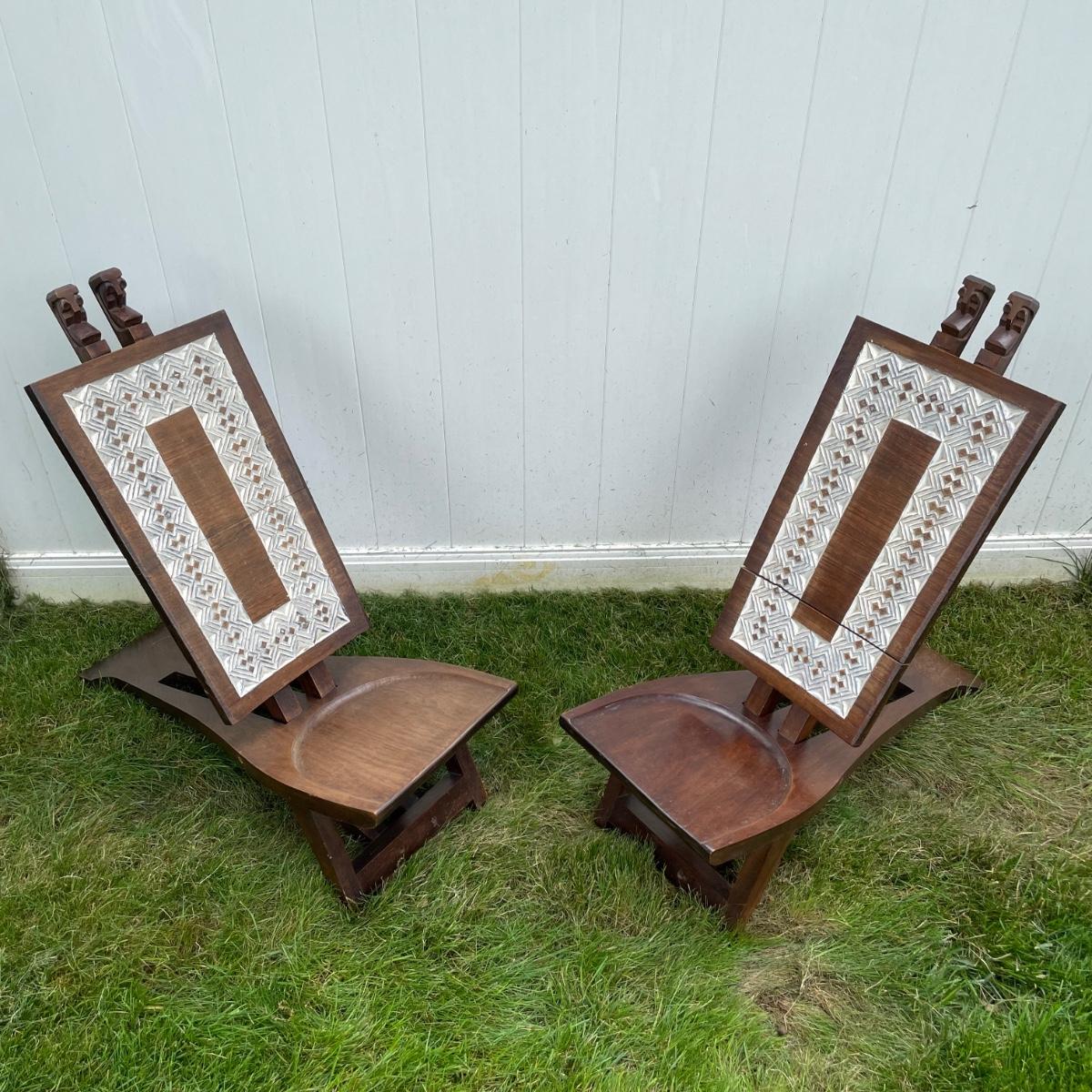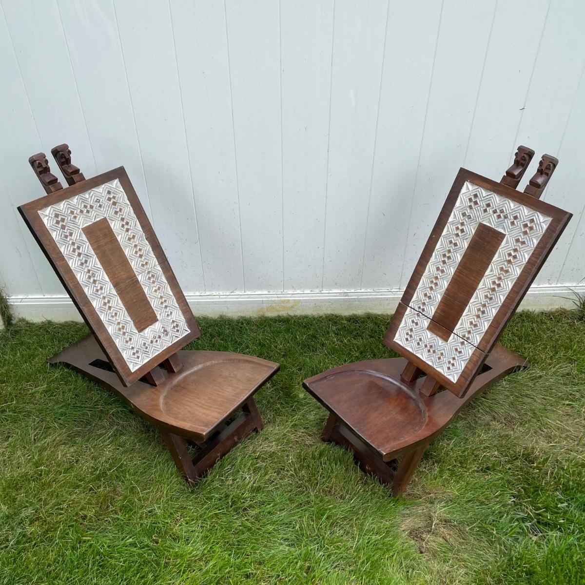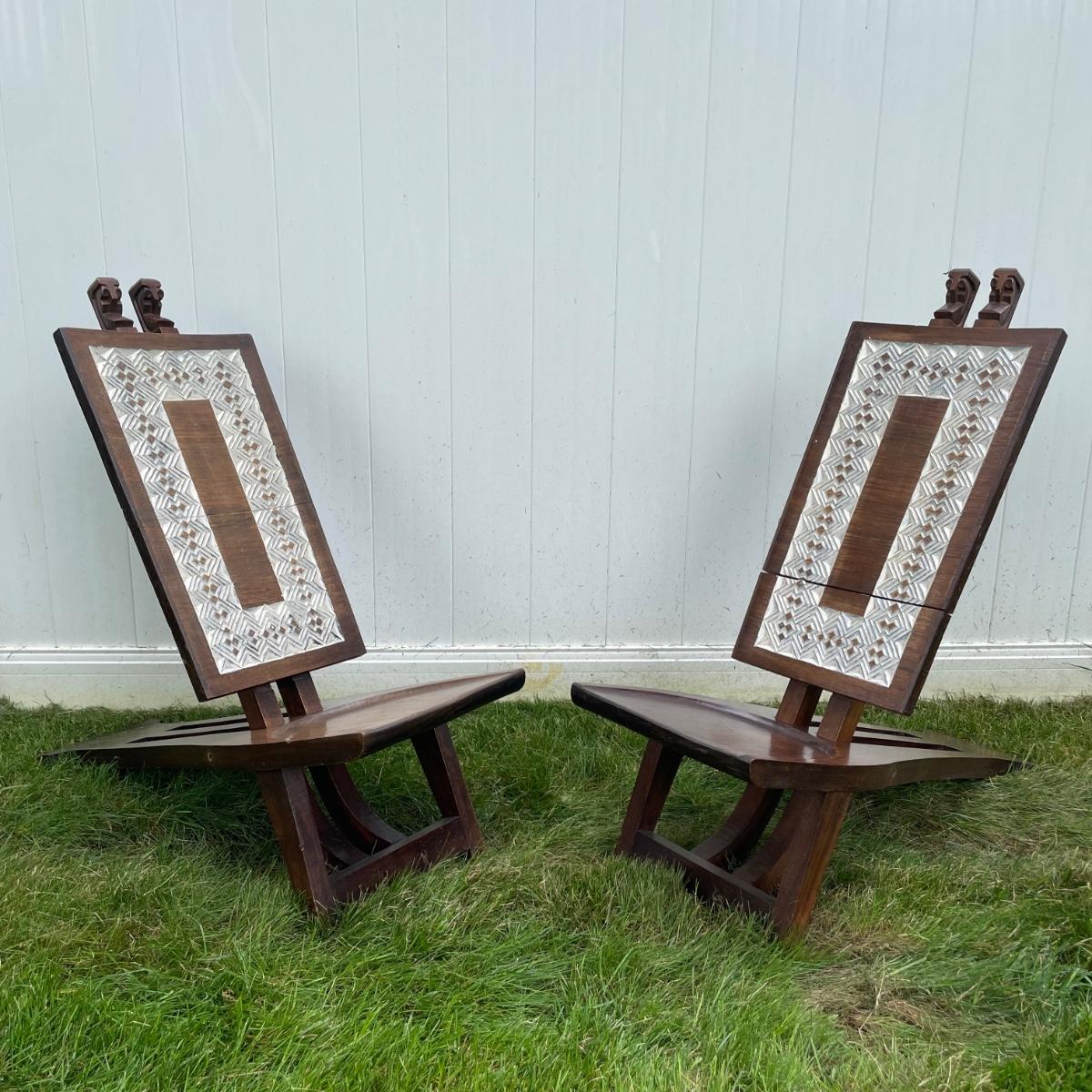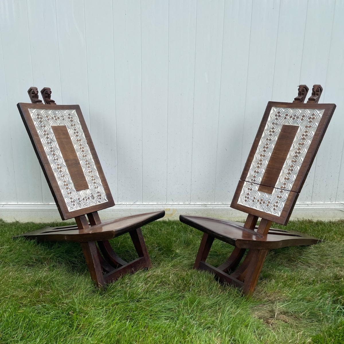 LOT 8L: Vintage South African Hand Carved Mahogany Chairs