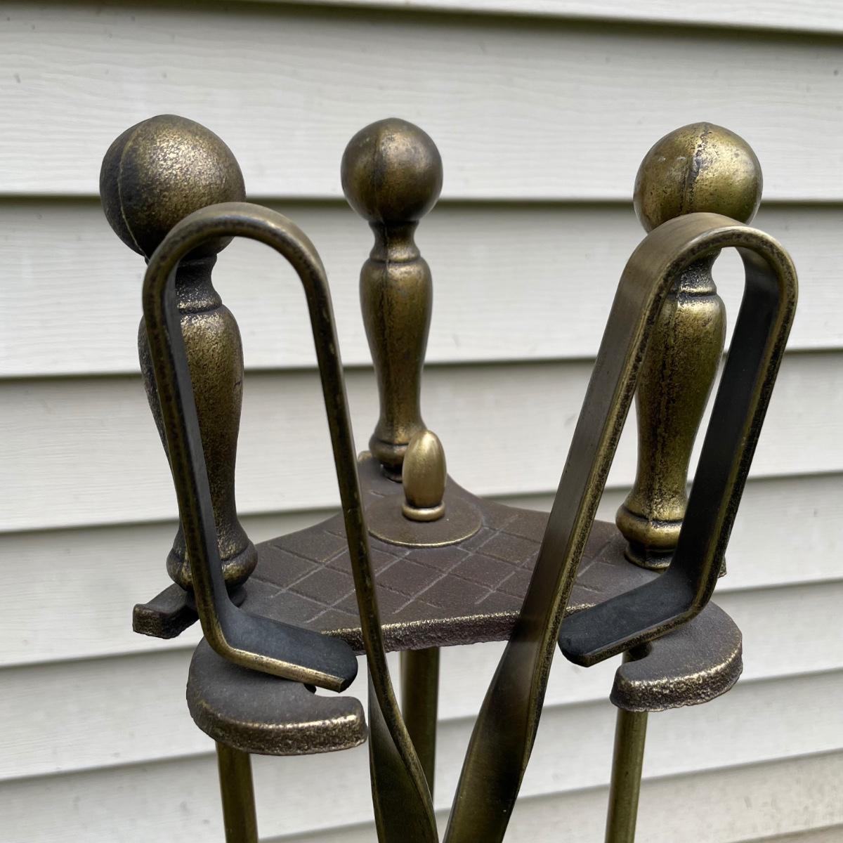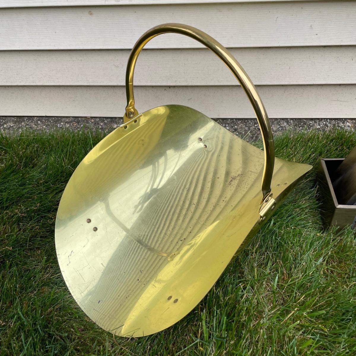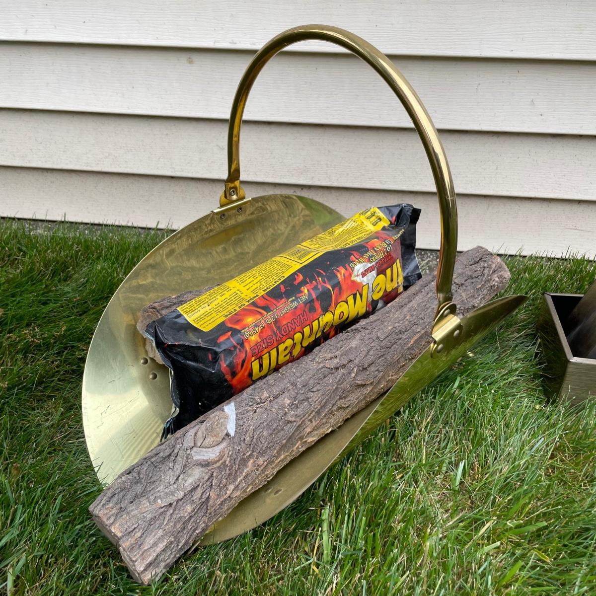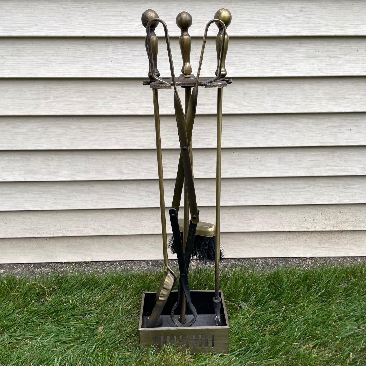 LOT 17L: Vintage Brass Fireplace Tools & Fire Wood Holder