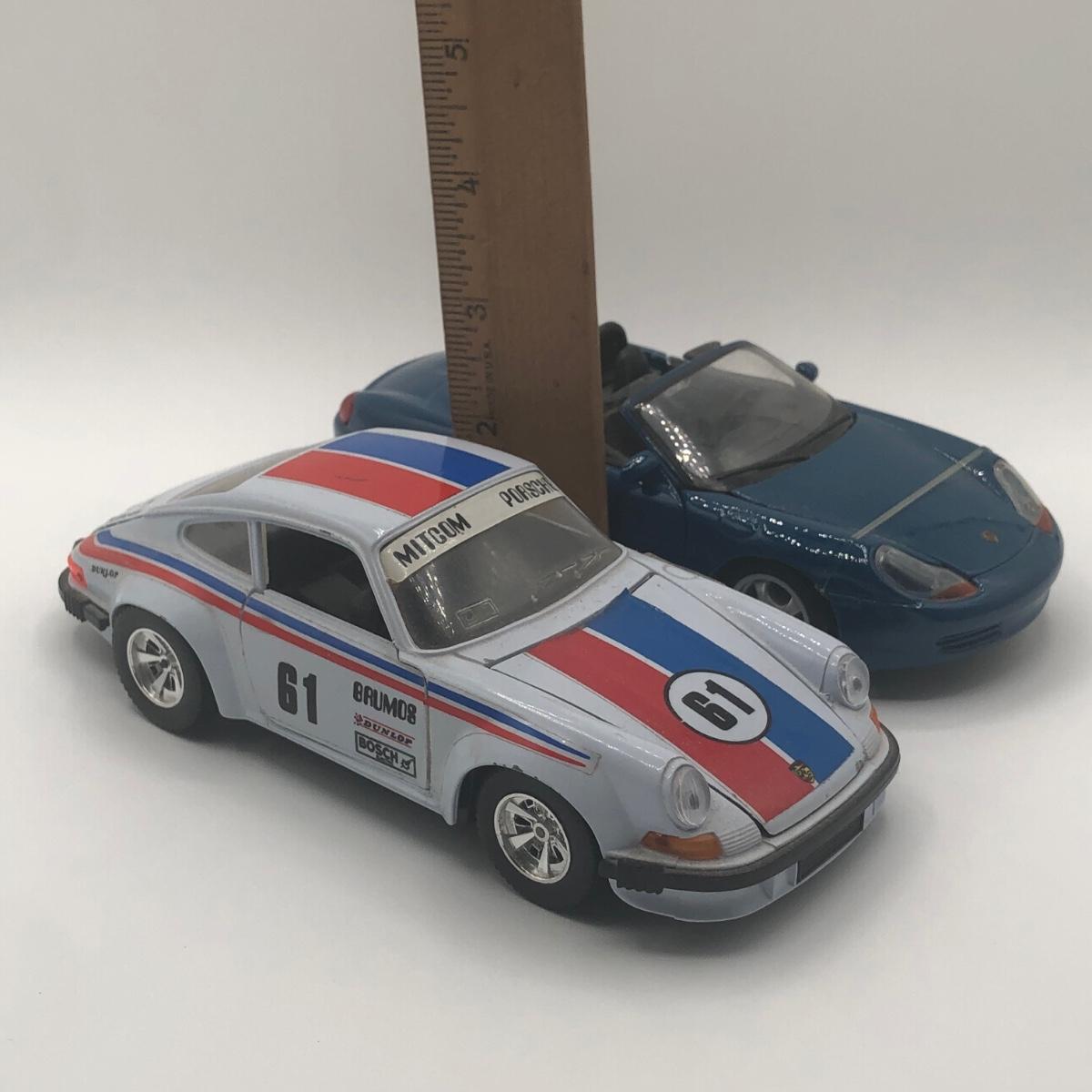 LOT 25L: 1/24 Scale Model Cars: Burago Italy Porsche 911 & Maisto Porsche Boxter