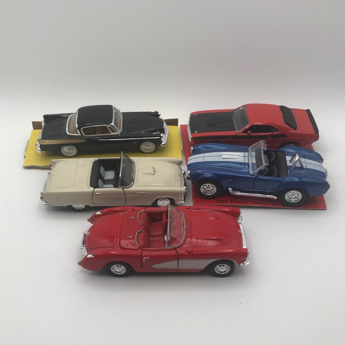 LOT 26L: Model Cars - Welly 1957 Chevrolet Corvette, Welly 1956 Ford Thunderbird, 1965 Shelby Cobra 427 S/C, 1970 Dodge Challenger T/A & More