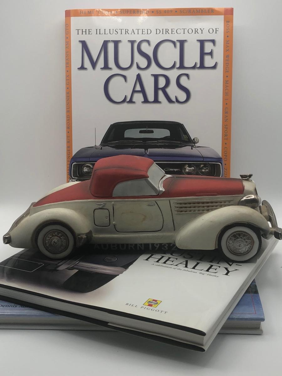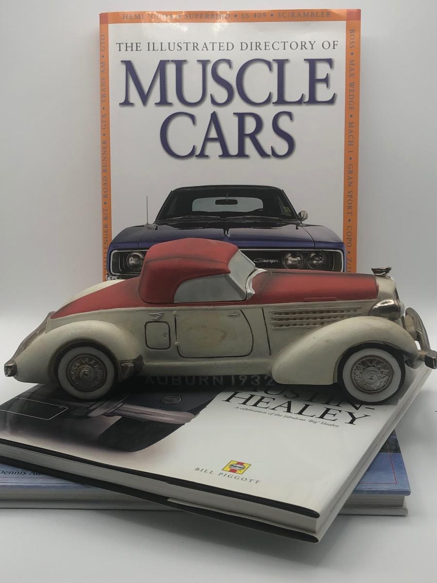 LOT 35L: Vintage 1978 Ezra Brooks Collectors Series Porcelain Auburn 1932 Car Decanter & Car Books