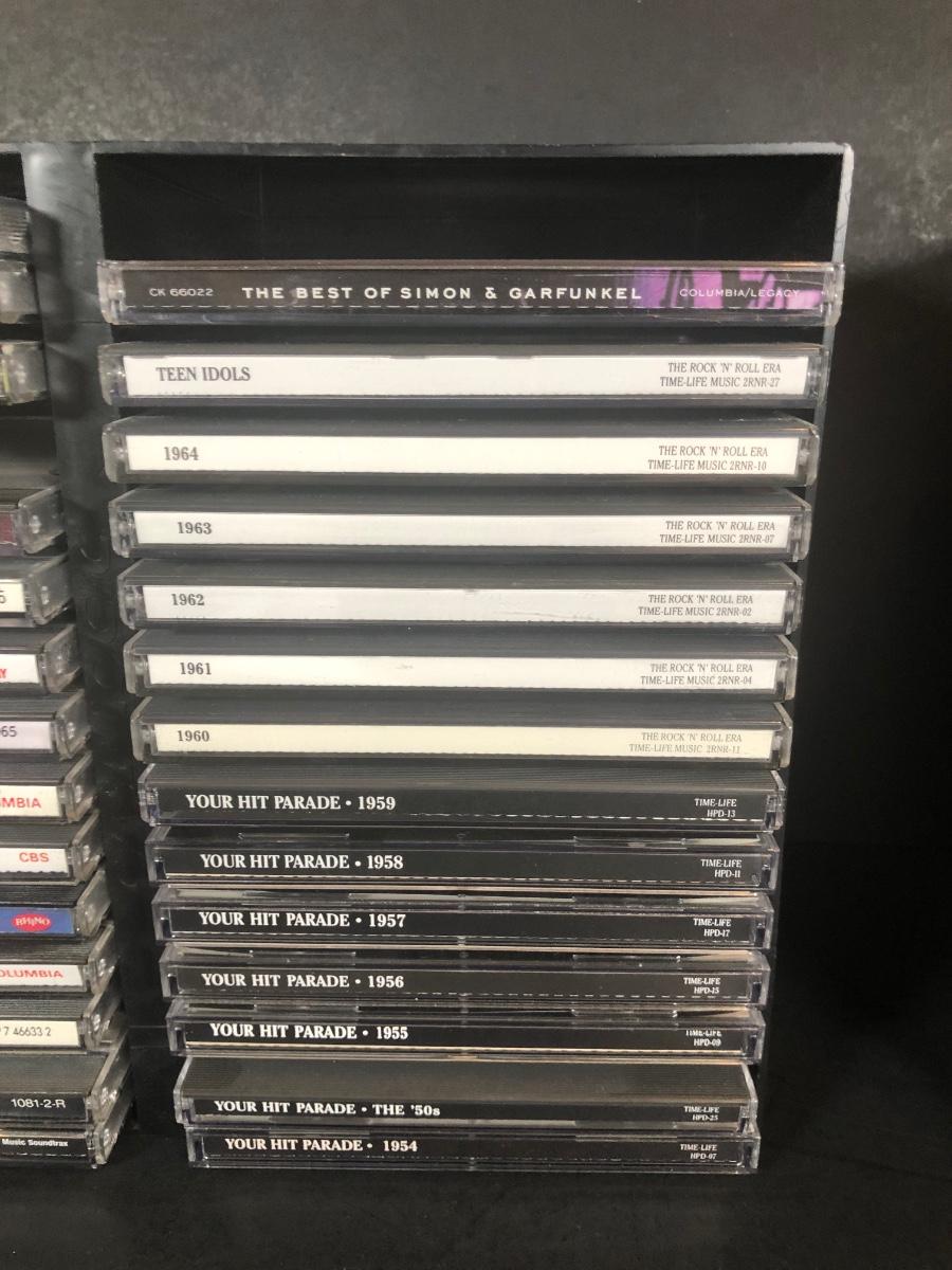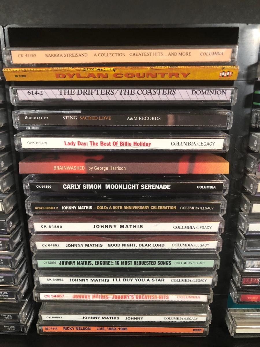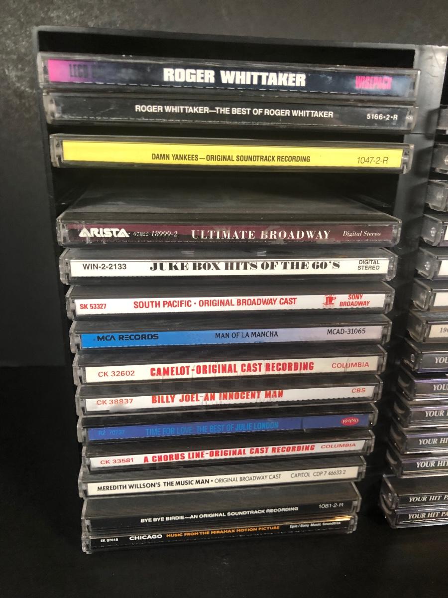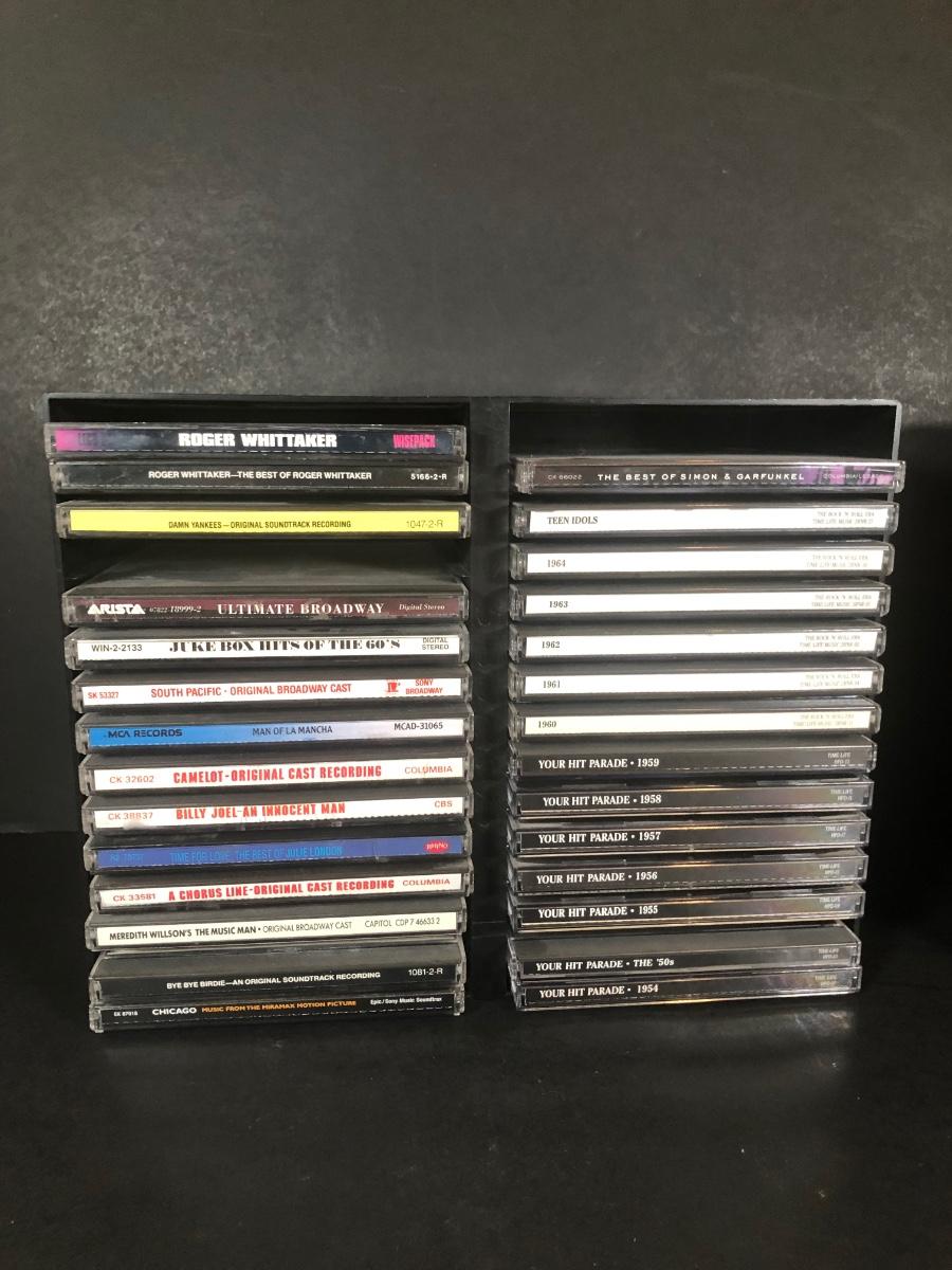 LOT 39L: Collection of CDs w/ 2 CD Racks - Jimmy Buffett, Andrea Bocceli, Johnny Mathis & More