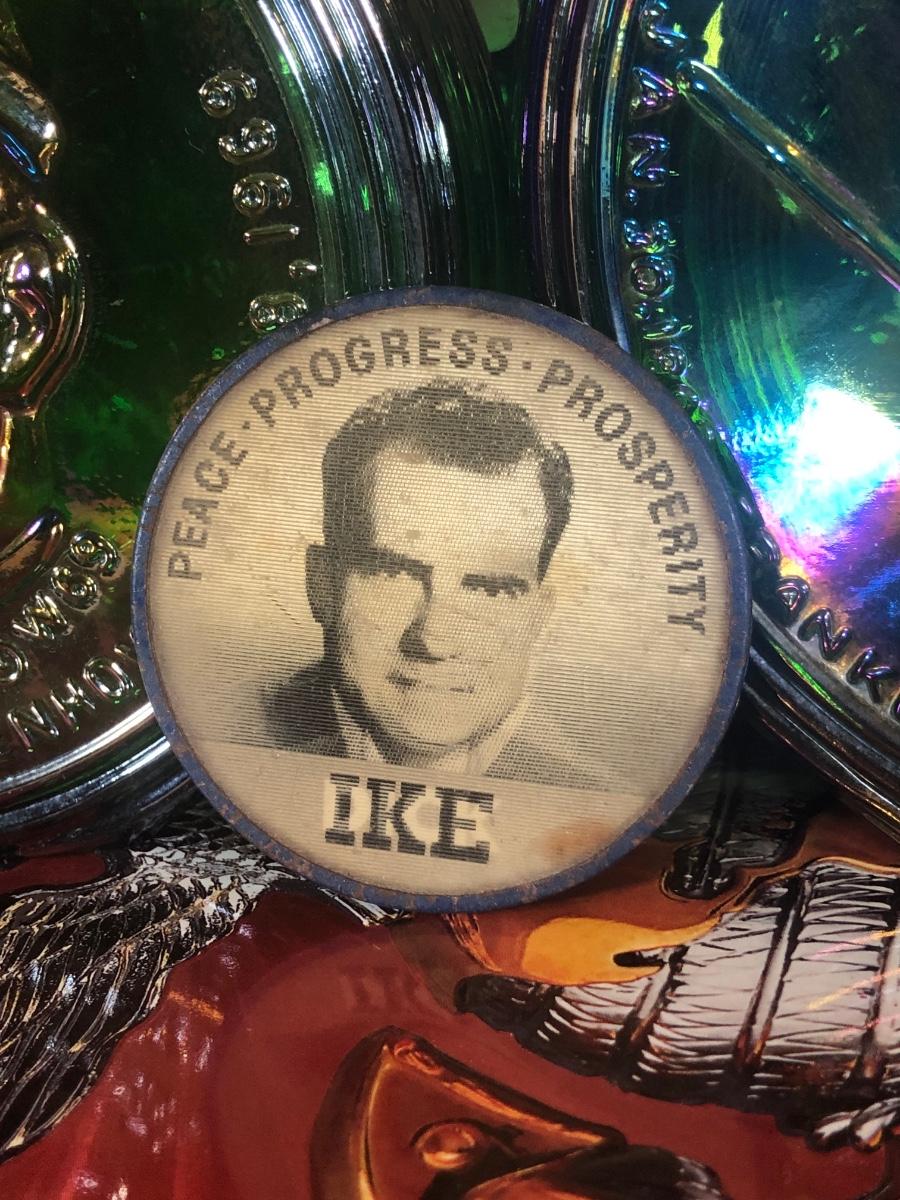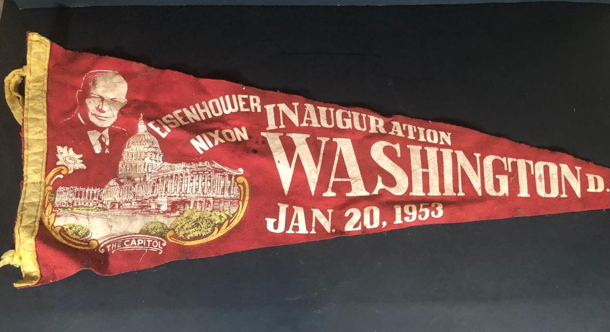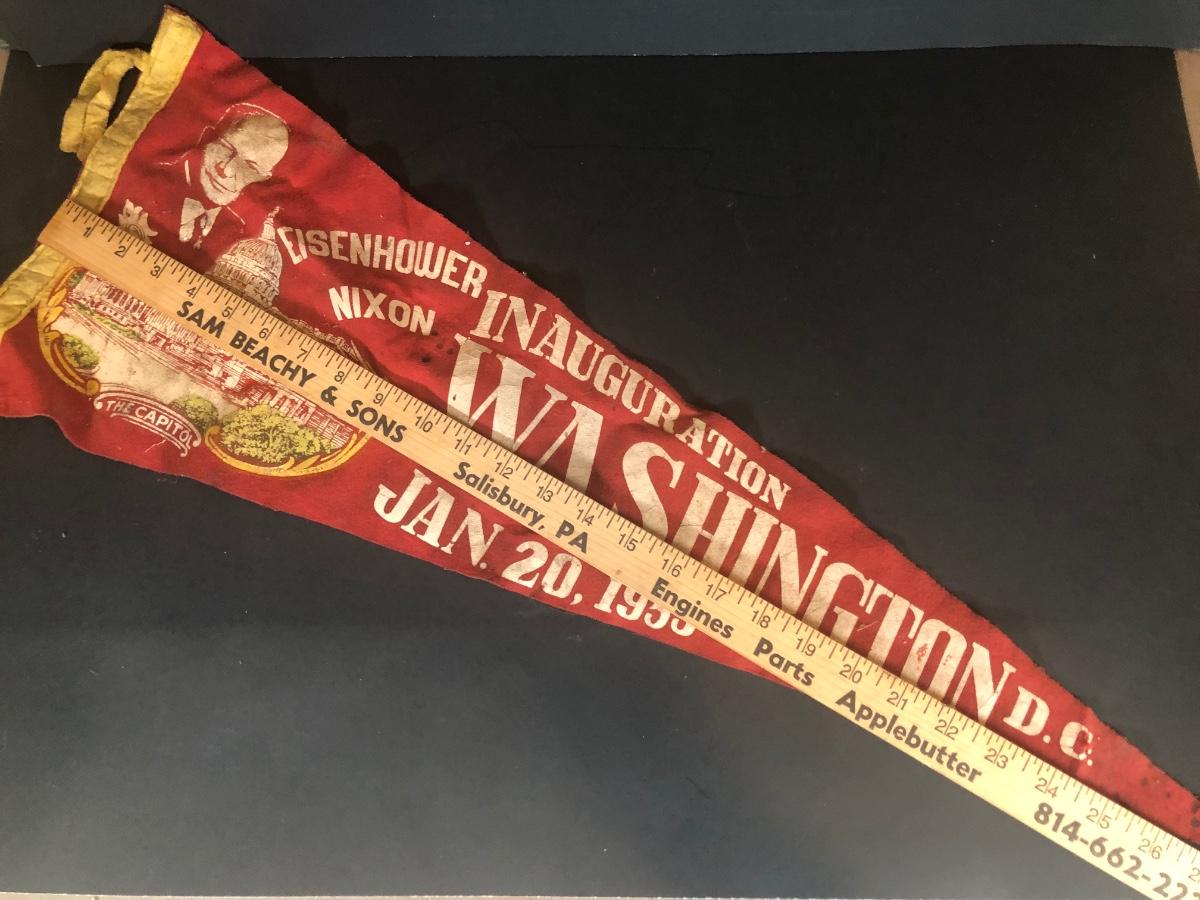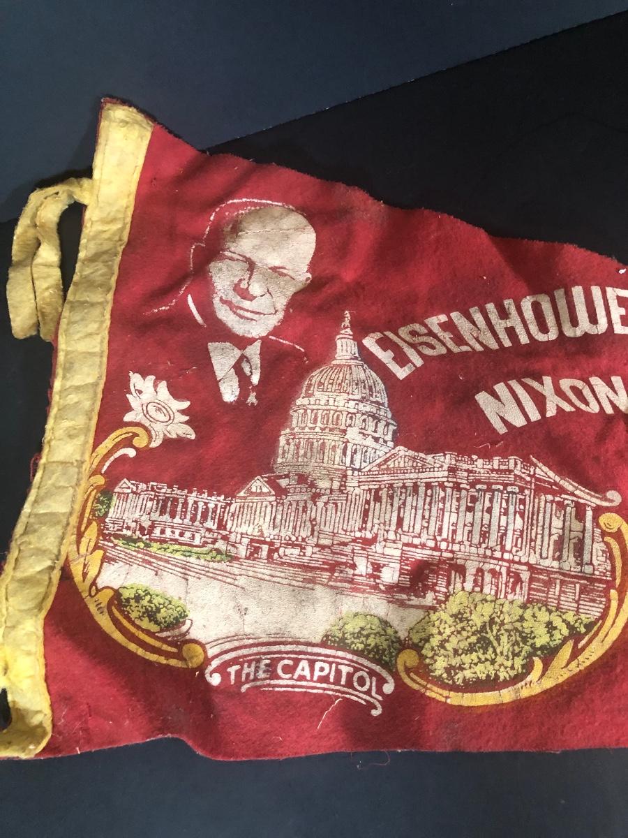 LOT 43L: Dwight Eisenhower First Edition Wheaton Bottle, Franklin Roosevelt First Edition Wheaton Bottle, Eisenhower / Nixon 1953 Inauguration Pennant, USMC History Book & More