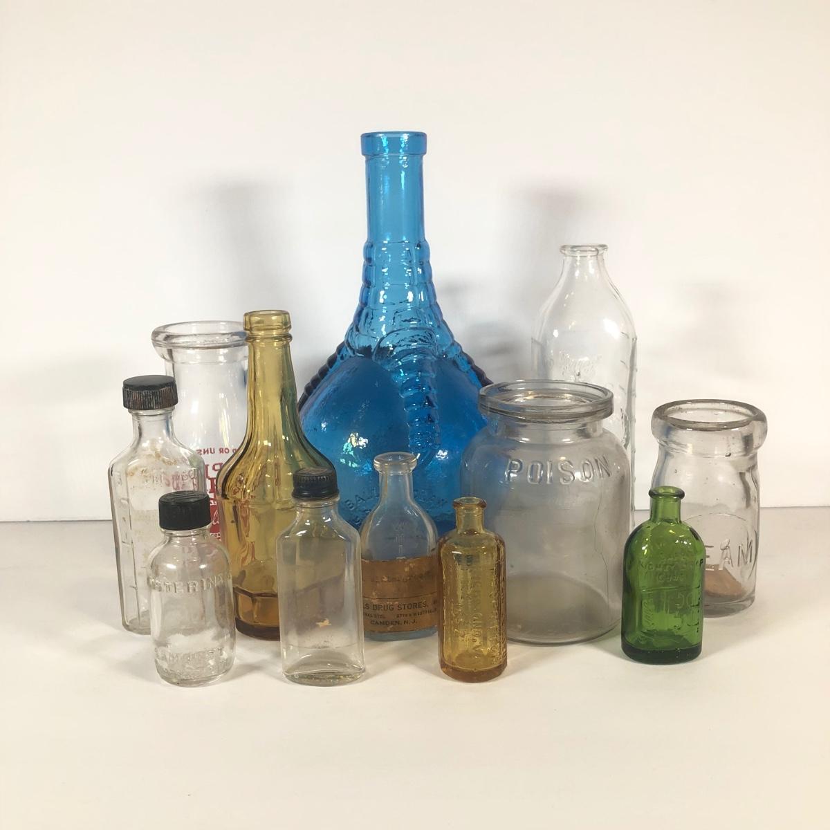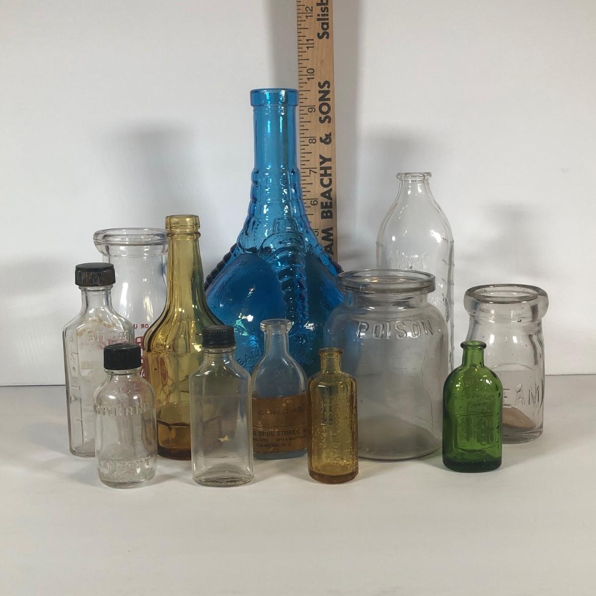 LOT 59L: Vintage Ball and Claw Bitters Wheaton Bottle & Other Vintage Glass Bottles & Jars