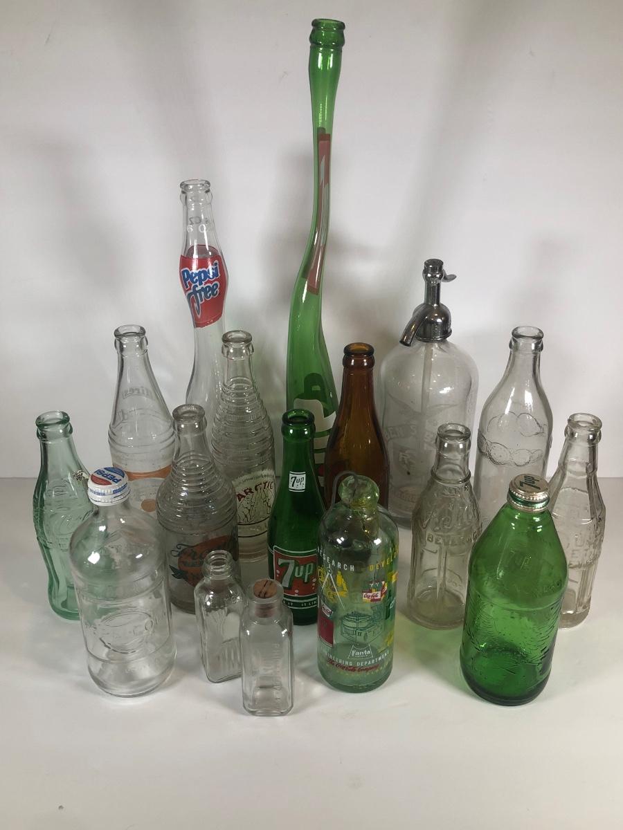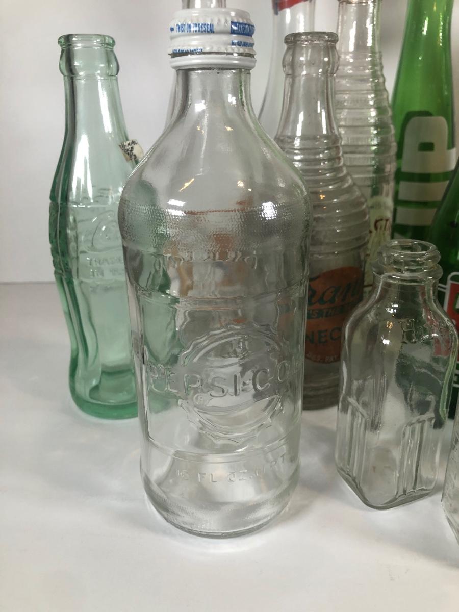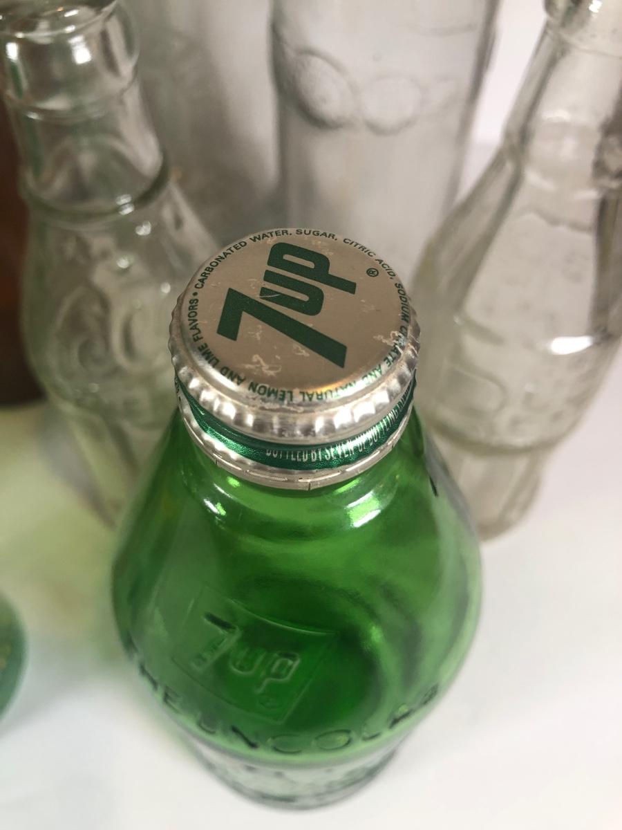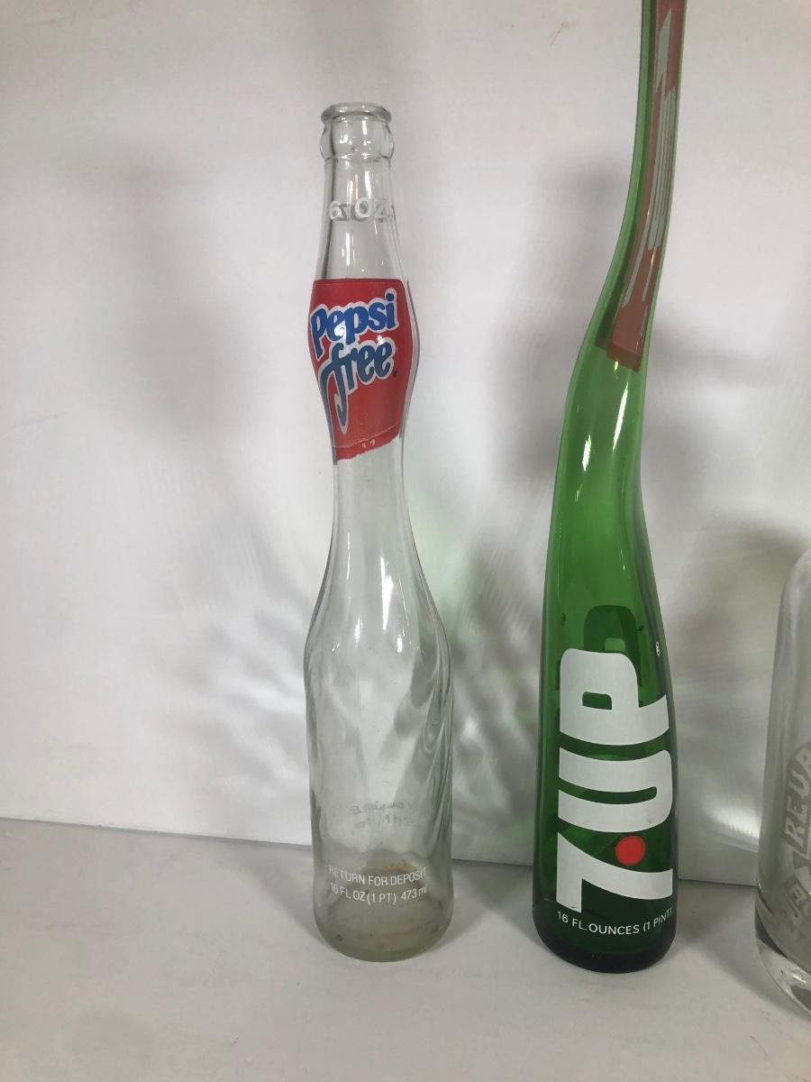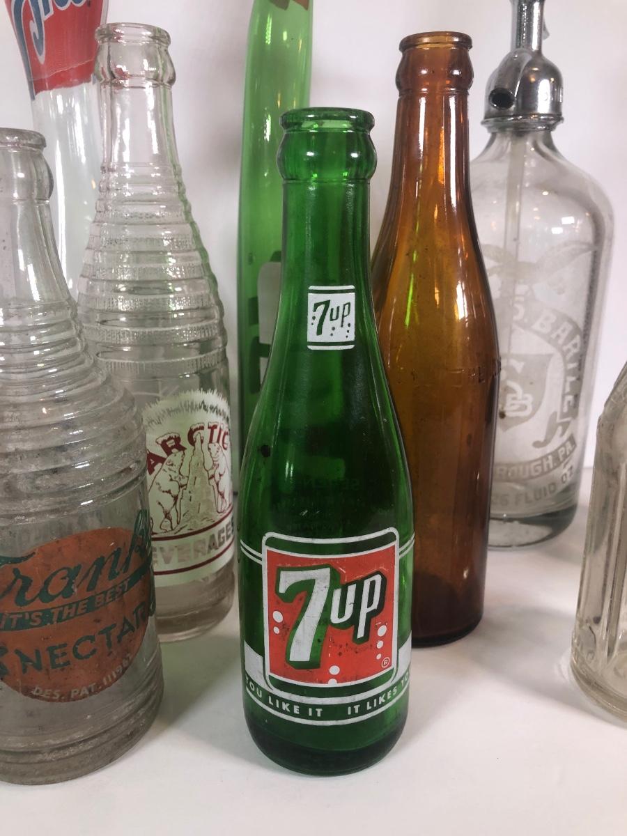 LOT 60L: Vintage Glass Soda Bottles: 7UP, Pepsi Free & More