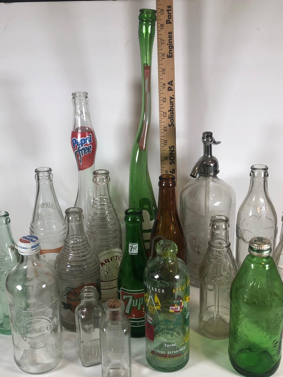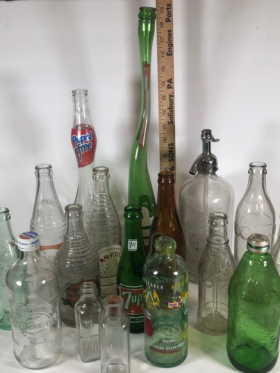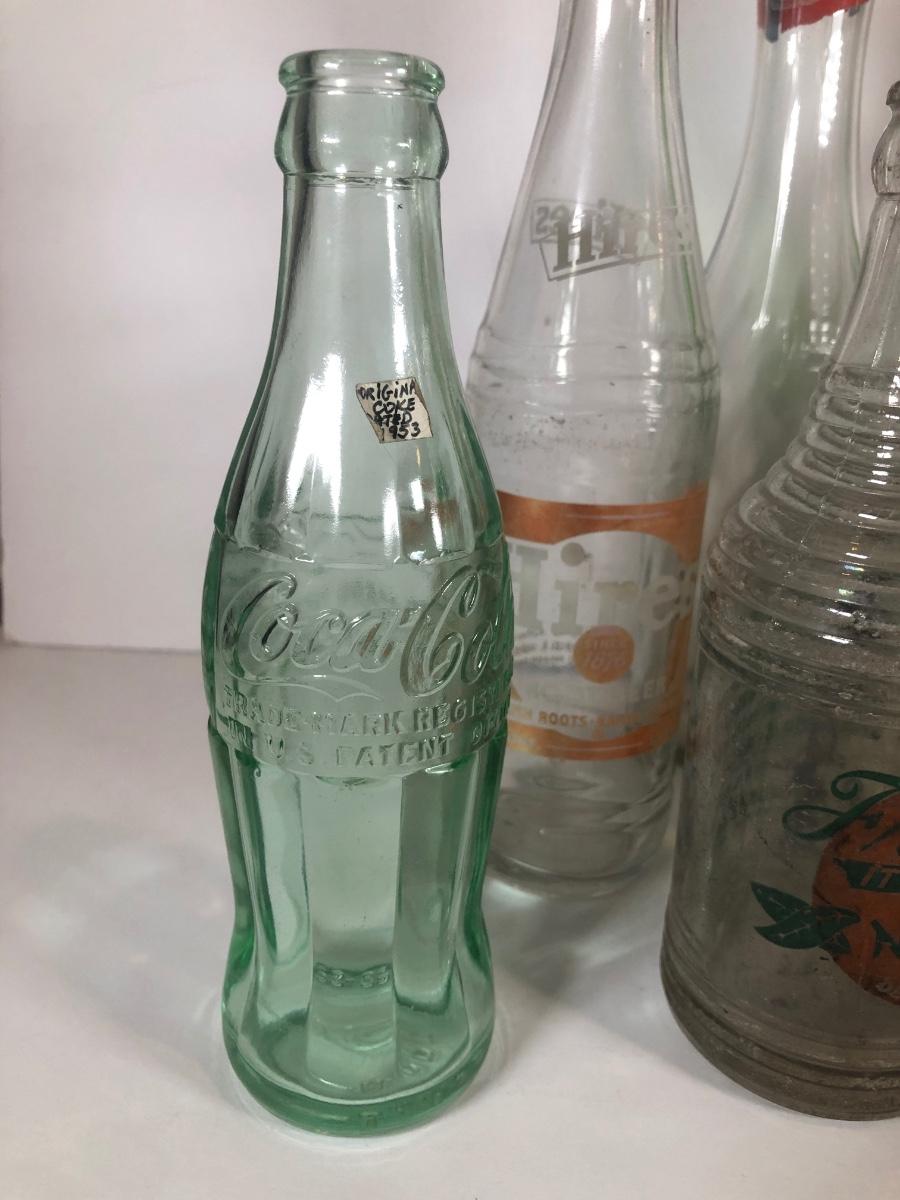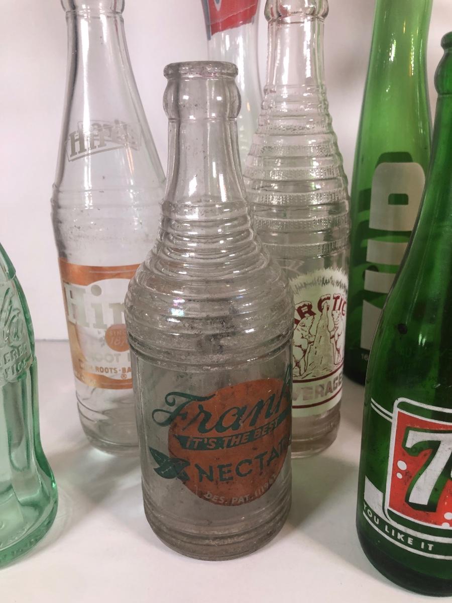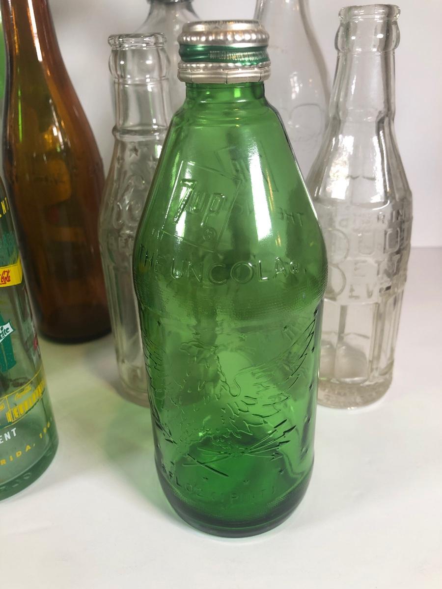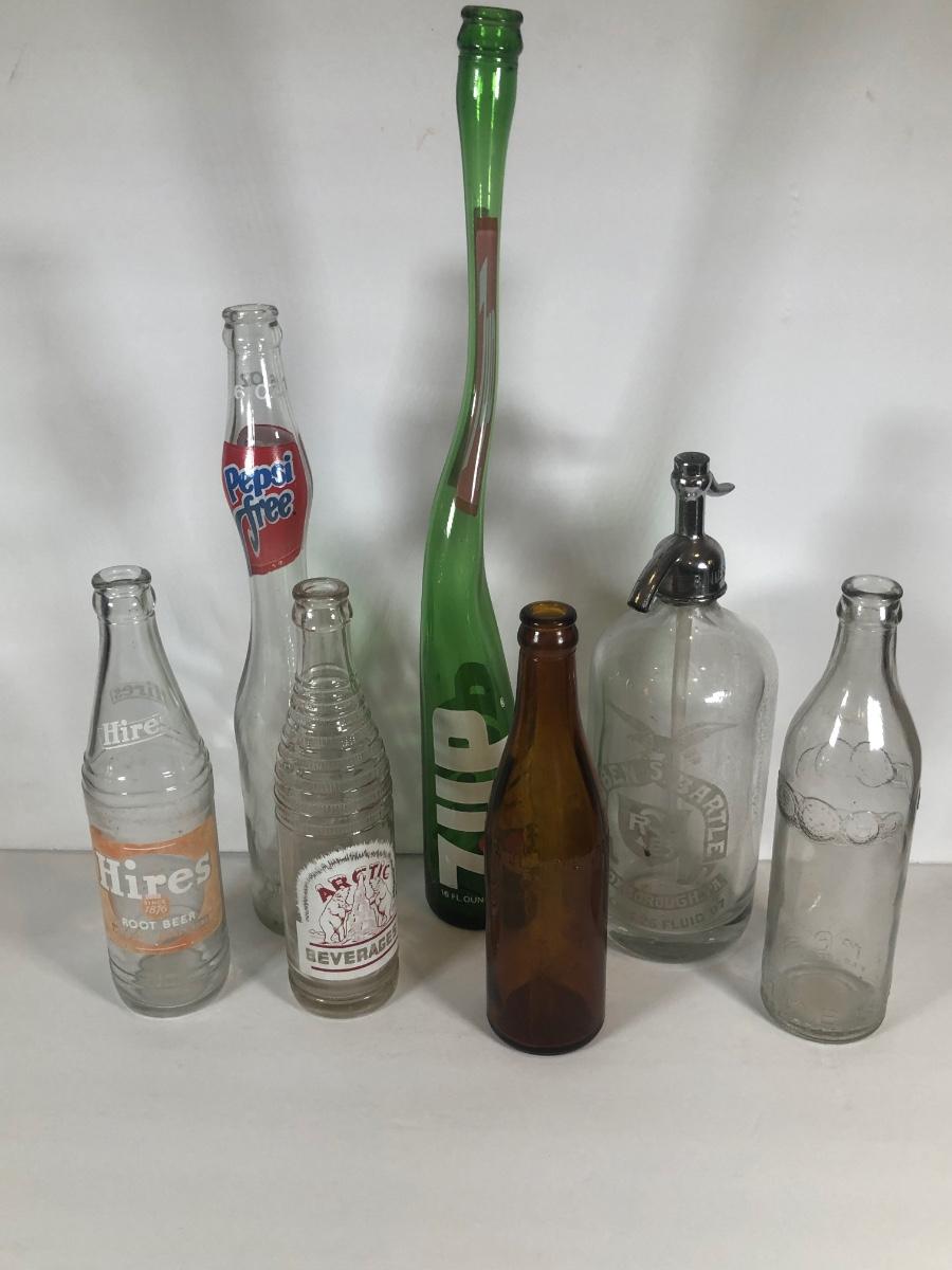 LOT 60L: Vintage Glass Soda Bottles: 7UP, Pepsi Free & More