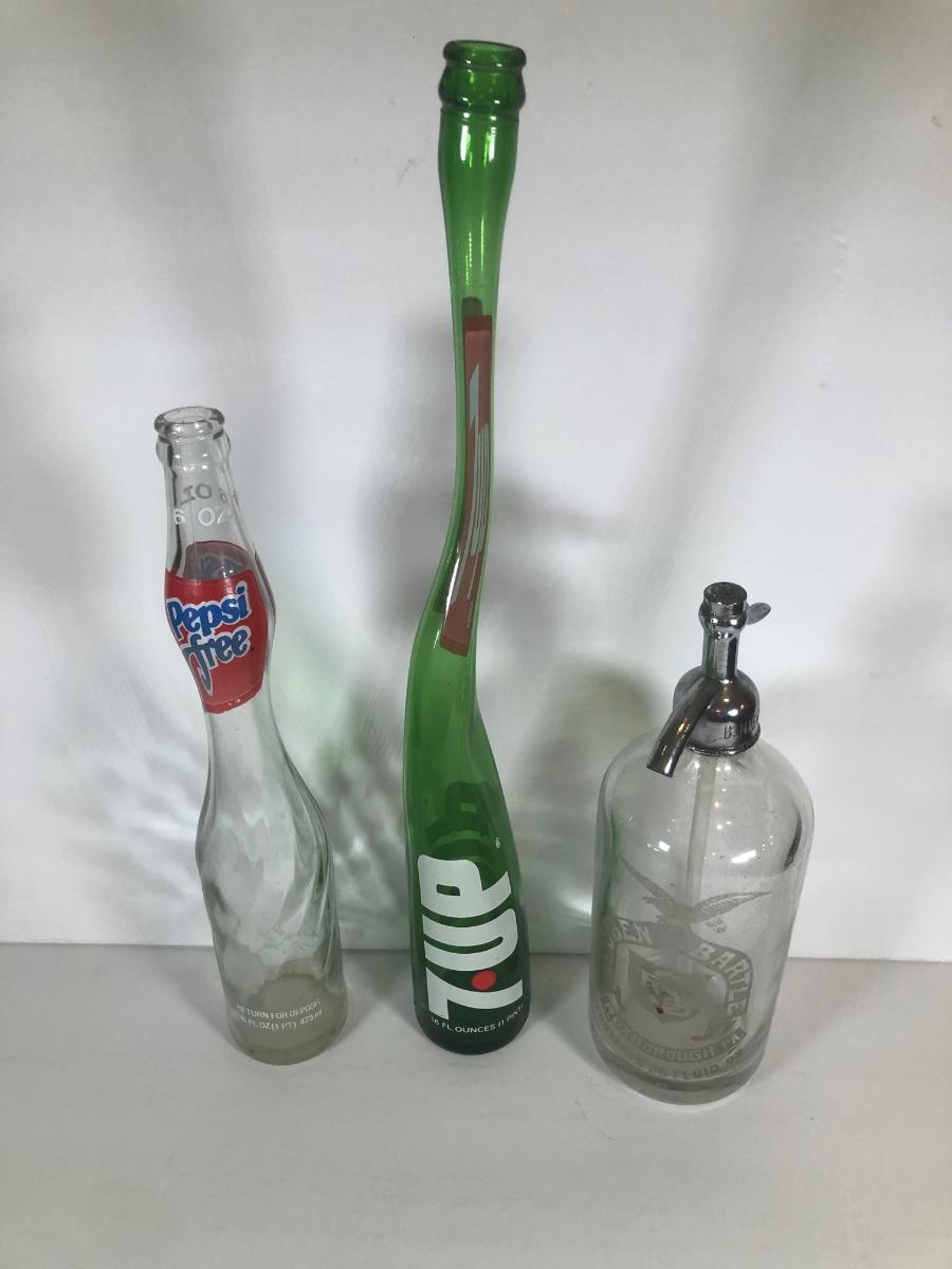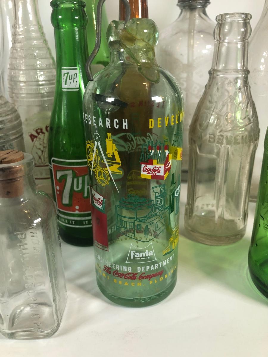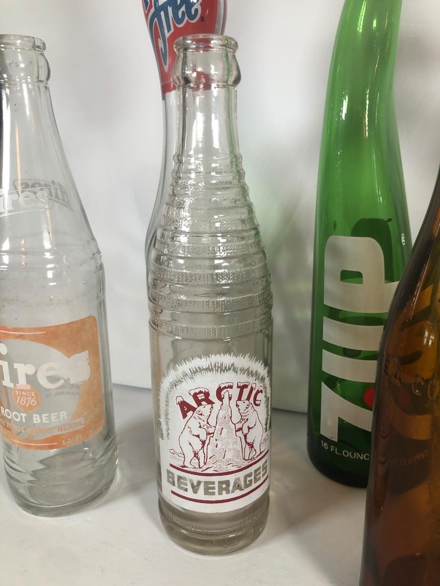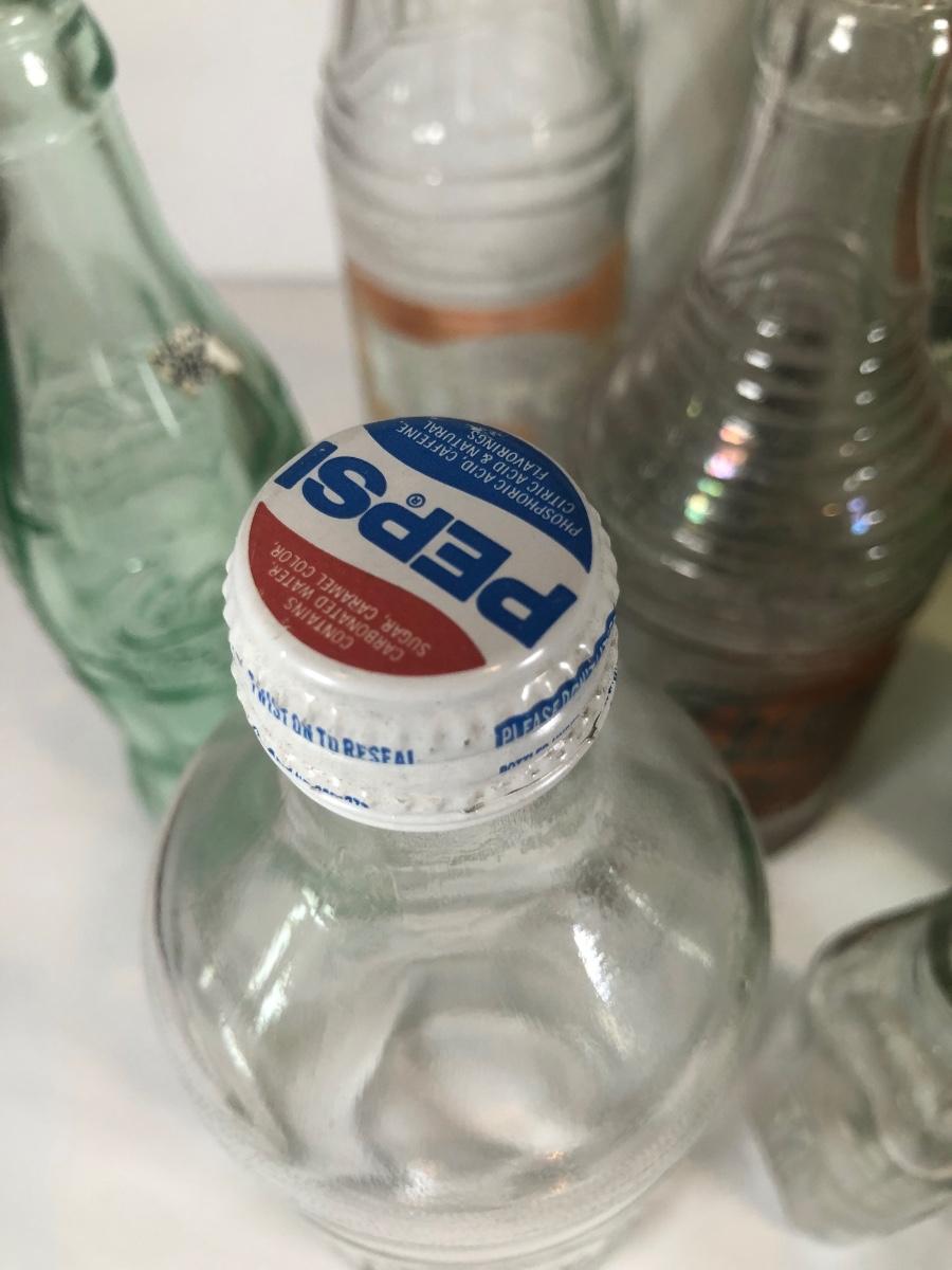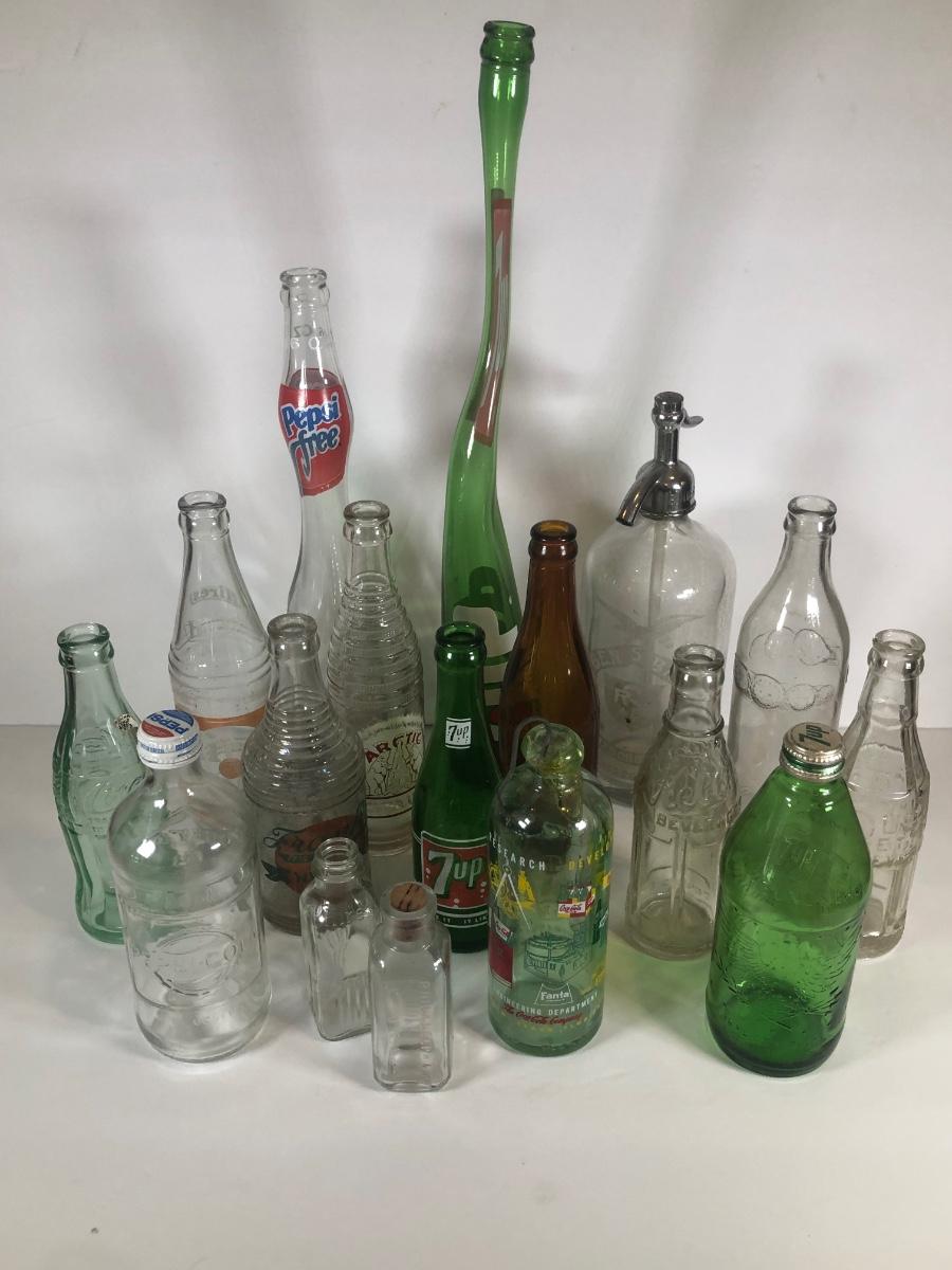 LOT 60L: Vintage Glass Soda Bottles: 7UP, Pepsi Free & More