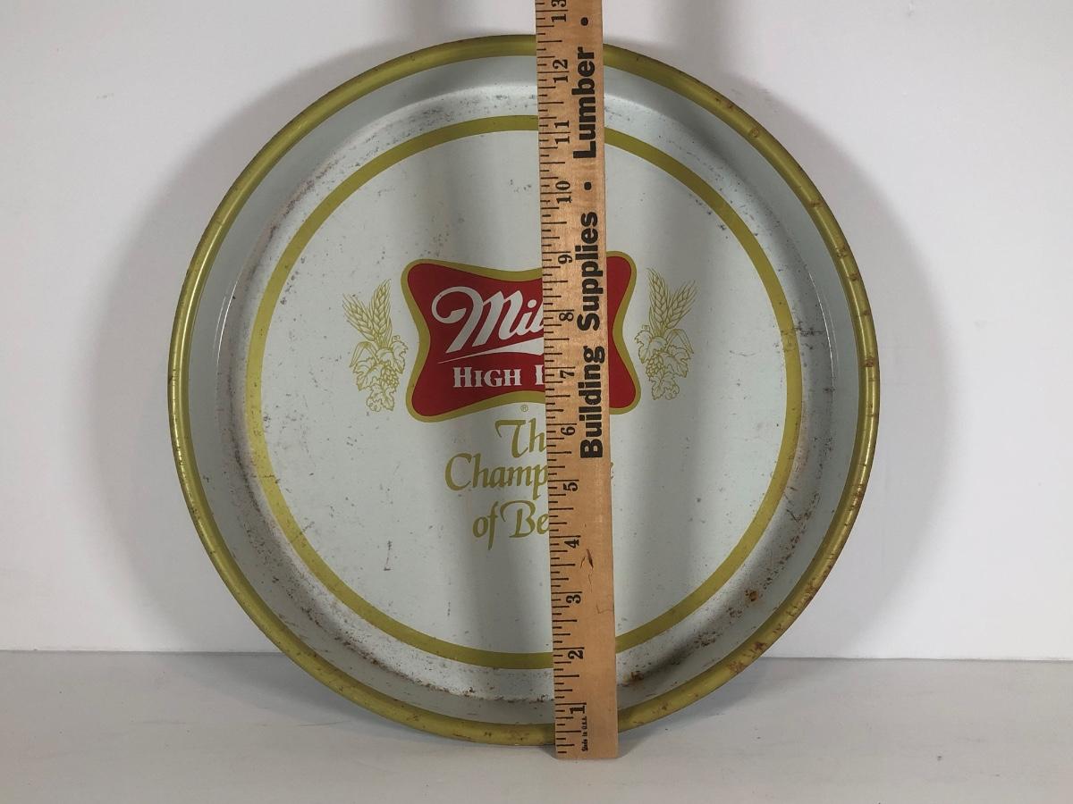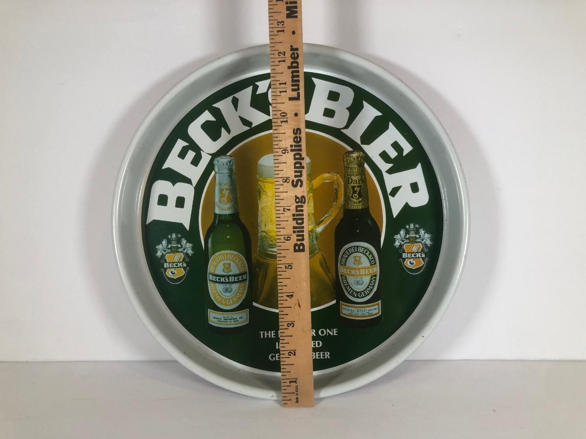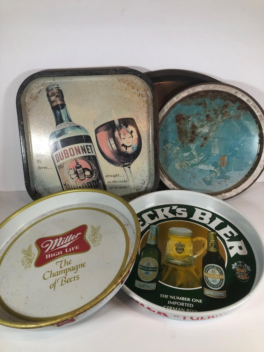 LOT 65L: Vintage Serving Tin Trays: Miller High Life, Beck's Bier, Dubonnet, Bicentennial & Whitbread