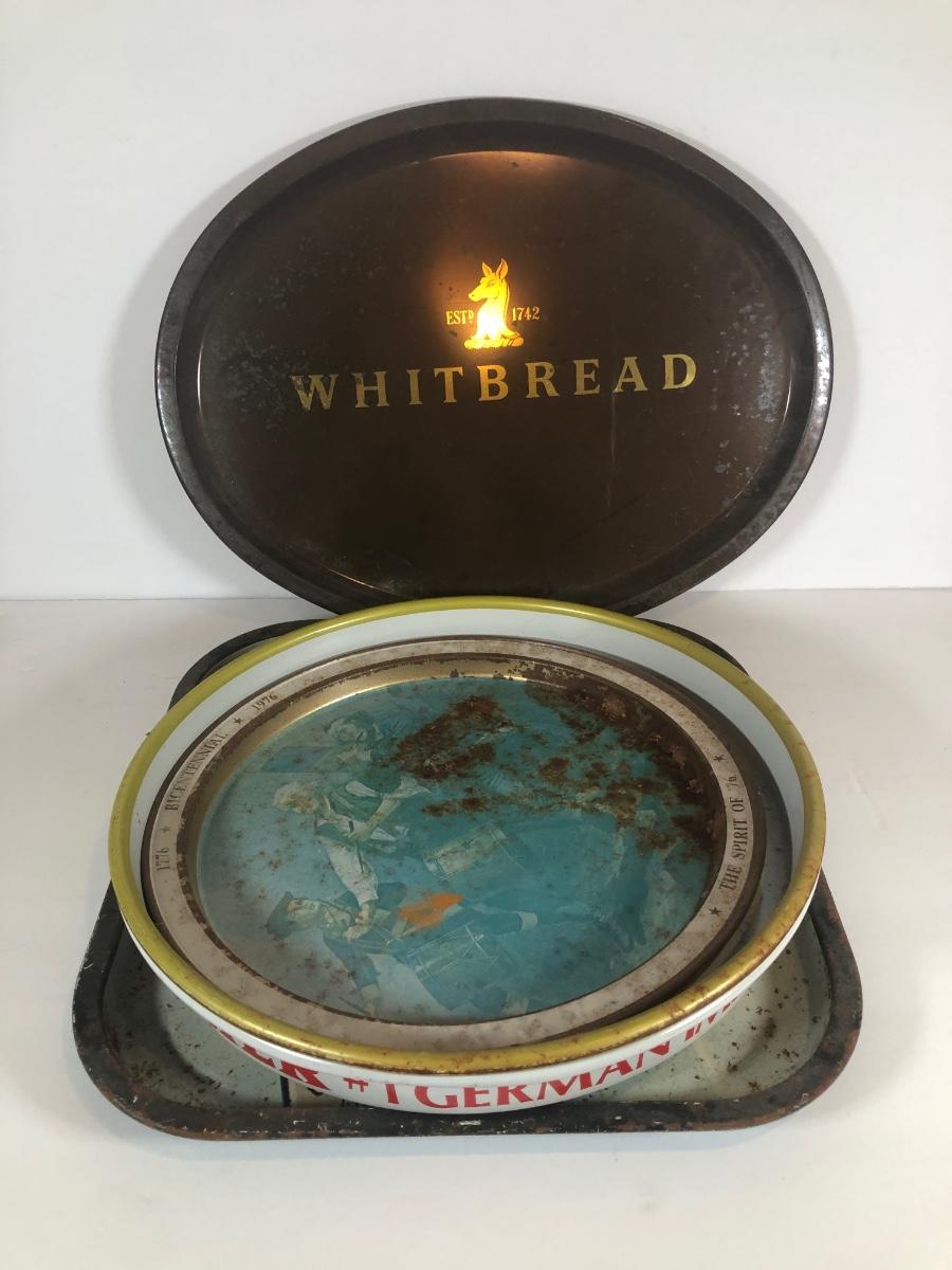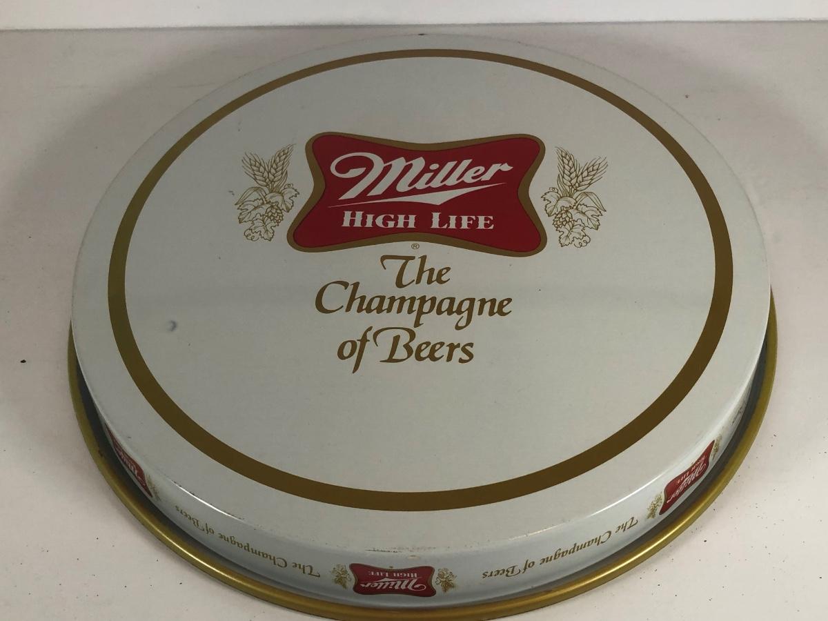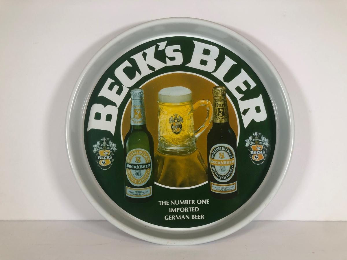 LOT 65L: Vintage Serving Tin Trays: Miller High Life, Beck's Bier, Dubonnet, Bicentennial & Whitbread