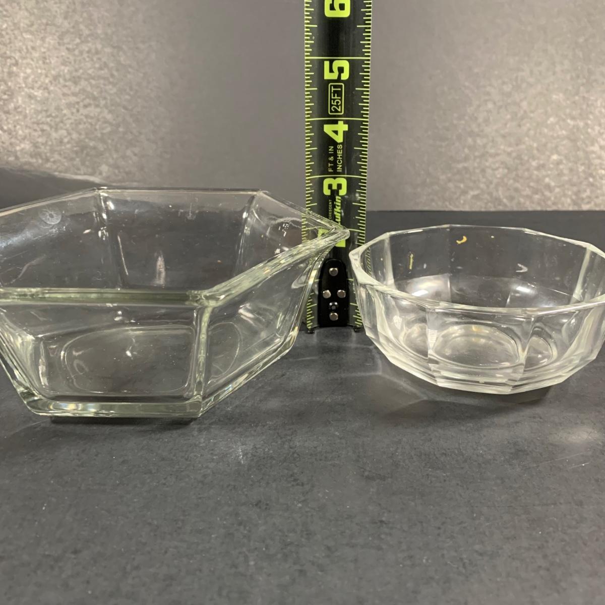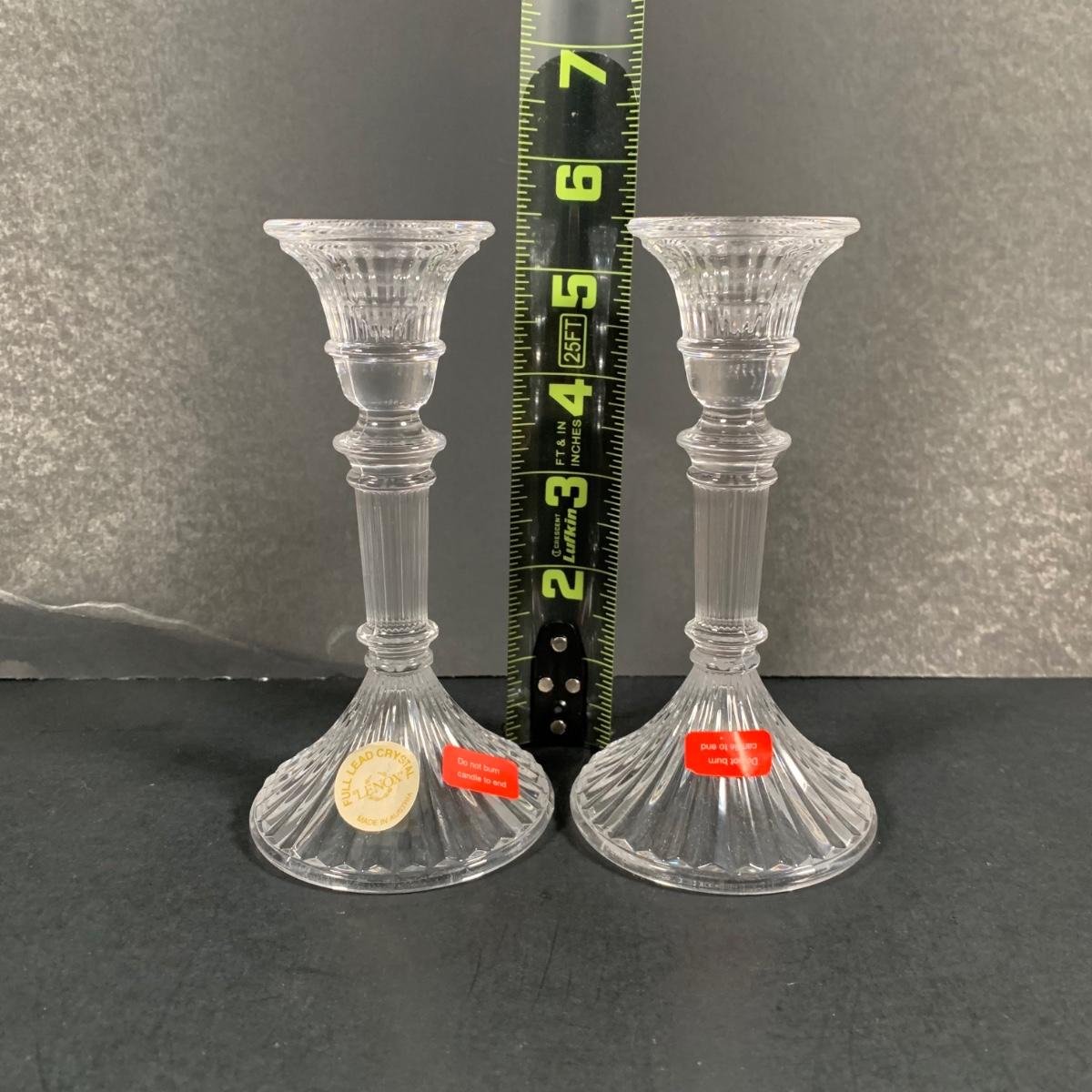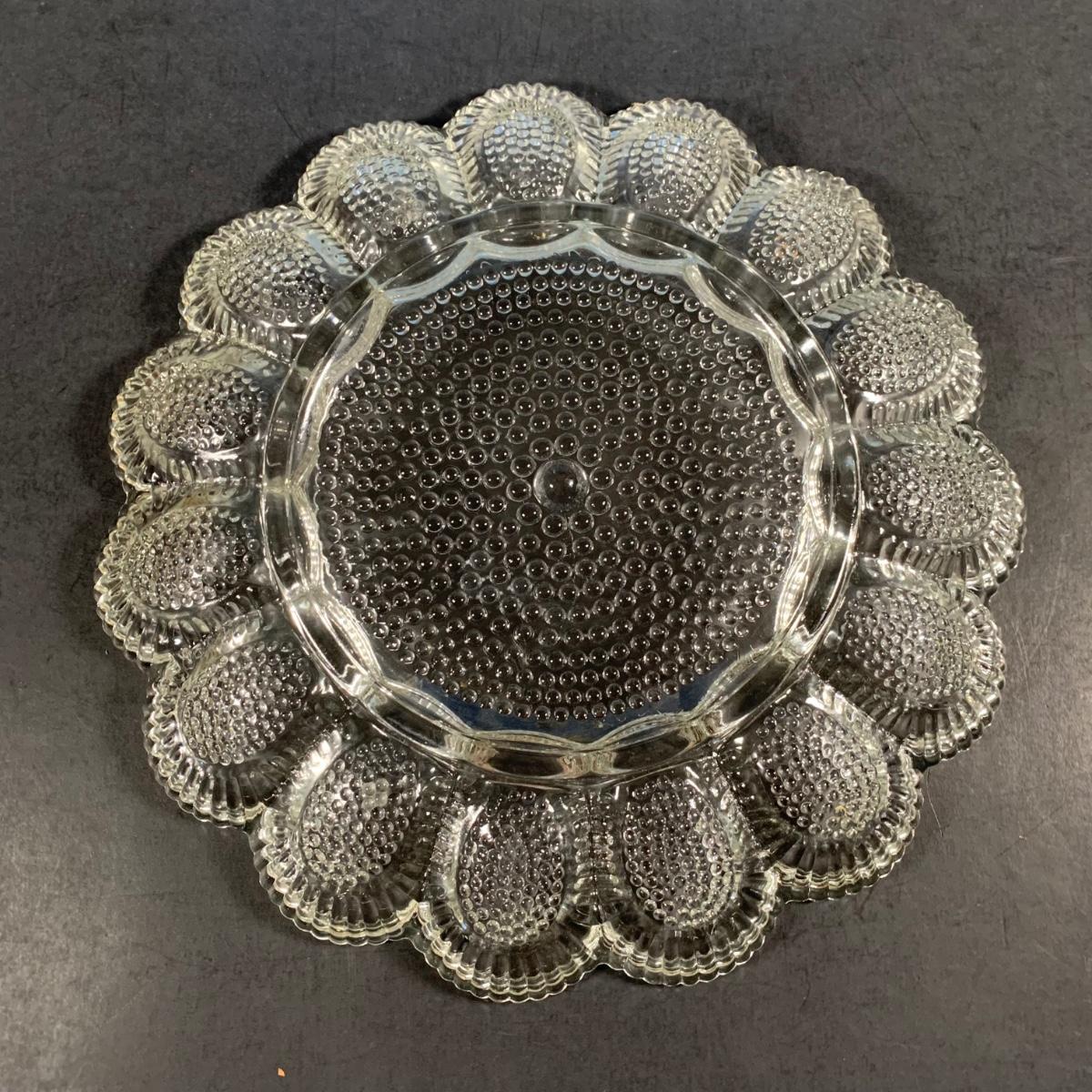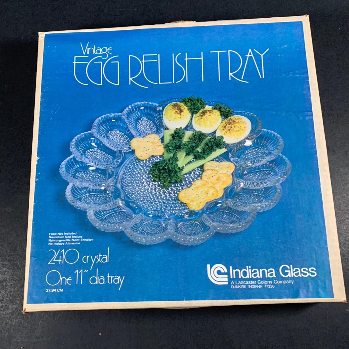 LOT 95 B: Vintage Indiana Glass Egg Relish Tray, Lenox Crystal Candlestick Holders, Hazel Atlas Avocado Green Chip & Dip Bowls, & More