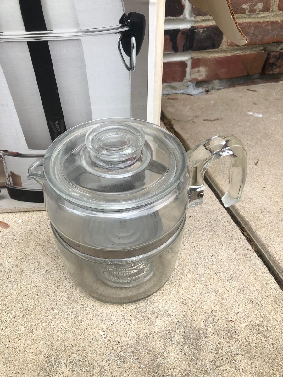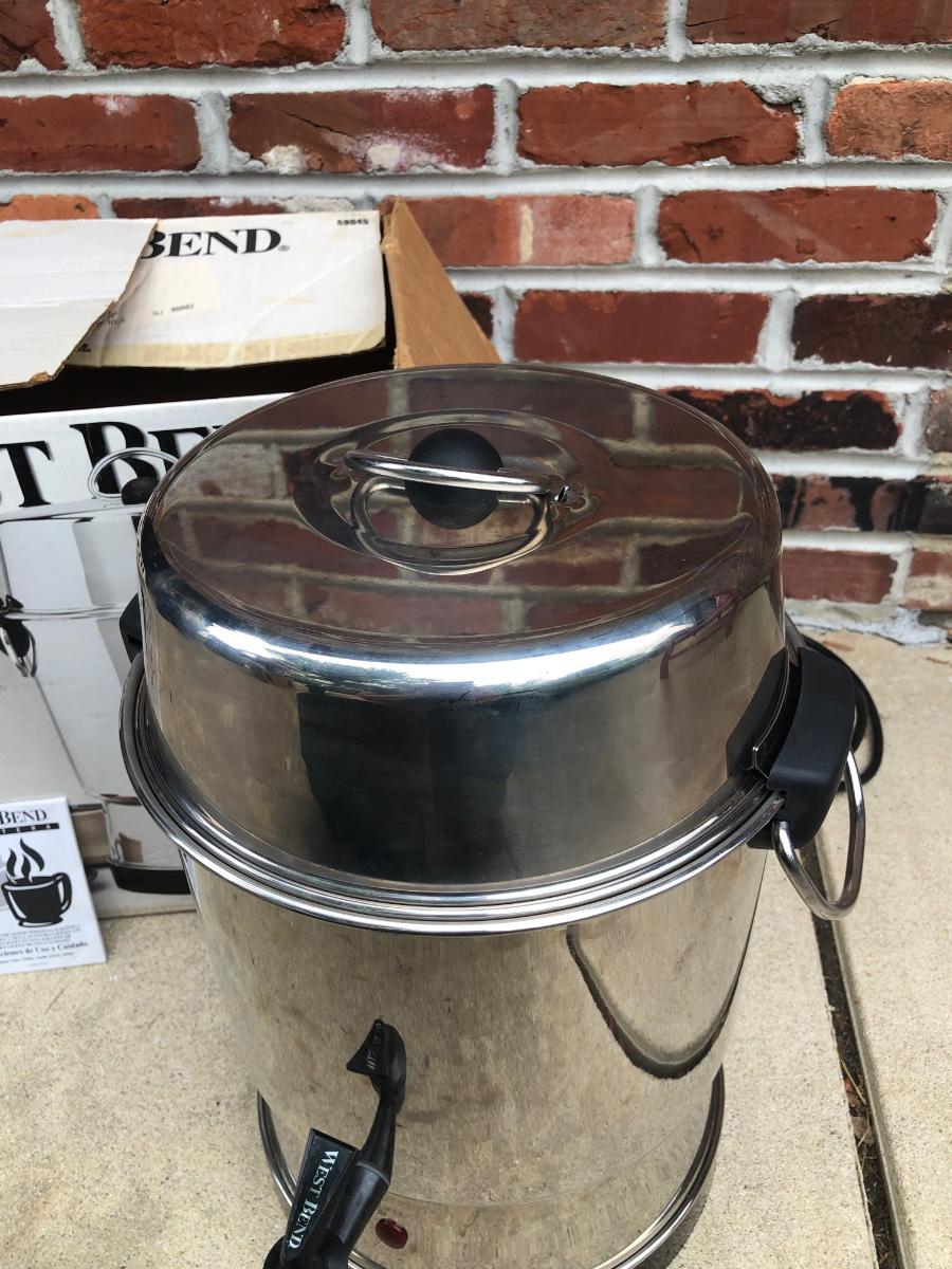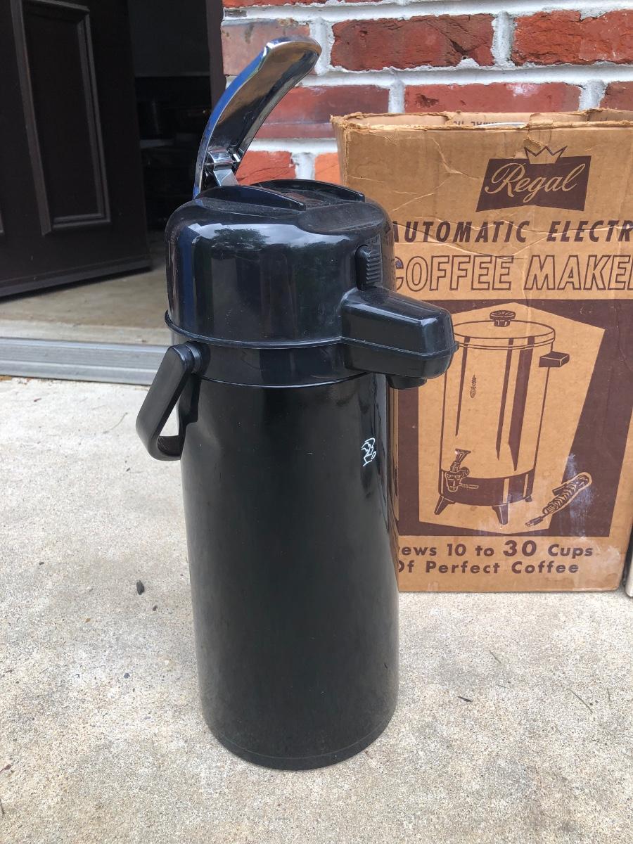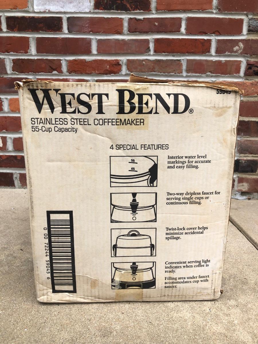 LOT 121G: Coffee Collection: West Bend 55-Cup Stainless Steel Coffee Maker, Plastic Pump Carafe & More